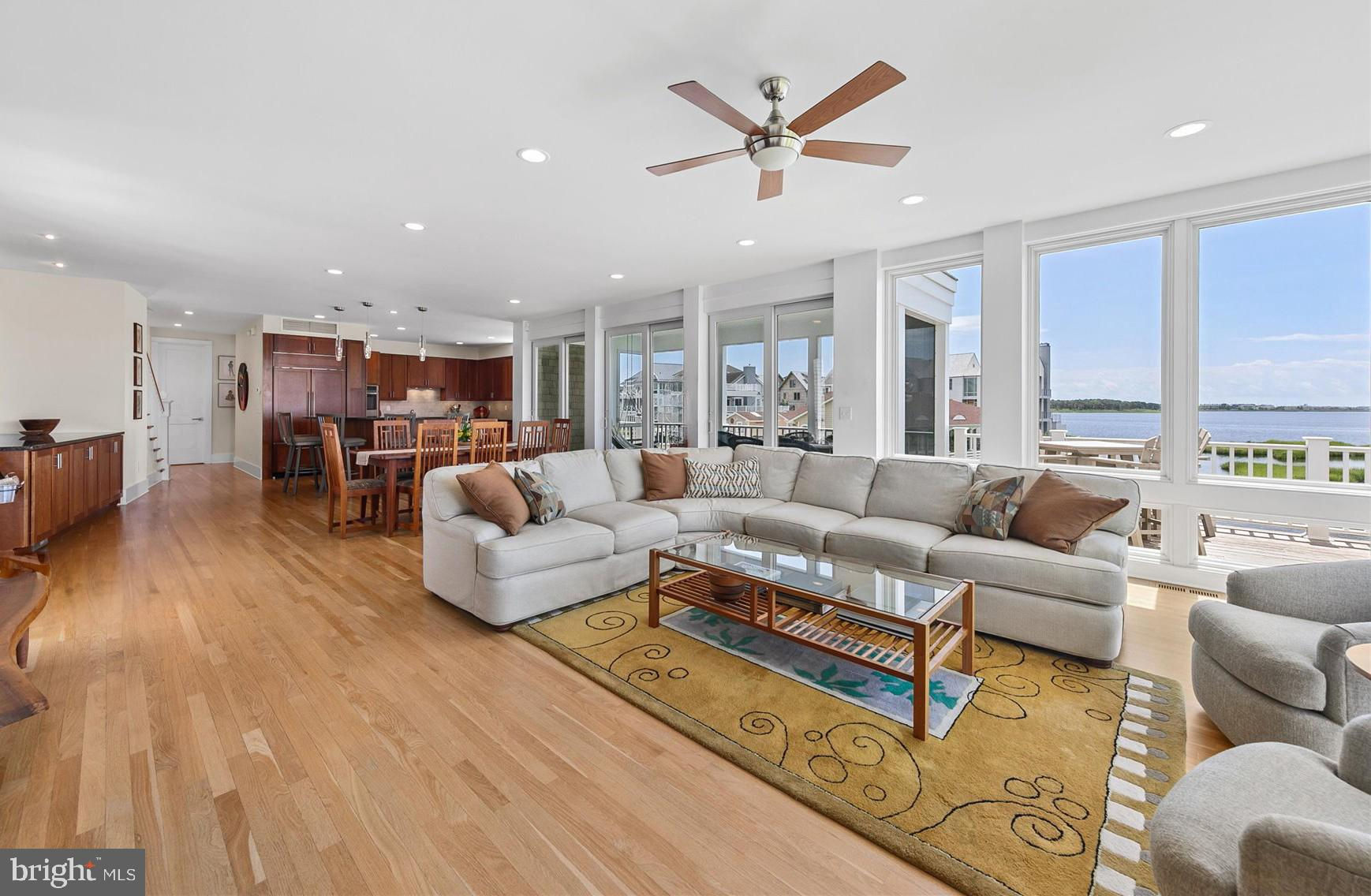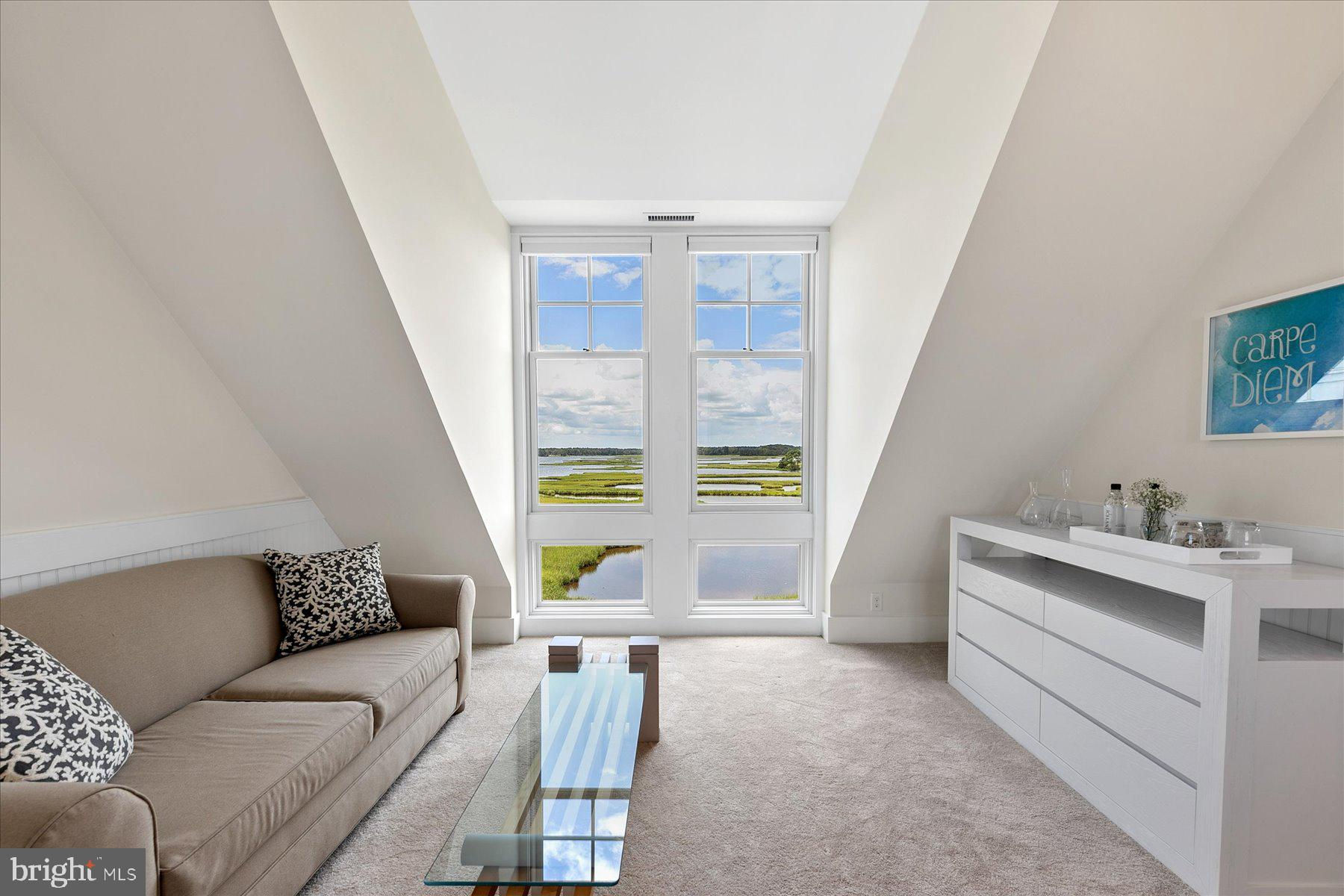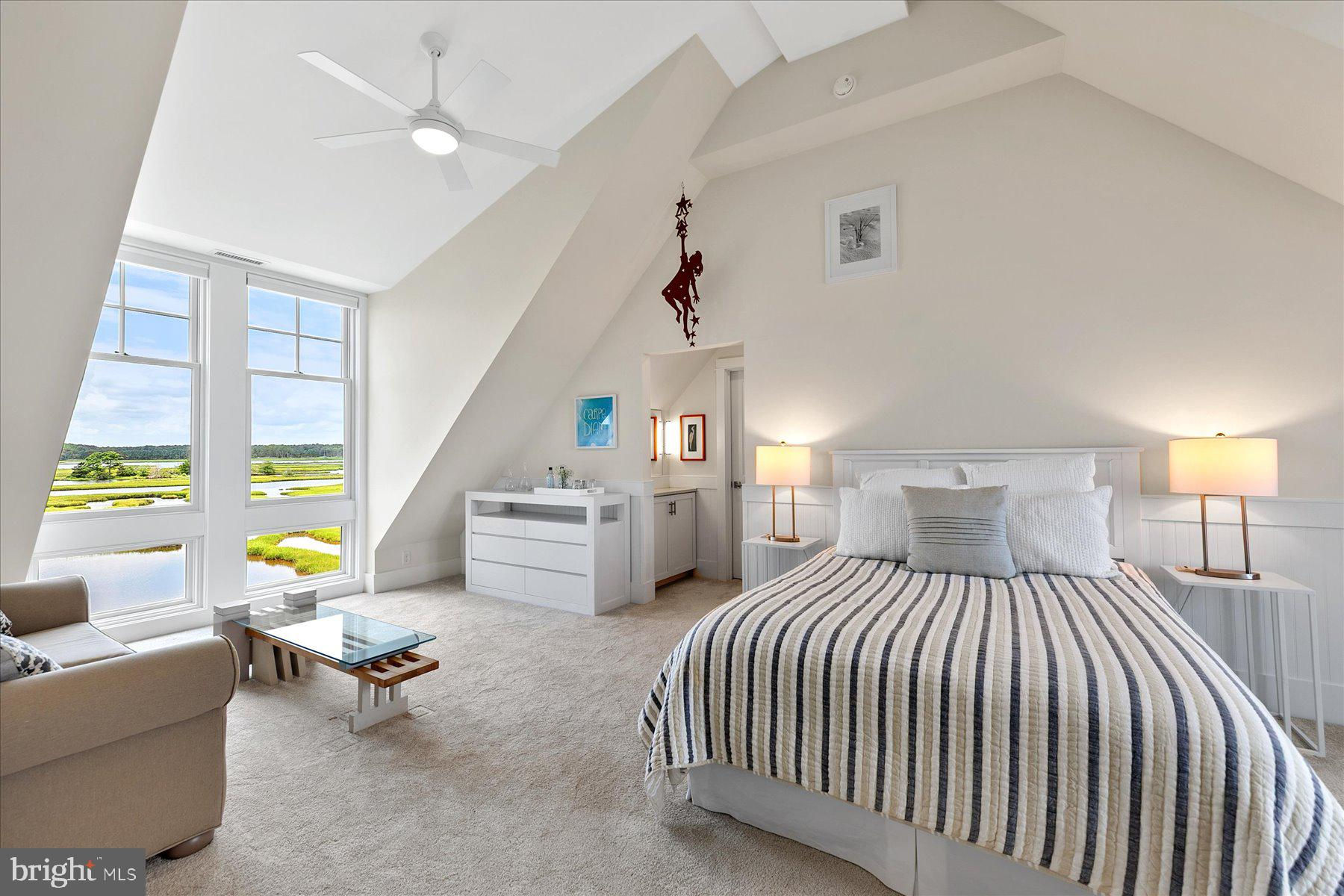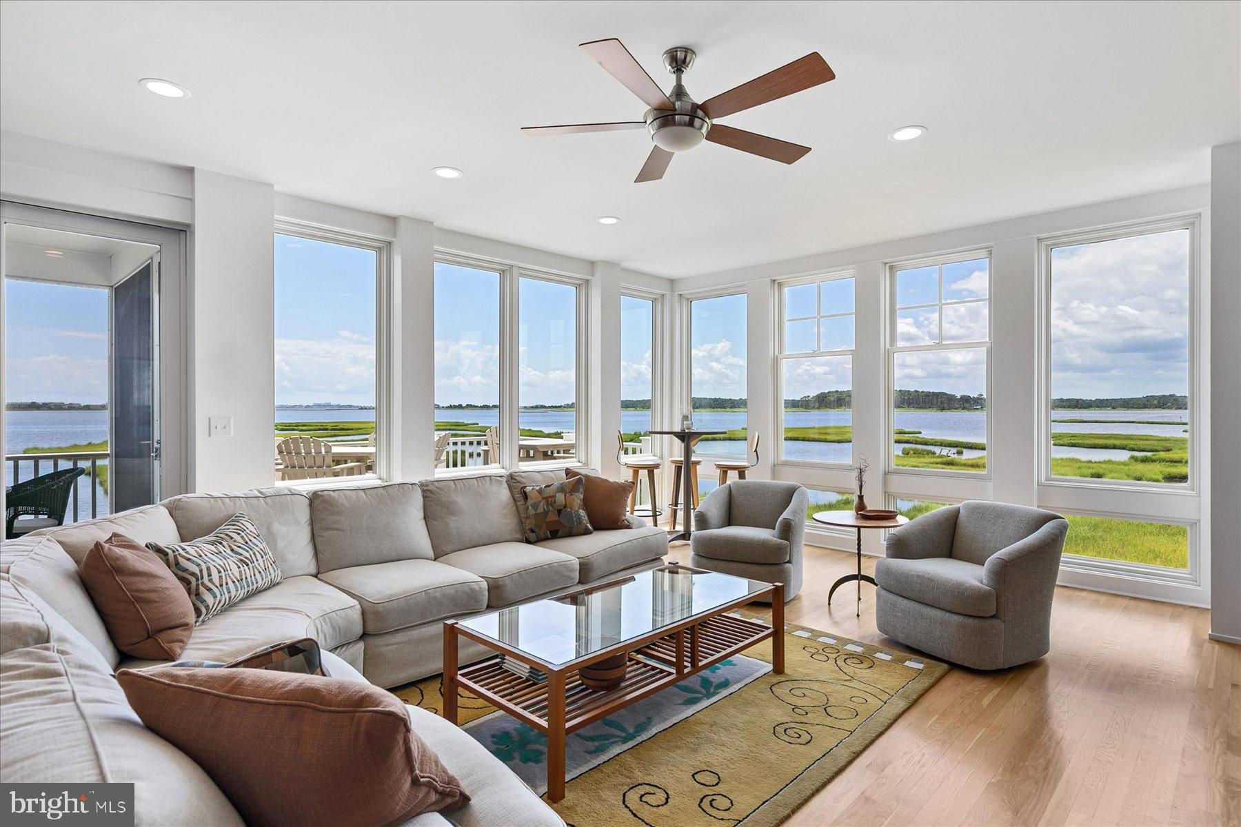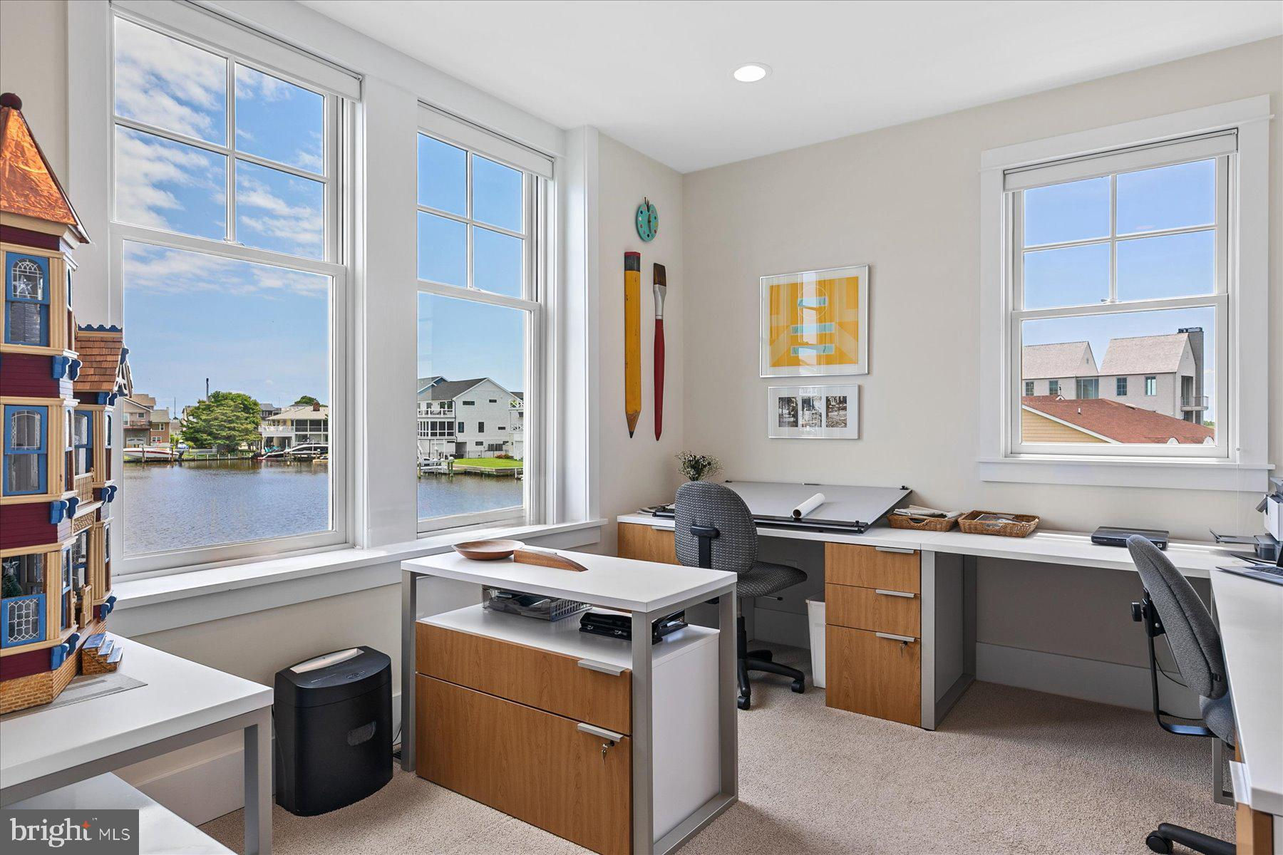 Take in unparalleled panoramic bay views from every room of this sophisticated modern beach home, ideally located on one of the most sought-after bayfront properties with water on three sides of the home. Complete with a private 50-foot dock, boat lift, and double jet ski lift, this exceptional residence was impressively designed, featuring high-end finishes and craftsmanship throughout. The expansive great room, with floor-to-ceiling windows on two sides, effortlessly frames sweeping views of the water and seamlessly blends the living, dining, and gourmet kitchen spaces. A large work island, bar with seating, and premium appliances elevate this culinary and entertaining space with easy access to a screened porch and open deck with views that are unable to be duplicated. The main level also offers a cozy family room, two guest bedrooms, and a full bathroom, along with a convenient powder room for guests. Upstairs, the bayfront primary suite is a tranquil retreat with its own private waterfront deck. Three generously-sized guest rooms each feature en-suite bathrooms, ensuring ample space and privacy for visitors. On the ground level, a spacious workshop and covered patio provide the perfect setting for crab feasts and relaxation, while the brick paver patio offers an ideal spot for evening bonfires by the water. The outdoor shower with a changing area makes clean-ups after a day on the beach or boat a breeze, and a two-car garage plus second one-car garage provide ample storage and convenience for all your vehicles, beach gear, kayaks, canoes, boating accessories, and bikes. Additional highlights include an elevator shaft for future conversion, geothermal hvac, and a location that’s impossible to duplicate—situated on a peninsula with sweeping views of the bay and wetlands, yet just moments from the beach. Homes of this caliber, in such a prime location, are a rare offering.