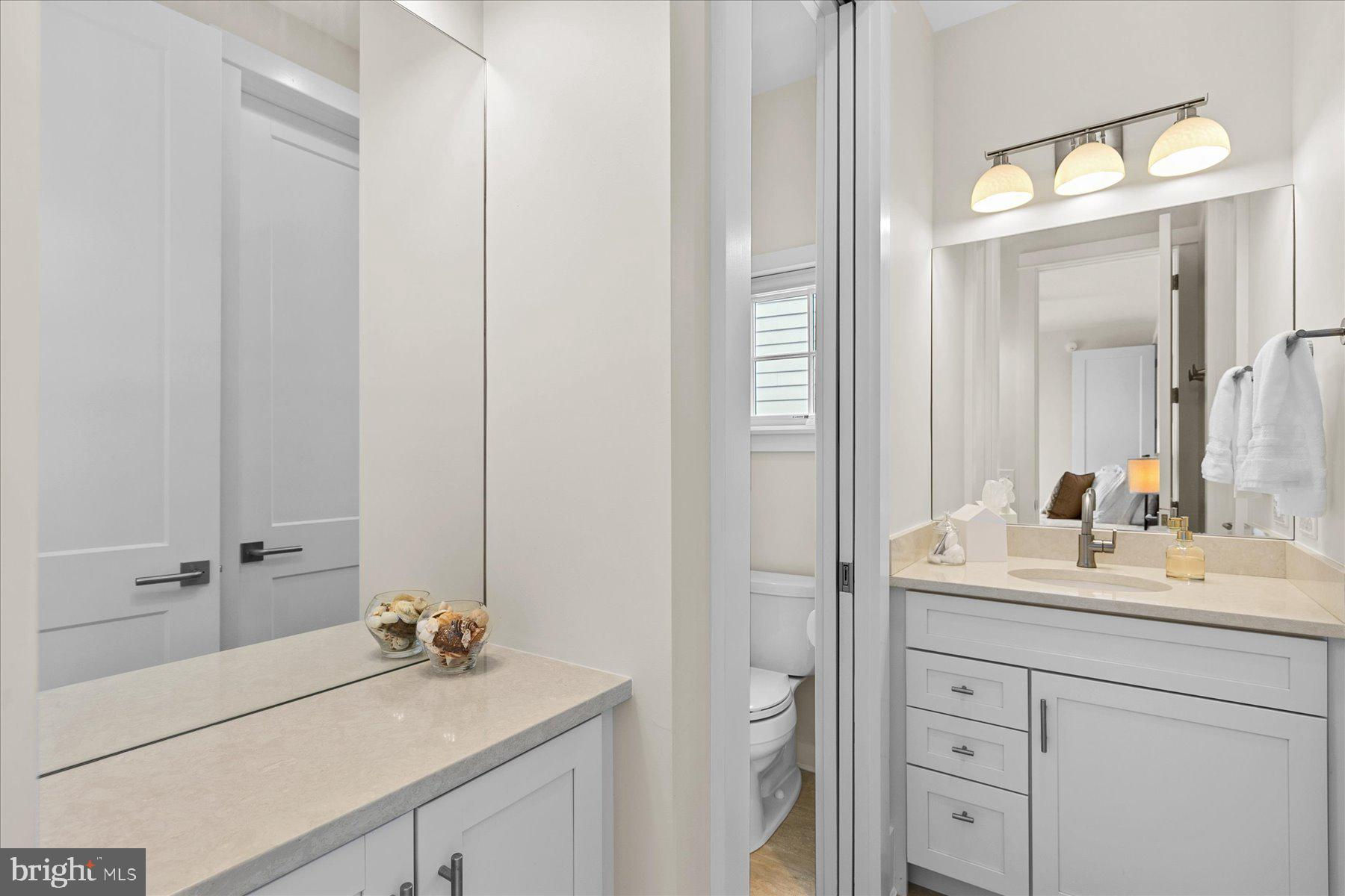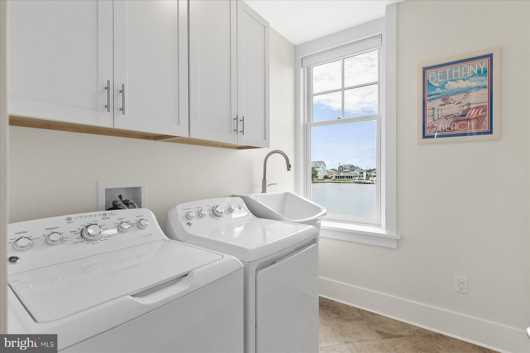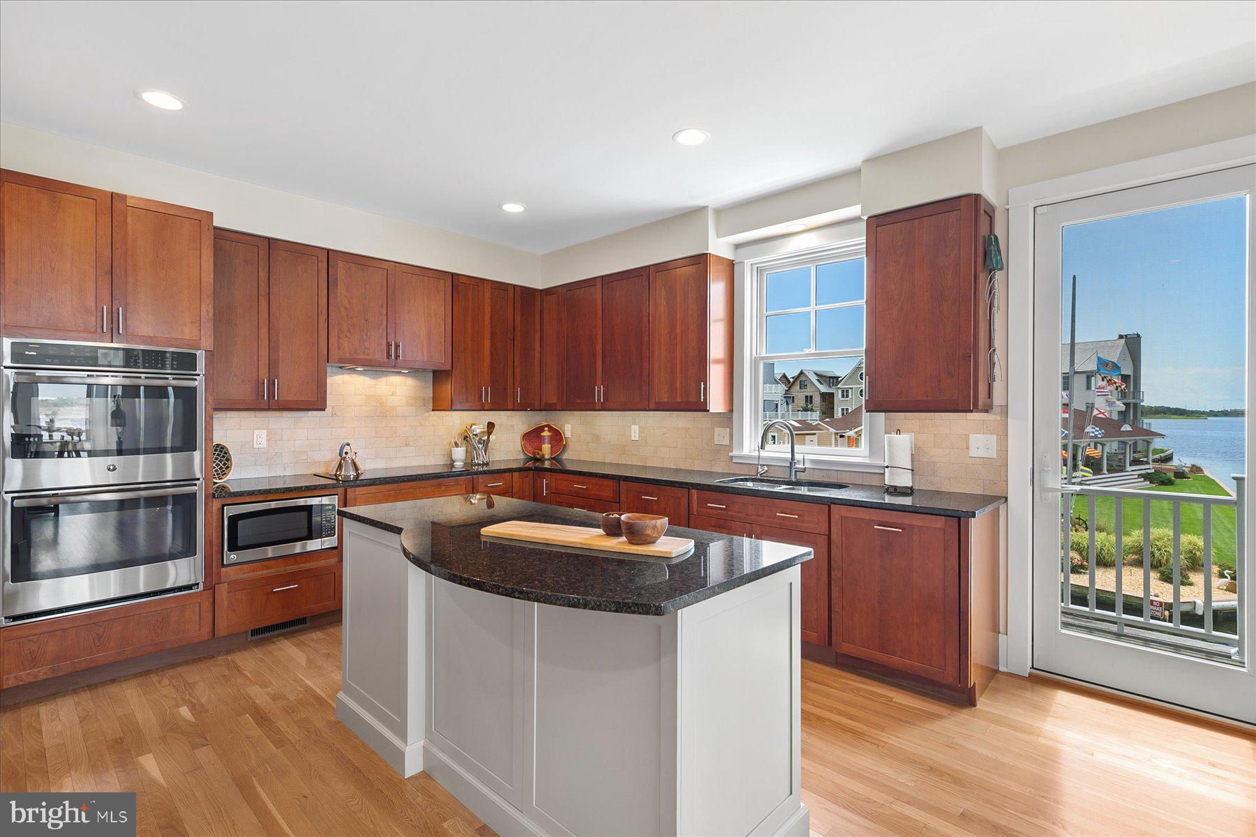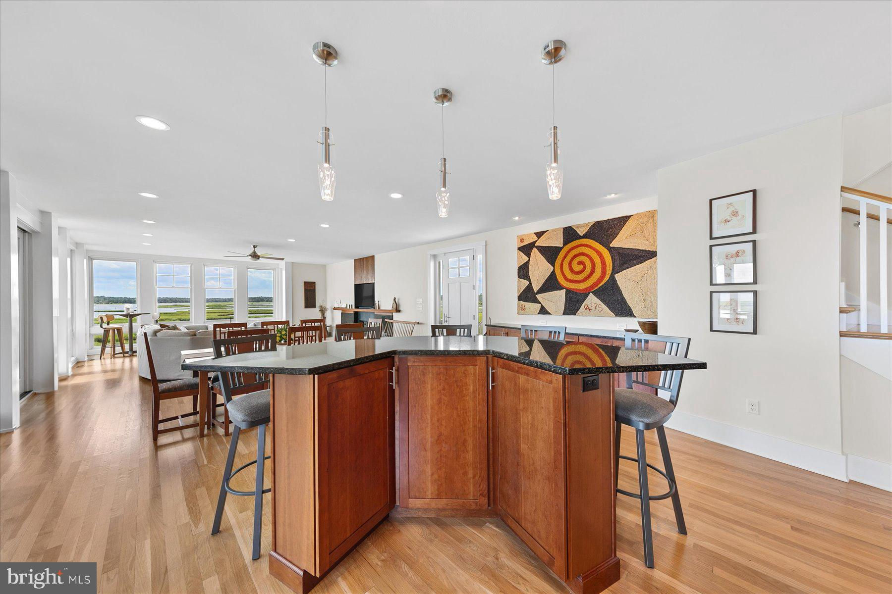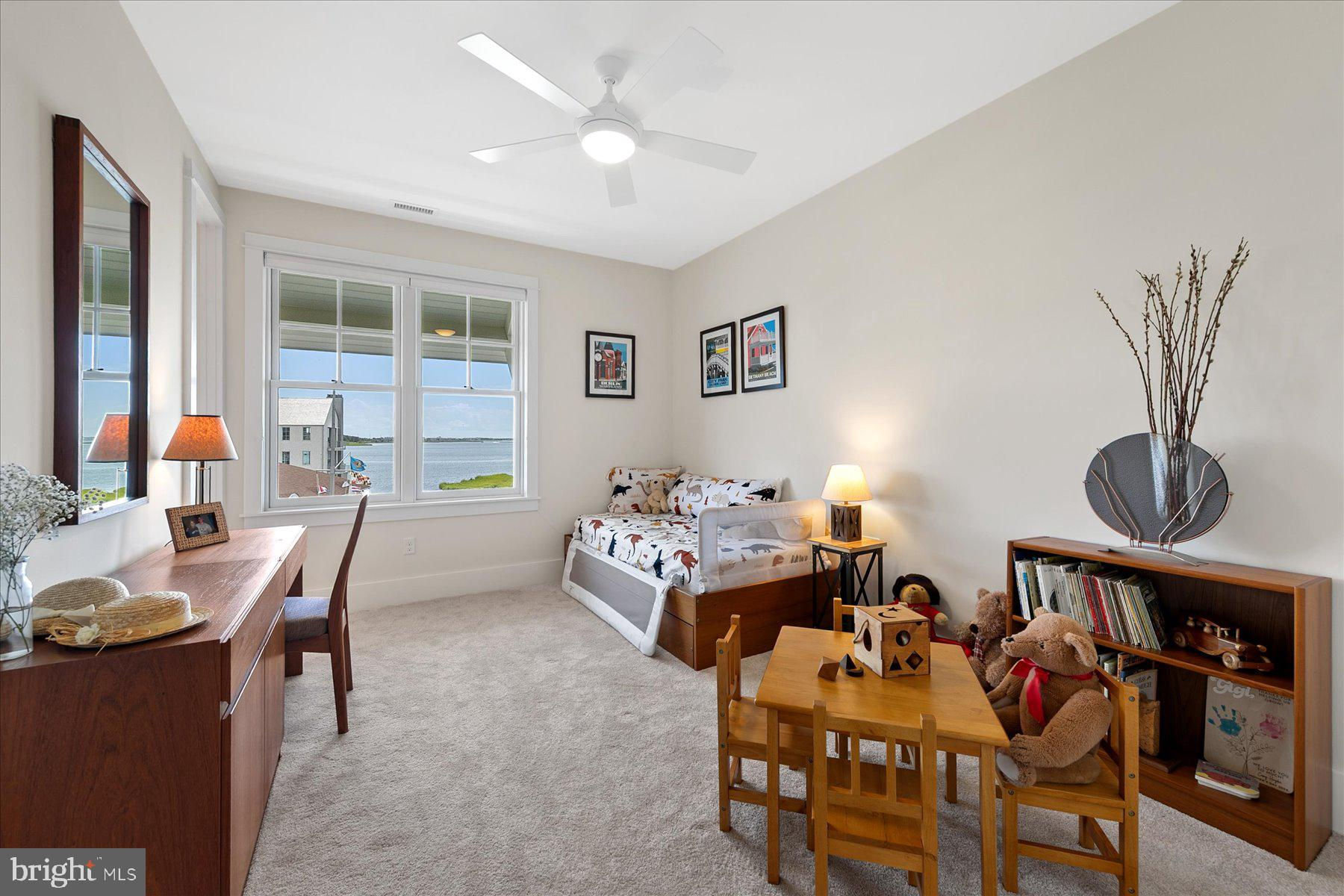 Take in unparalleled panoramic bay views from every room of this sophisticated modern beach home, ideally located on one of the most sought-after bayfront properties with water on three sides of the home. Complete with a private 50-foot dock, boat lift, and double jet ski lift, this exceptional residence was impressively designed, featuring high-end finishes and craftsmanship throughout. The expansive great room, with floor-to-ceiling windows on two sides, effortlessly frames sweeping views of the water and seamlessly blends the living, dining, and gourmet kitchen spaces. A large work island, bar with seating, and premium appliances elevate this culinary and entertaining space with easy access to a screened porch and open deck with views that are unable to be duplicated. The main level also offers a cozy family room, two guest bedrooms, and a full bathroom, along with a convenient powder room for guests. Upstairs, the bayfront primary suite is a tranquil retreat with its own private waterfront deck. Three generously-sized guest rooms each feature en-suite bathrooms, ensuring ample space and privacy for visitors. On the ground level, a spacious workshop and covered patio provide the perfect setting for crab feasts and relaxation, while the brick paver patio offers an ideal spot for evening bonfires by the water. The outdoor shower with a changing area makes clean-ups after a day on the beach or boat a breeze, and a two-car garage plus second one-car garage provide ample storage and convenience for all your vehicles, beach gear, kayaks, canoes, boating accessories, and bikes. Additional highlights include an elevator shaft for future conversion, geothermal hvac, and a location that’s impossible to duplicate—situated on a peninsula with sweeping views of the bay and wetlands, yet just moments from the beach. Homes of this caliber, in such a prime location, are a rare offering.