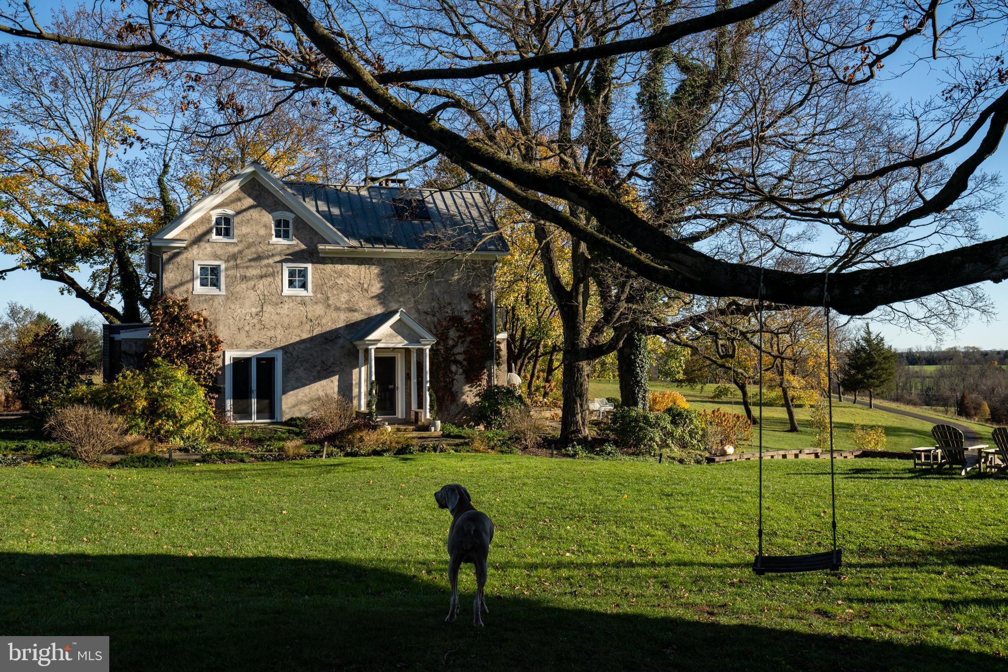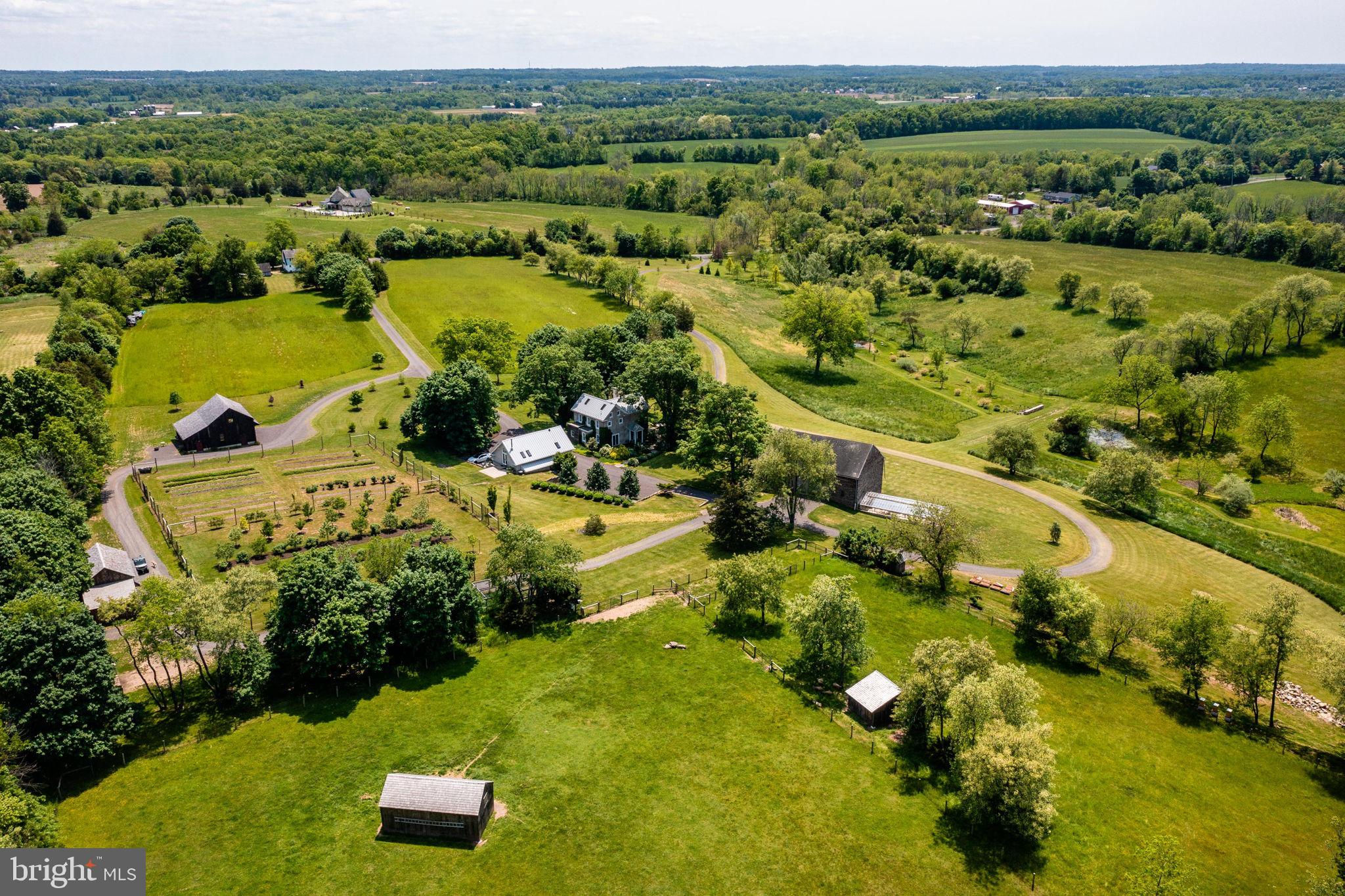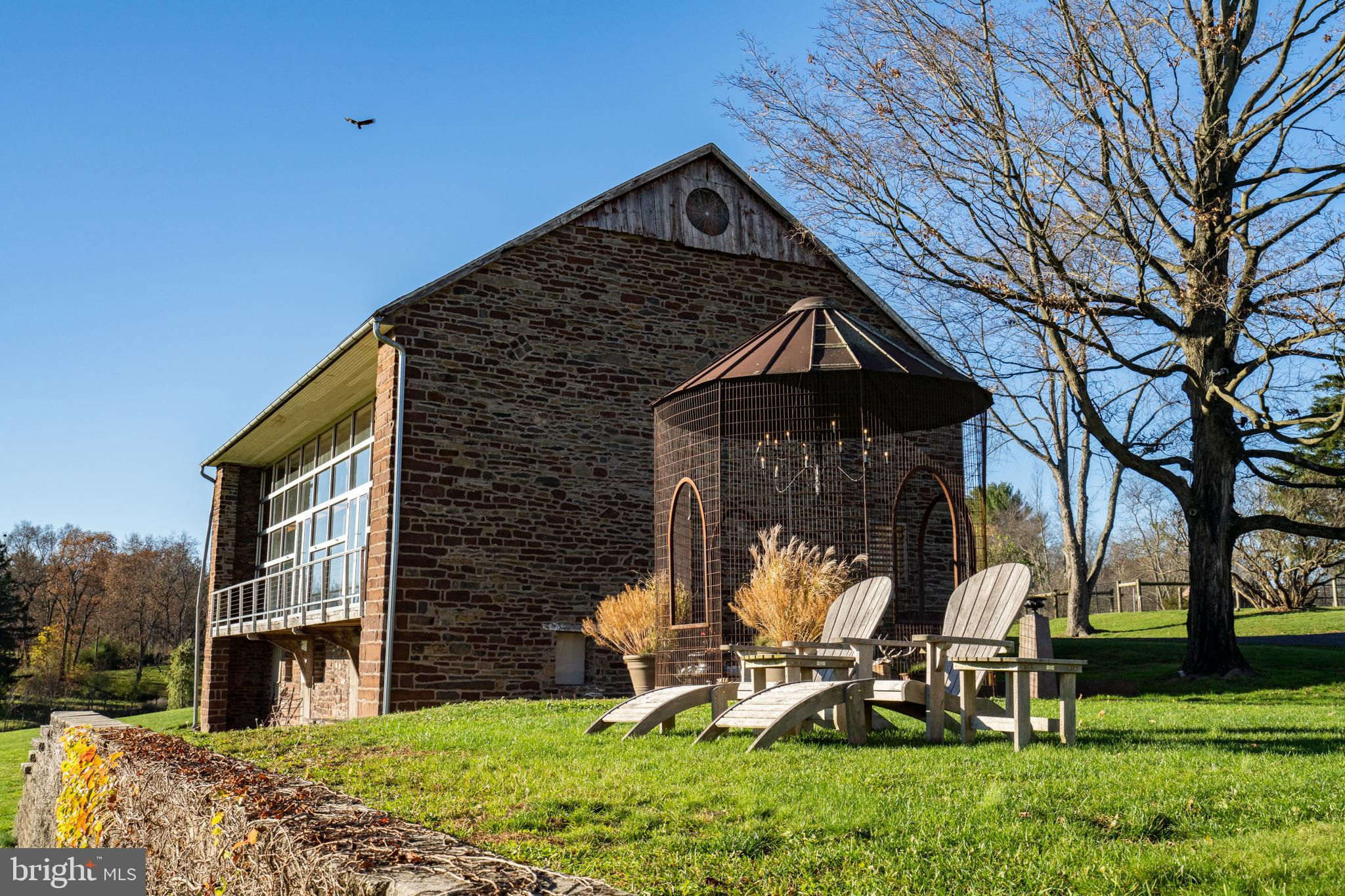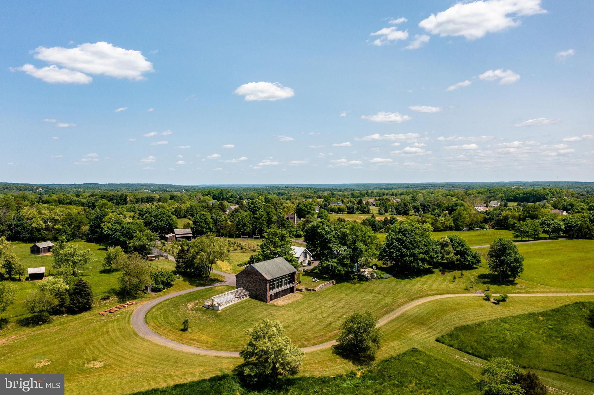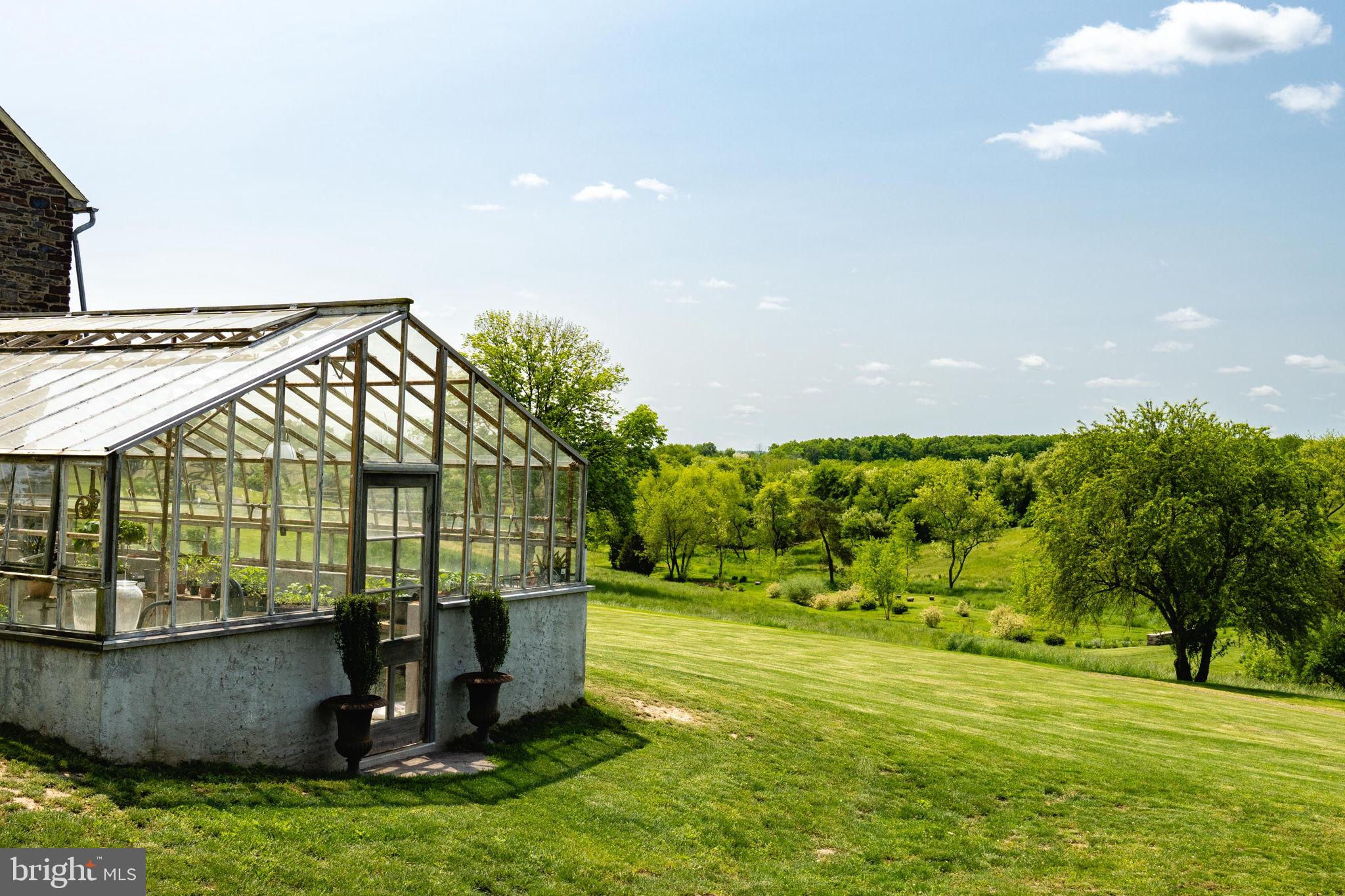 "Serenity Farm" is a curated compound designed around 40+ rolling acres of preserved Bucks County, PA farmland creating the ultimate weekend retreat or full-time home. Your journey begins as you drive through the beautiful winding lane to arrive at the restored 19th Century farmhouse overlooking two repurposed barns, an orchard and a vegetable garden perfect for entertaining family and guests. This awe-inspiring private estate is the realized vision of luxury and comfort in a pastoral setting creating a magical paradise to be restored and rejuvenated with stone patios, communal niches, fire-pits, and meditation stones all focusing toward the beautiful views of the country landscape. The restored farmhouse exudes a contemporary style with newly plastered walls, plank flooring and period moldings bringing the perfect blend of history and modern design. The main living area has an open concept living and dining room with a cozy fireplace, large windows with country landscape views and inviting door to the outdoor patio. The dining area is set up for intimate gatherings around the designer table and chairs illuminated by a Lindsey Adelman chandelier. The patio is accessed through the kitchen and features a covered pergola and fireplace perfect for dining al fresco. The custom kitchen with center island with a French La Cornue gas stove/oven and breakfast bar appeals to the inclusive chef. The oversized sink is framed by large windows for viewing the changing seasons. A working pantry, display niches, bookshelves, bench seating, waterworks lighting and fixtures complete the designer kitchen. A half bath is also located on this entertaining floor. The bedrooms on the 2nd level both enjoy a private balcony and the bathrooms offer top quality fixtures. The primary bedroom overlooking the meditation garden is the larger of the two with custom paneled closets, wall of windows and a walk-in shower. The 3rd level brings a flexible floor plan and loft style study perfect for a home office, meditation room or guest area. The lower level of the house offers a walk out to the garden area and is the perfect place for canning, storage and a home gym as well as housing the utilities. The organic vegetable garden and fruit trees are located just off of the main house to provide farm to table cuisine at the end of each day. Beyond the vegetable garden you will find a chicken coop for those fresh eggs, a field of flower orchards, a greenhouse built from reclaimed treated cedar and sheep grazing on the hillside. The accomplished owner has repurposed each of the vintage agricultural barns. These barns were individually and specifically created to deliver a special experience. Exposed beams, wide board floors and oak paneling offer the authentic aura of the original barns while tying together the themes of entertainment, artist's studio, media room, office space and yoga studio. The largest barn featuring soaring ceilings, glass wall is an extraordinary space ideal for cocktail parties and social gatherings. The placement of these unique dwellings creates an amazing courtyard in which to enjoy endless opportunities to entertain. The 3 car garage is heated and has an upper studio/loft with a bath. The Property has 400 AMP electric service and enjoys the tax benefits of ACT 319 status. Porsche tractor, all farm equipment, livestock and furnishings are negotiable with purchase. The estate is privately situated and surrounded by other large estates and protected land. It is in close proximity to local farm stands, wineries, golf courses and equestrian facilities.The property is located in an area of the county famously known for its scenic beauty, its outdoor sporting events, its culinary heritage and farm to table restaurants, offering an unparalleled country retreat in the heart of the Bucks County, PA. The property is a rare and exceptional offering with easy access to NYC, NJ and Philly.