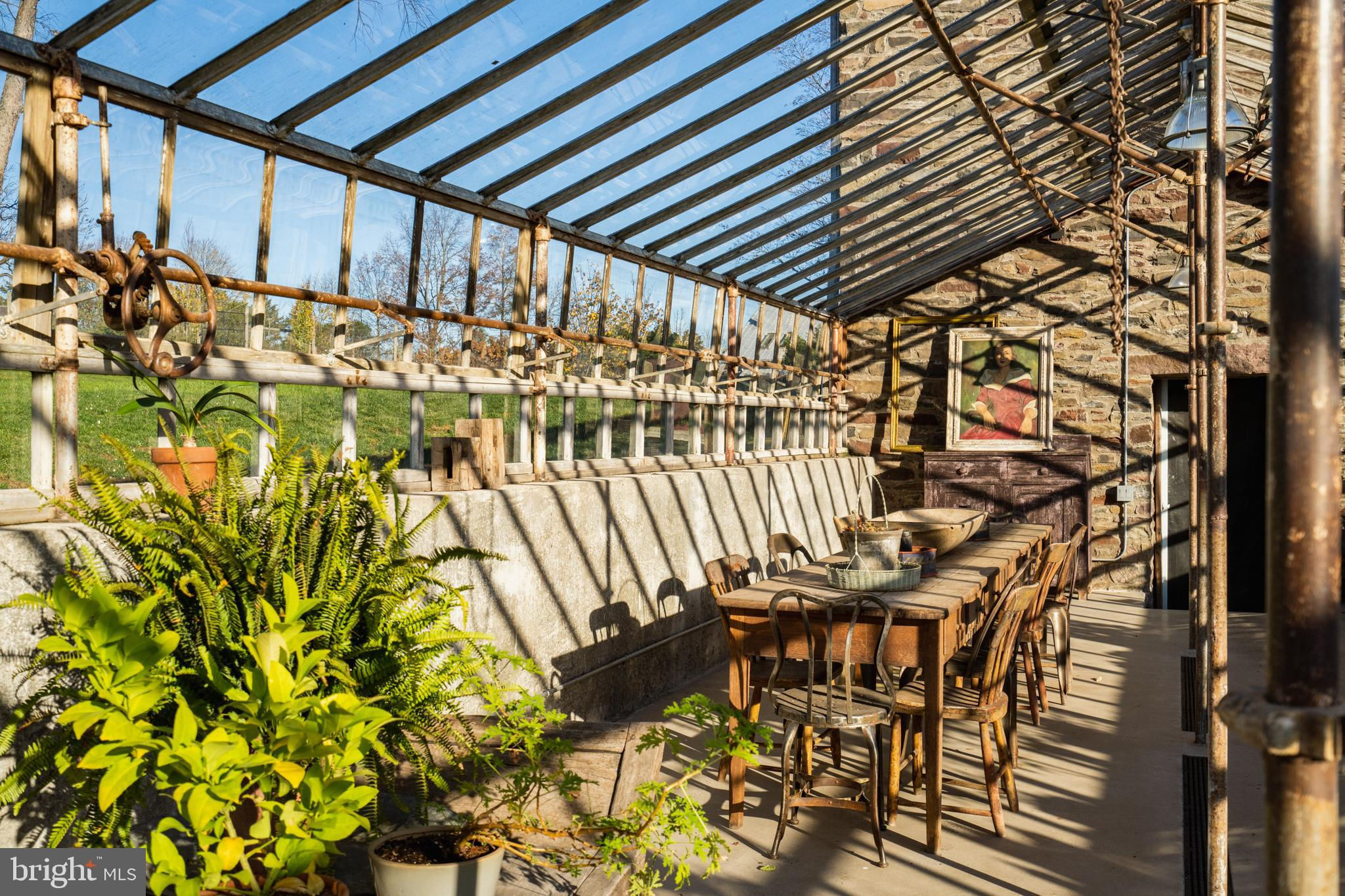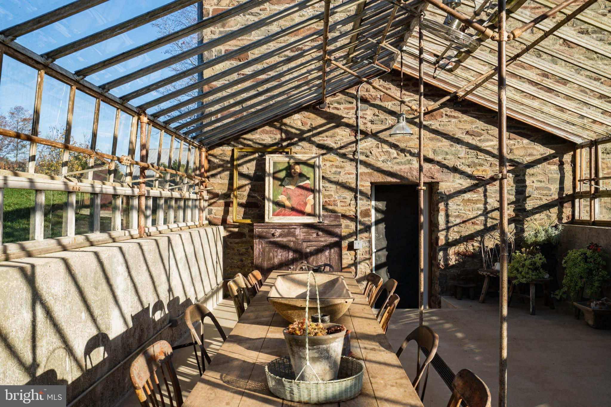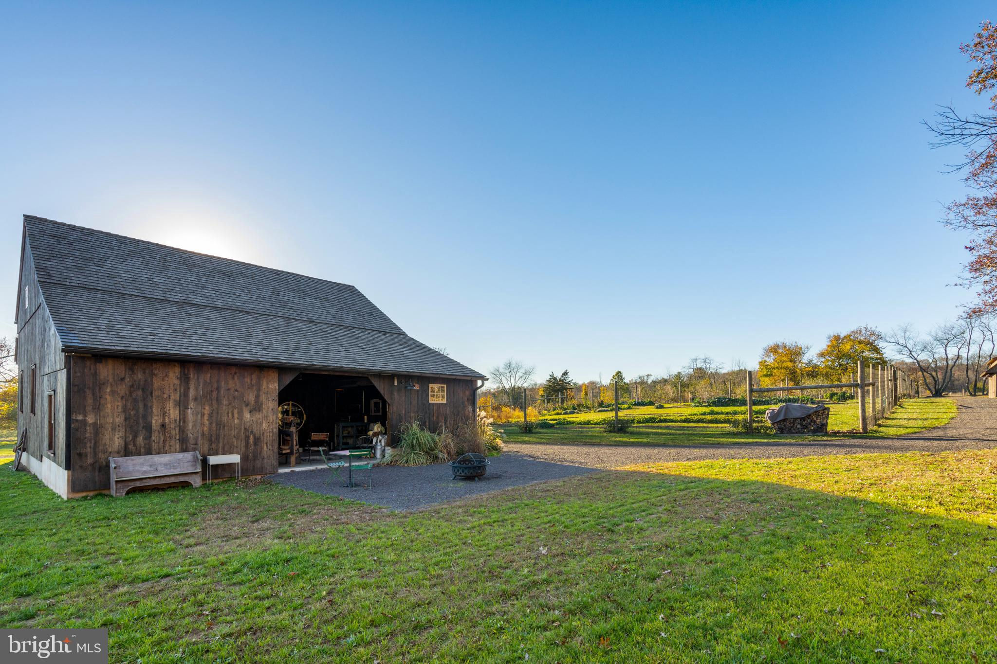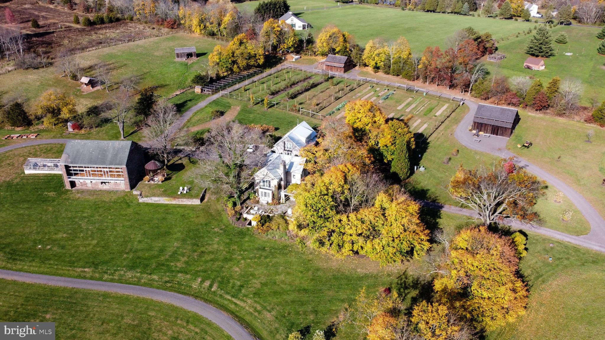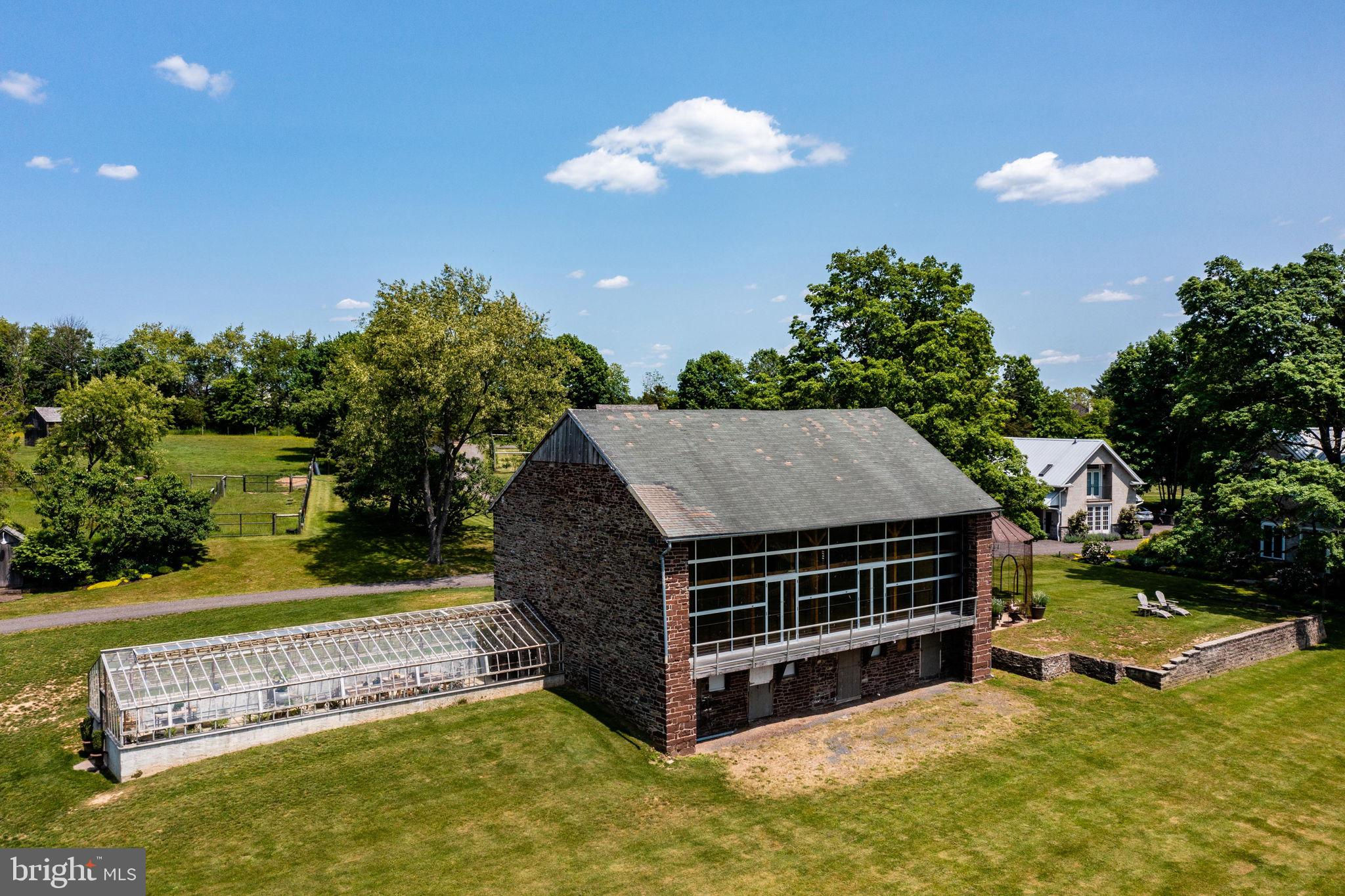 "Serenity Farm" is a curated compound designed around 40+ rolling acres of preserved Bucks County, PA farmland creating the ultimate weekend retreat or full-time home. Your journey begins as you drive through the beautiful winding lane to arrive at the restored 19th Century farmhouse overlooking two repurposed barns, an orchard and a vegetable garden perfect for entertaining family and guests. This awe-inspiring private estate is the realized vision of luxury and comfort in a pastoral setting creating a magical paradise to be restored and rejuvenated with stone patios, communal niches, fire-pits, and meditation stones all focusing toward the beautiful views of the country landscape. The restored farmhouse exudes a contemporary style with newly plastered walls, plank flooring and period moldings bringing the perfect blend of history and modern design. The main living area has an open concept living and dining room with a cozy fireplace, large windows with country landscape views and inviting door to the outdoor patio. The dining area is set up for intimate gatherings around the designer table and chairs illuminated by a Lindsey Adelman chandelier. The patio is accessed through the kitchen and features a covered pergola and fireplace perfect for dining al fresco. The custom kitchen with center island with a French La Cornue gas stove/oven and breakfast bar appeals to the inclusive chef. The oversized sink is framed by large windows for viewing the changing seasons. A working pantry, display niches, bookshelves, bench seating, waterworks lighting and fixtures complete the designer kitchen. A half bath is also located on this entertaining floor. The bedrooms on the 2nd level both enjoy a private balcony and the bathrooms offer top quality fixtures. The primary bedroom overlooking the meditation garden is the larger of the two with custom paneled closets, wall of windows and a walk-in shower. The 3rd level brings a flexible floor plan and loft style study perfect for a home office, meditation room or guest area. The lower level of the house offers a walk out to the garden area and is the perfect place for canning, storage and a home gym as well as housing the utilities. The organic vegetable garden and fruit trees are located just off of the main house to provide farm to table cuisine at the end of each day. Beyond the vegetable garden you will find a chicken coop for those fresh eggs, a field of flower orchards, a greenhouse built from reclaimed treated cedar and sheep grazing on the hillside. The accomplished owner has repurposed each of the vintage agricultural barns. These barns were individually and specifically created to deliver a special experience. Exposed beams, wide board floors and oak paneling offer the authentic aura of the original barns while tying together the themes of entertainment, artist's studio, media room, office space and yoga studio. The largest barn featuring soaring ceilings, glass wall is an extraordinary space ideal for cocktail parties and social gatherings. The placement of these unique dwellings creates an amazing courtyard in which to enjoy endless opportunities to entertain. The 3 car garage is heated and has an upper studio/loft with a bath. The Property has 400 AMP electric service and enjoys the tax benefits of ACT 319 status. Porsche tractor, all farm equipment, livestock and furnishings are negotiable with purchase. The estate is privately situated and surrounded by other large estates and protected land. It is in close proximity to local farm stands, wineries, golf courses and equestrian facilities.The property is located in an area of the county famously known for its scenic beauty, its outdoor sporting events, its culinary heritage and farm to table restaurants, offering an unparalleled country retreat in the heart of the Bucks County, PA. The property is a rare and exceptional offering with easy access to NYC, NJ and Philly.