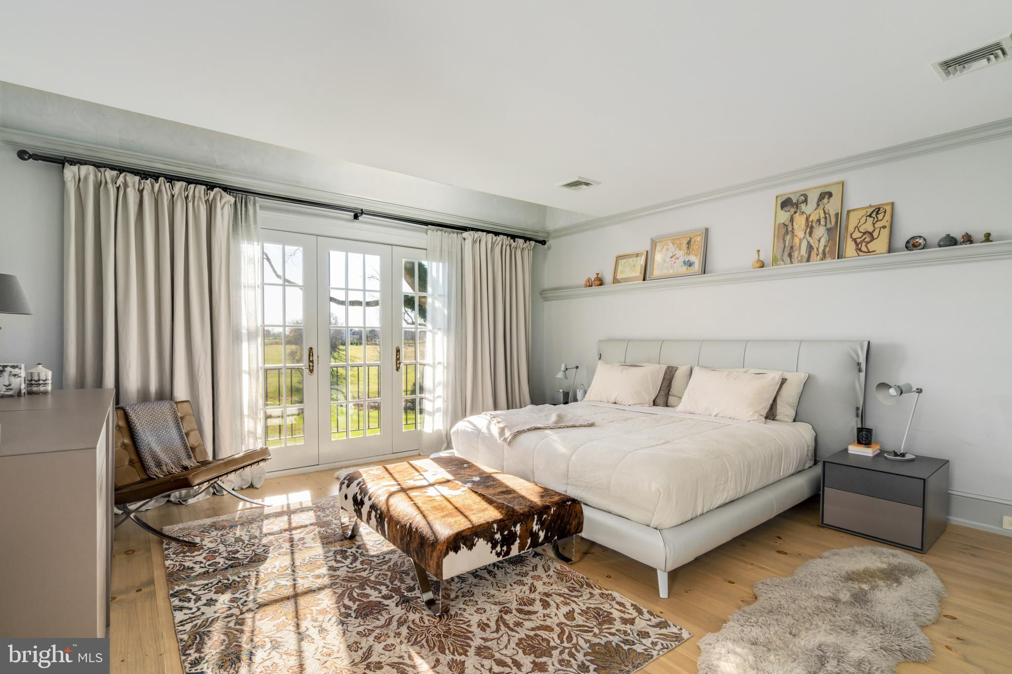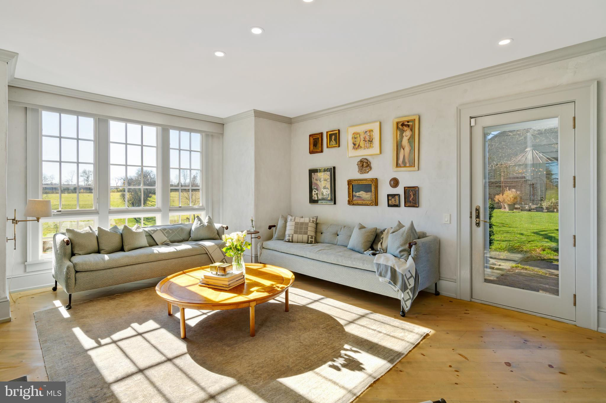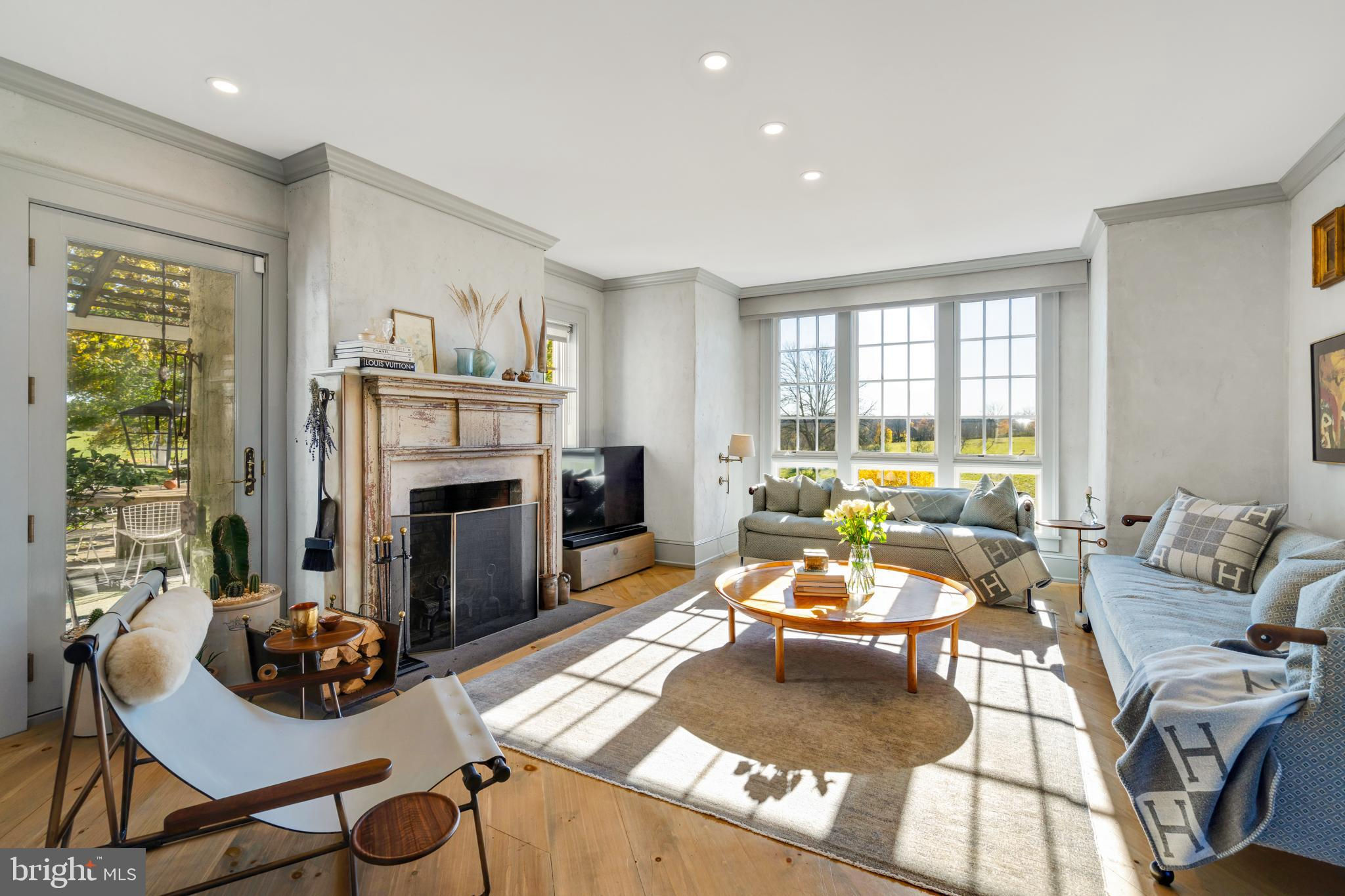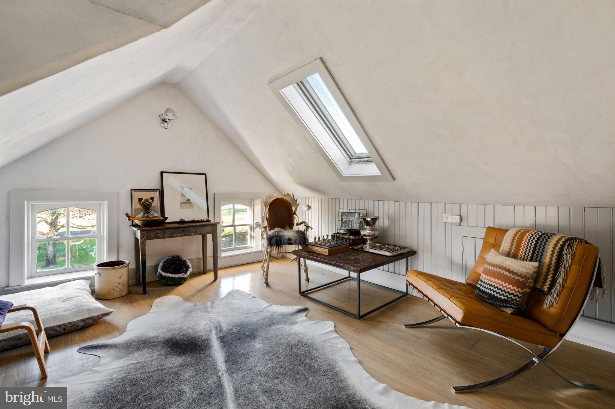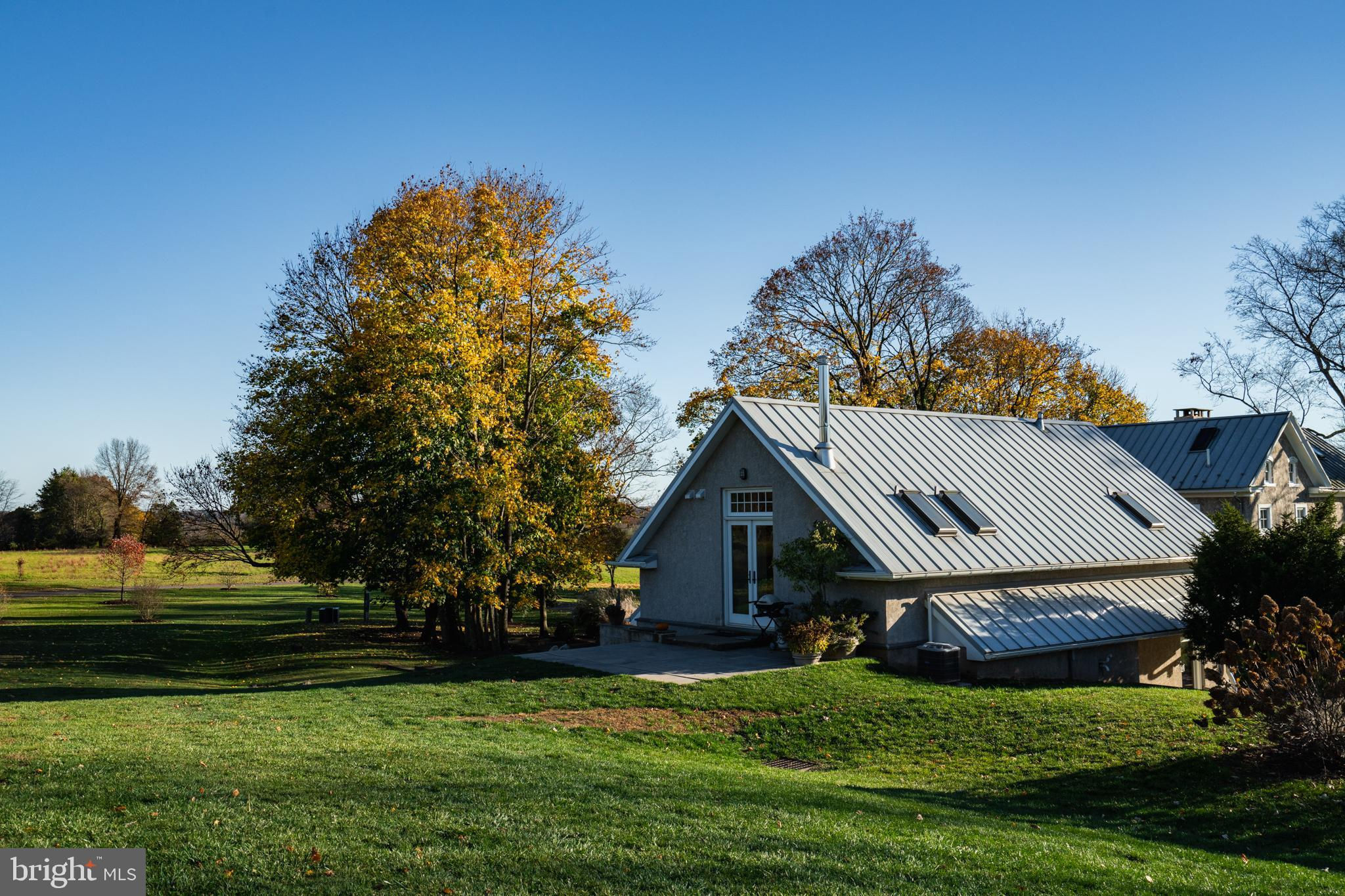 "Serenity Farm" is a curated compound designed around 40+ rolling acres of preserved Bucks County, PA farmland creating the ultimate weekend retreat or full-time home. Your journey begins as you drive through the beautiful winding lane to arrive at the restored 19th Century farmhouse overlooking two repurposed barns, an orchard and a vegetable garden perfect for entertaining family and guests. This awe-inspiring private estate is the realized vision of luxury and comfort in a pastoral setting creating a magical paradise to be restored and rejuvenated with stone patios, communal niches, fire-pits, and meditation stones all focusing toward the beautiful views of the country landscape. The restored farmhouse exudes a contemporary style with newly plastered walls, plank flooring and period moldings bringing the perfect blend of history and modern design. The main living area has an open concept living and dining room with a cozy fireplace, large windows with country landscape views and inviting door to the outdoor patio. The dining area is set up for intimate gatherings around the designer table and chairs illuminated by a Lindsey Adelman chandelier. The patio is accessed through the kitchen and features a covered pergola and fireplace perfect for dining al fresco. The custom kitchen with center island with a French La Cornue gas stove/oven and breakfast bar appeals to the inclusive chef. The oversized sink is framed by large windows for viewing the changing seasons. A working pantry, display niches, bookshelves, bench seating, waterworks lighting and fixtures complete the designer kitchen. A half bath is also located on this entertaining floor. The bedrooms on the 2nd level both enjoy a private balcony and the bathrooms offer top quality fixtures. The primary bedroom overlooking the meditation garden is the larger of the two with custom paneled closets, wall of windows and a walk-in shower. The 3rd level brings a flexible floor plan and loft style study perfect for a home office, meditation room or guest area. The lower level of the house offers a walk out to the garden area and is the perfect place for canning, storage and a home gym as well as housing the utilities. The organic vegetable garden and fruit trees are located just off of the main house to provide farm to table cuisine at the end of each day. Beyond the vegetable garden you will find a chicken coop for those fresh eggs, a field of flower orchards, a greenhouse built from reclaimed treated cedar and sheep grazing on the hillside. The accomplished owner has repurposed each of the vintage agricultural barns. These barns were individually and specifically created to deliver a special experience. Exposed beams, wide board floors and oak paneling offer the authentic aura of the original barns while tying together the themes of entertainment, artist's studio, media room, office space and yoga studio. The largest barn featuring soaring ceilings, glass wall is an extraordinary space ideal for cocktail parties and social gatherings. The placement of these unique dwellings creates an amazing courtyard in which to enjoy endless opportunities to entertain. The 3 car garage is heated and has an upper studio/loft with a bath. The Property has 400 AMP electric service and enjoys the tax benefits of ACT 319 status. Porsche tractor, all farm equipment, livestock and furnishings are negotiable with purchase. The estate is privately situated and surrounded by other large estates and protected land. It is in close proximity to local farm stands, wineries, golf courses and equestrian facilities.The property is located in an area of the county famously known for its scenic beauty, its outdoor sporting events, its culinary heritage and farm to table restaurants, offering an unparalleled country retreat in the heart of the Bucks County, PA. The property is a rare and exceptional offering with easy access to NYC, NJ and Philly.