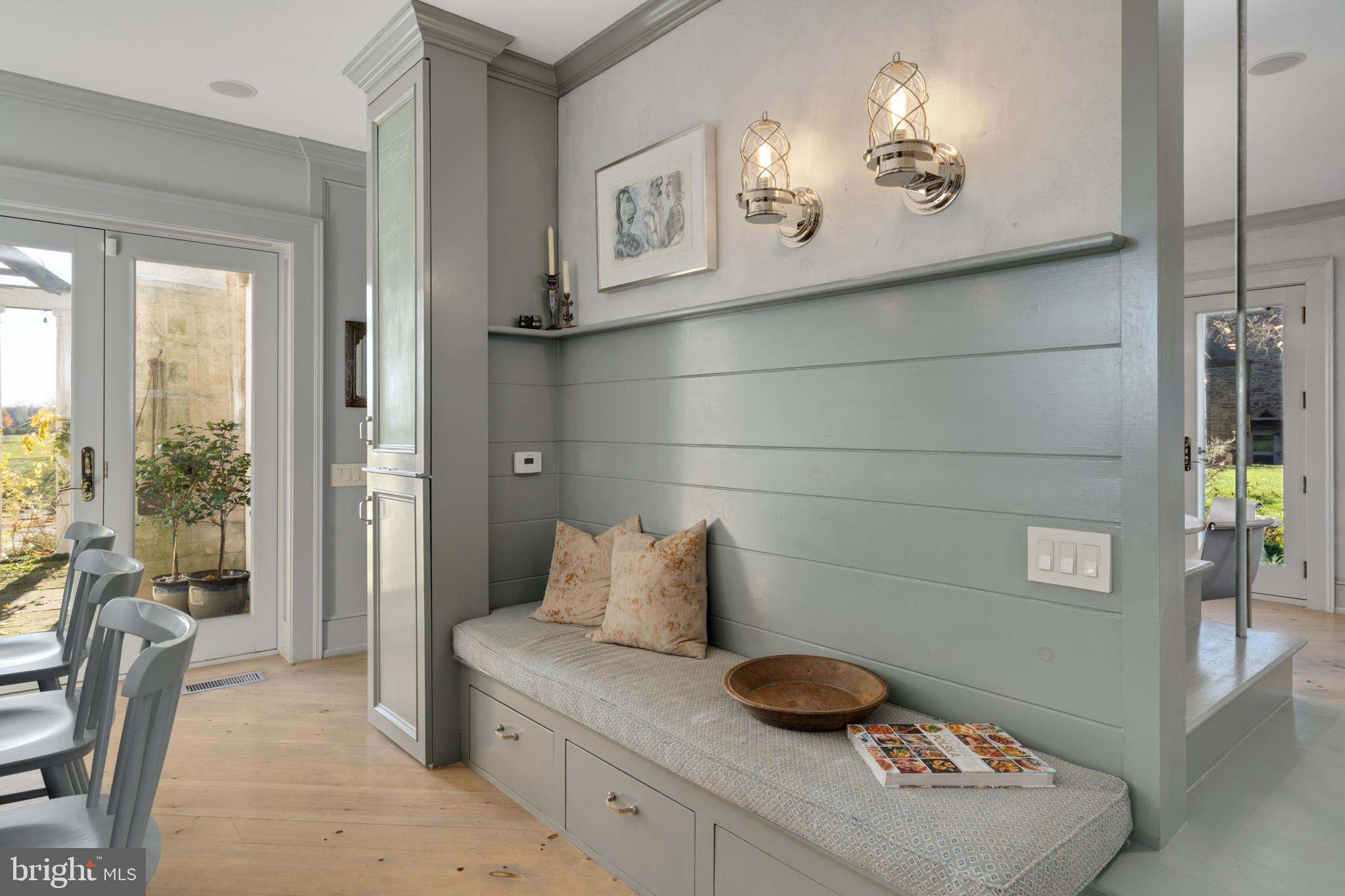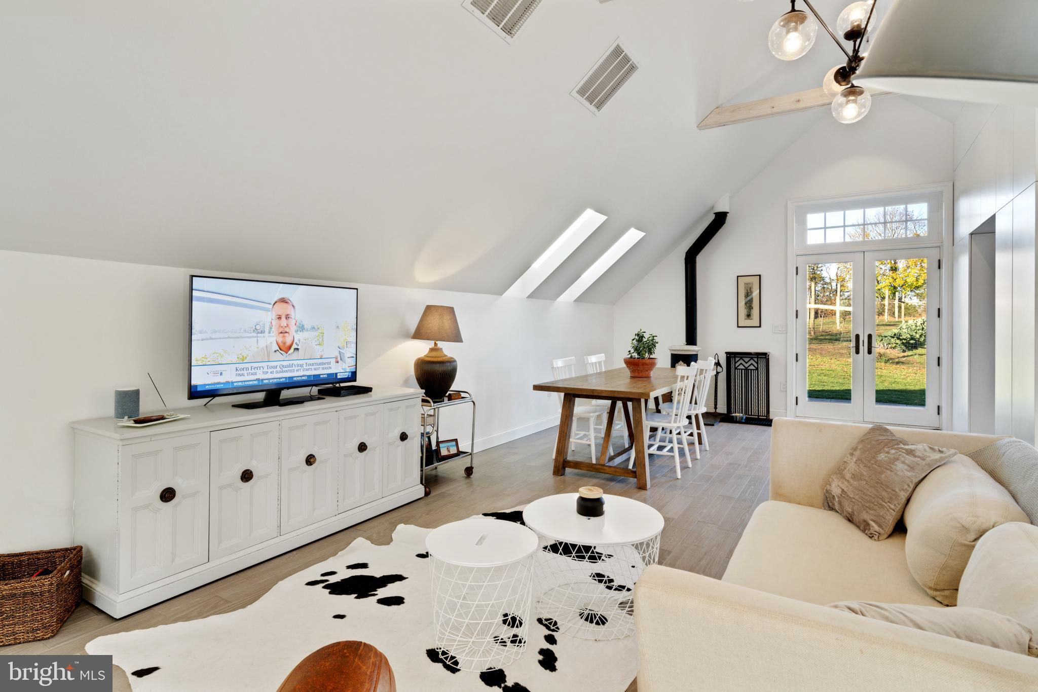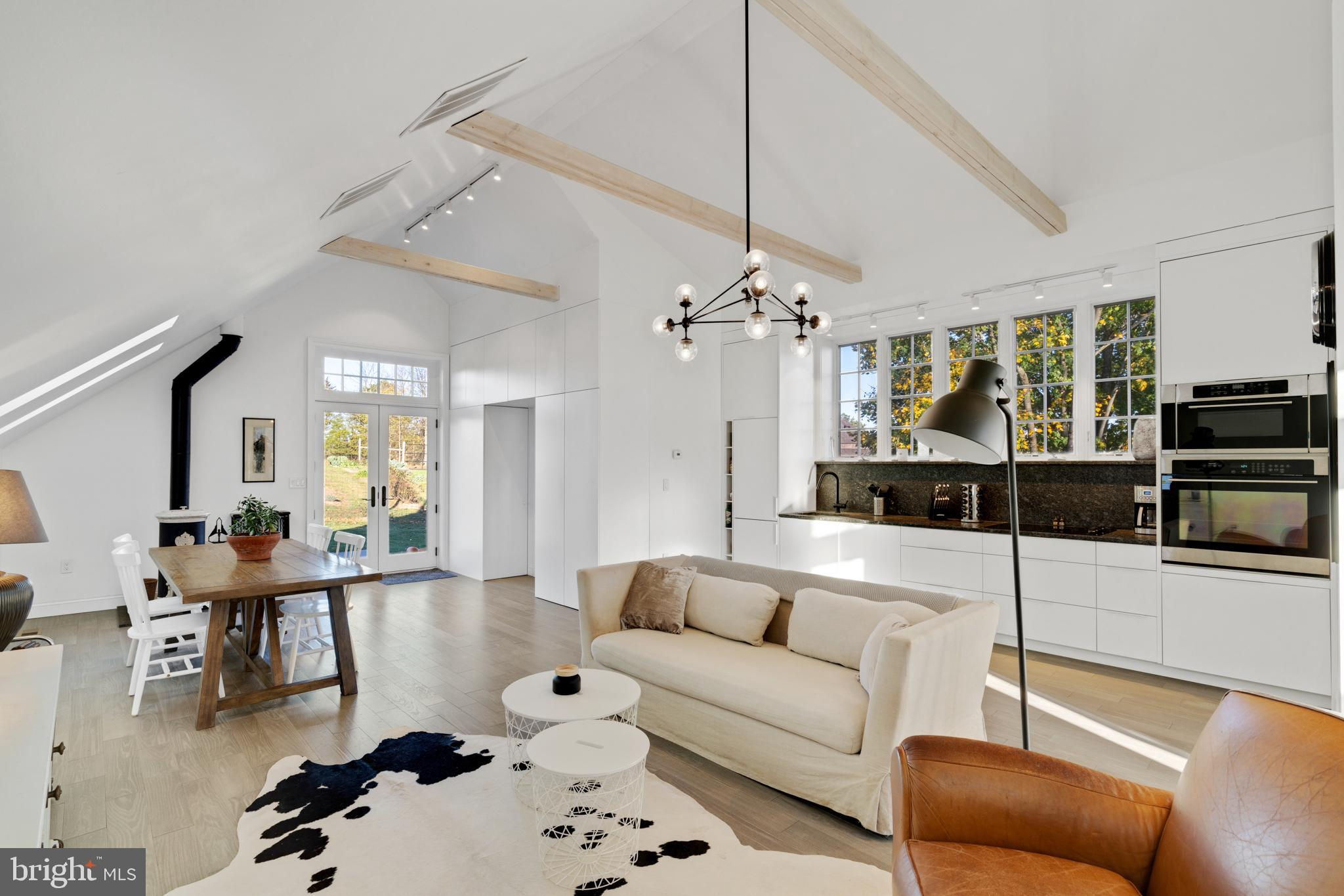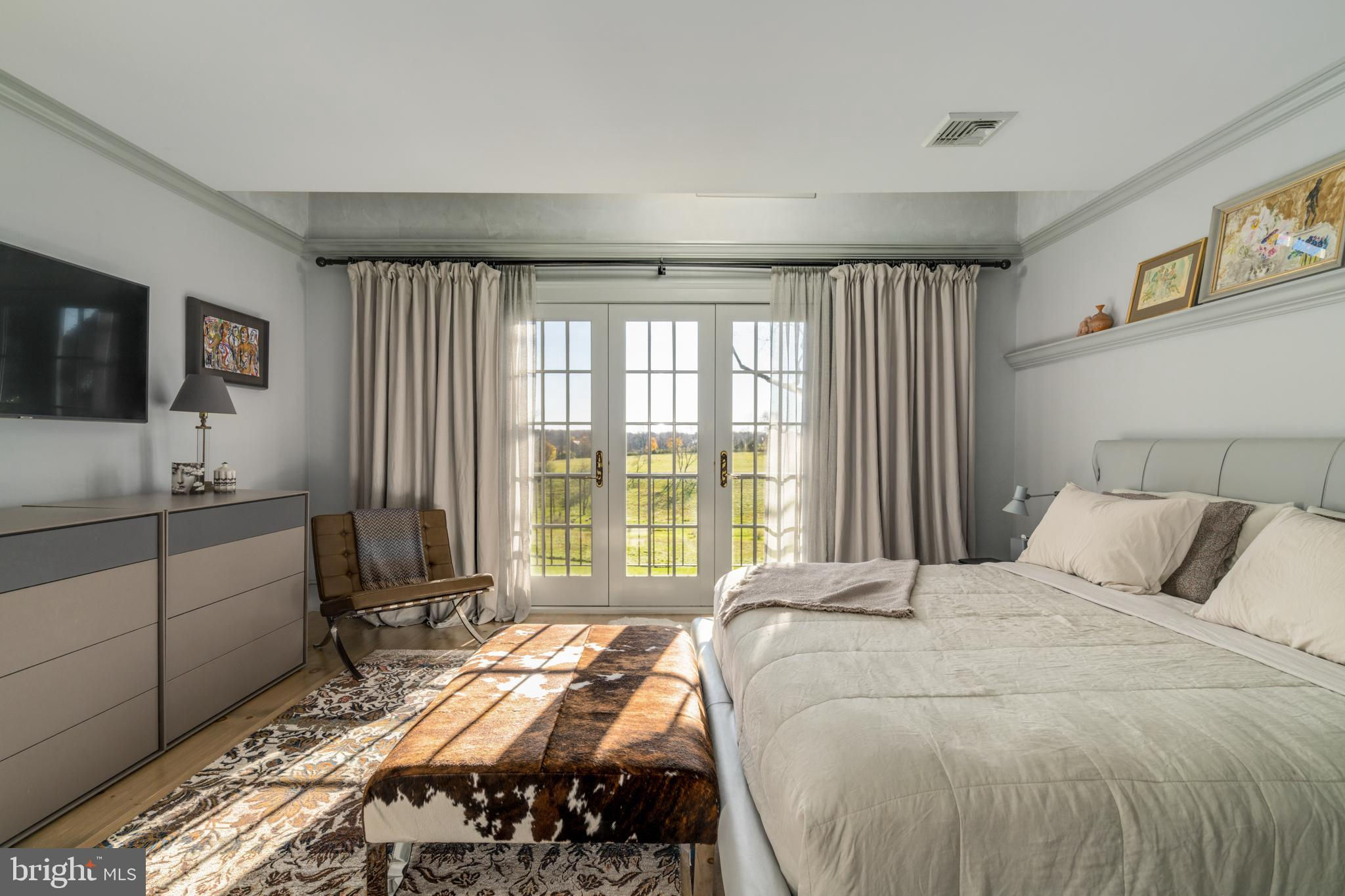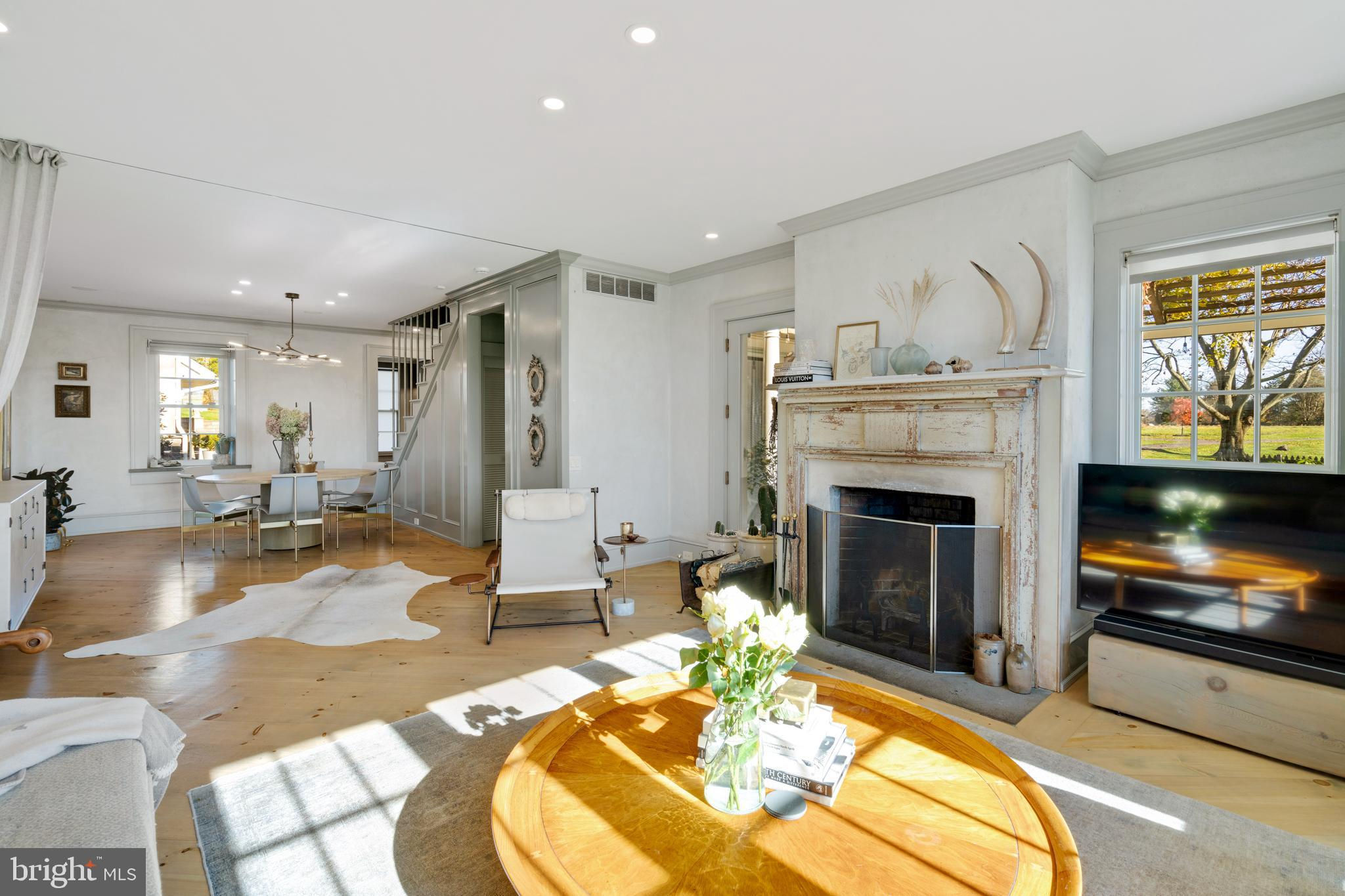 "Serenity Farm" is a curated compound designed around 40+ rolling acres of preserved Bucks County, PA farmland creating the ultimate weekend retreat or full-time home. Your journey begins as you drive through the beautiful winding lane to arrive at the restored 19th Century farmhouse overlooking two repurposed barns, an orchard and a vegetable garden perfect for entertaining family and guests. This awe-inspiring private estate is the realized vision of luxury and comfort in a pastoral setting creating a magical paradise to be restored and rejuvenated with stone patios, communal niches, fire-pits, and meditation stones all focusing toward the beautiful views of the country landscape. The restored farmhouse exudes a contemporary style with newly plastered walls, plank flooring and period moldings bringing the perfect blend of history and modern design. The main living area has an open concept living and dining room with a cozy fireplace, large windows with country landscape views and inviting door to the outdoor patio. The dining area is set up for intimate gatherings around the designer table and chairs illuminated by a Lindsey Adelman chandelier. The patio is accessed through the kitchen and features a covered pergola and fireplace perfect for dining al fresco. The custom kitchen with center island with a French La Cornue gas stove/oven and breakfast bar appeals to the inclusive chef. The oversized sink is framed by large windows for viewing the changing seasons. A working pantry, display niches, bookshelves, bench seating, waterworks lighting and fixtures complete the designer kitchen. A half bath is also located on this entertaining floor. The bedrooms on the 2nd level both enjoy a private balcony and the bathrooms offer top quality fixtures. The primary bedroom overlooking the meditation garden is the larger of the two with custom paneled closets, wall of windows and a walk-in shower. The 3rd level brings a flexible floor plan and loft style study perfect for a home office, meditation room or guest area. The lower level of the house offers a walk out to the garden area and is the perfect place for canning, storage and a home gym as well as housing the utilities. The organic vegetable garden and fruit trees are located just off of the main house to provide farm to table cuisine at the end of each day. Beyond the vegetable garden you will find a chicken coop for those fresh eggs, a field of flower orchards, a greenhouse built from reclaimed treated cedar and sheep grazing on the hillside. The accomplished owner has repurposed each of the vintage agricultural barns. These barns were individually and specifically created to deliver a special experience. Exposed beams, wide board floors and oak paneling offer the authentic aura of the original barns while tying together the themes of entertainment, artist's studio, media room, office space and yoga studio. The largest barn featuring soaring ceilings, glass wall is an extraordinary space ideal for cocktail parties and social gatherings. The placement of these unique dwellings creates an amazing courtyard in which to enjoy endless opportunities to entertain. The 3 car garage is heated and has an upper studio/loft with a bath. The Property has 400 AMP electric service and enjoys the tax benefits of ACT 319 status. Porsche tractor, all farm equipment, livestock and furnishings are negotiable with purchase. The estate is privately situated and surrounded by other large estates and protected land. It is in close proximity to local farm stands, wineries, golf courses and equestrian facilities.The property is located in an area of the county famously known for its scenic beauty, its outdoor sporting events, its culinary heritage and farm to table restaurants, offering an unparalleled country retreat in the heart of the Bucks County, PA. The property is a rare and exceptional offering with easy access to NYC, NJ and Philly.