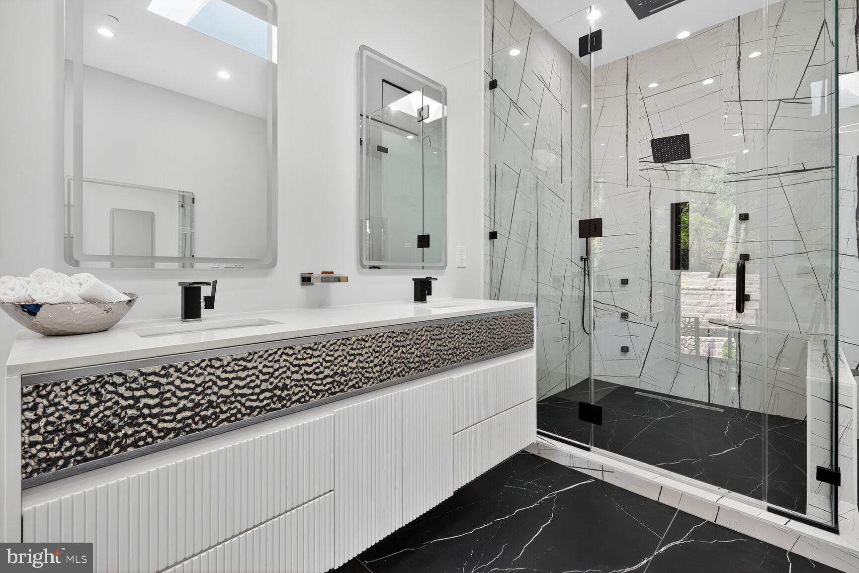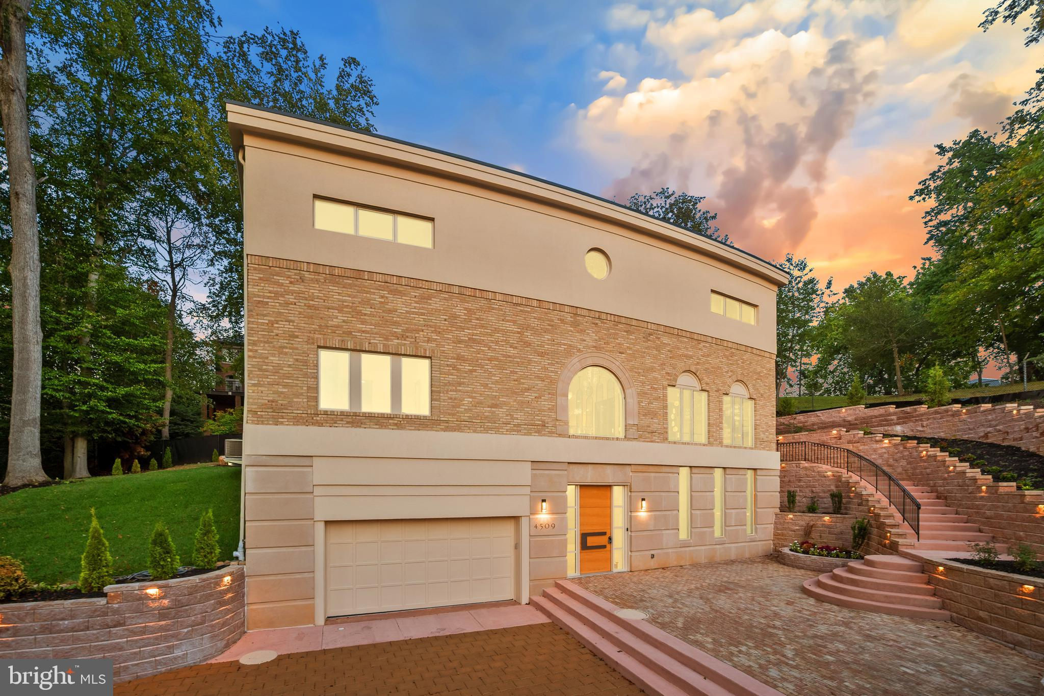 ***NEW CONSTRUCTION*** Welcome to 4509 Foxhall Cres NW — the last jewel of Foxhall Crescent. This bold and breathtaking brand-new construction offers 6,498 square feet of architecturally striking, design-forward living, set on the last buildable lot in one of DC’s most prestigious neighborhoods. Inspired by the signature style of Arthur Cotton Moore, this modern masterpiece spans three finished levels seamlessly connected by a private elevator and features 5 bedrooms, 6.5 bathrooms, an expansive family room, a fully outfitted gym, sauna, and generous storage throughout. The first level offers a state-of-the-art theater, an elegant office, a full bath, private gym/sauna, and access to the 2-car garage. Modern comforts include a two-zone HVAC system and 2 plug-in electric car chargers. Outside, tiered landscaping, a circular staircase, and a private courtyard entry surround a peaceful water fountain, creating a serene and sophisticated outdoor setting. The second level impresses with an open-concept layout, anchored by a sculptural black granite island in the dramatic chef’s kitchen, complete with a Sub-Zero refrigerator, Thermador stove, GE Monogram double ovens, double Fisher & Paykel dishwashers, metallic mosaic backsplash, a hidden butler's walk-in pantry, and a trash chute for convenience. Natural light streams through oversized black-framed Pella windows, illuminating the refined living and dining spaces, as well as a chic main-level guest suite. On the third level, the primary suite is a private retreat featuring dual walk-in closets and a spa-inspired bath with an oversized rainfall shower, freestanding soaking tub, and floating vanities. The upper level also offers 3 additional full bathrooms to accompany the 3 bedrooms. Located in the exclusive and tranquil enclave of Foxhall Crescent, just moments from Georgetown, Palisades, and the C&O Canal, this home represents a rare opportunity to own a true statement property - one that seamlessly blends modern luxury, artistic vision, and effortless everyday living.