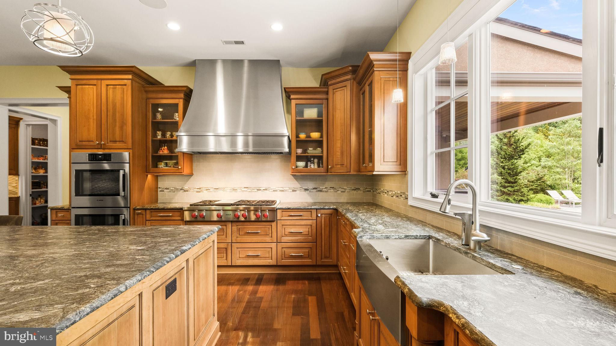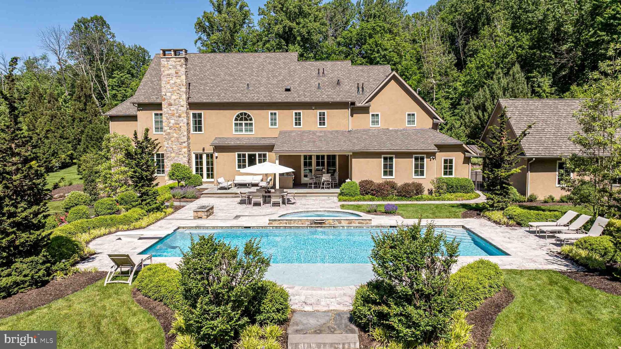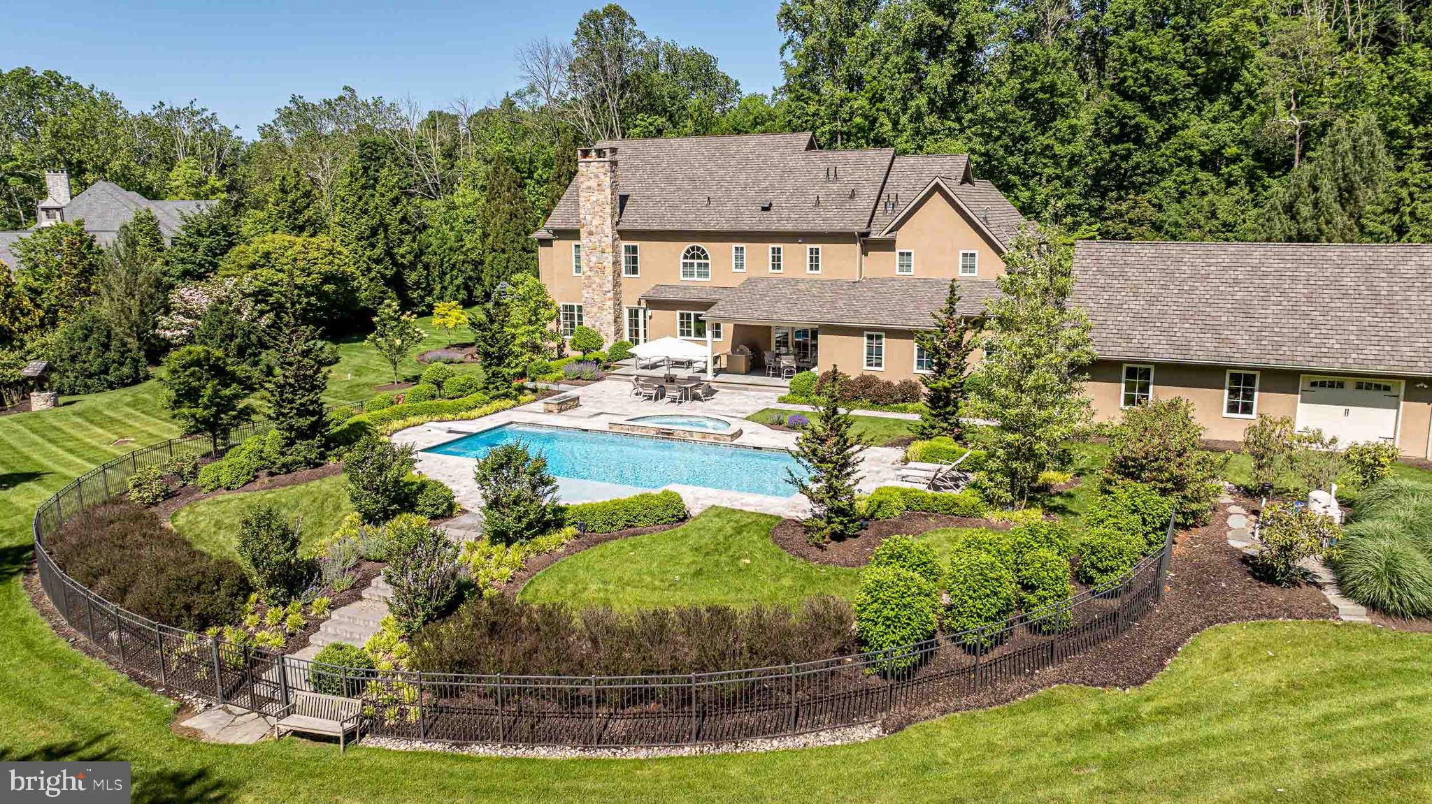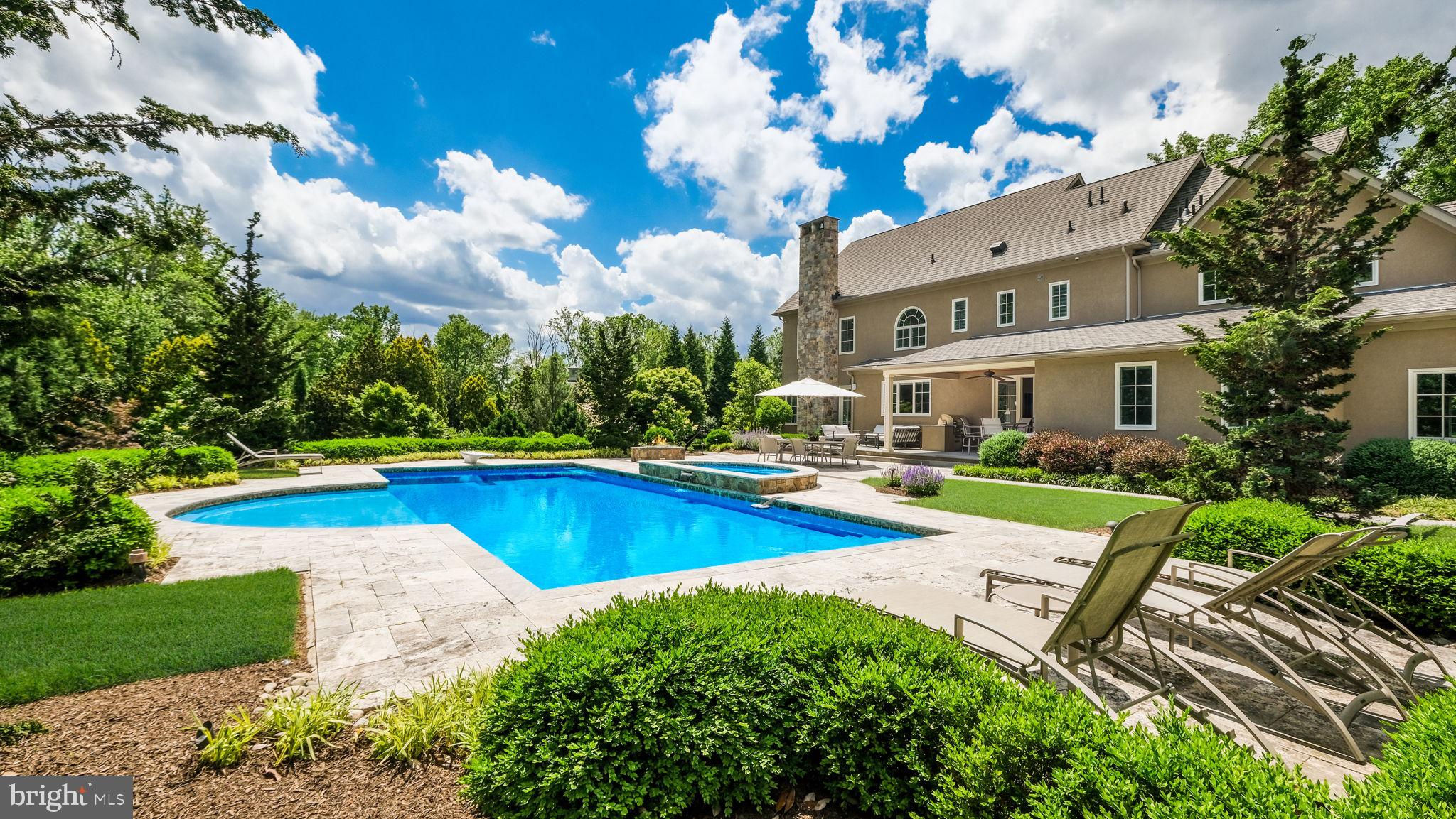 Welcome to 5 Woodbury Path, an exquisite estate in Doylestown, PA, offering unparalleled elegance and sophistication. Crafted by renowned custom builder Richard Zaveta, this expansive residence spans 8,139 square feet across three full living levels, with a fourth level easy-to-finish and suit your needs. Situated on 5.03 meticulously landscaped and hardscaped acres, this property provides privacy and seclusion, making it a true oasis. Upon entering the grand foyer, you are greeted by masterful woodwork, a spiral staircase, coffered ceilings, and a beautiful chandelier. The main level features Brazilian cherry hardwood floors throughout, an executive office, a distinguished dining room, and a comfortable living room with a fireplace and tall windows on two sides. The gourmet kitchen is a chef's dream, complete with a butler's pantry and a food pantry. Adjacent to the kitchen is a breakfast room, a second office/flex room, and a mudroom with direct access to the 1st of two oversized 3-car garages, ideal for the automotive aficionado. The upper level, also showcasing Brazilian cherry hardwoods, is home to the primary suite, which includes a luxurious en-suite bathroom with 2 water closets, a soaking tub, and generous-sized glass shower. There are two full walk-in-closet rooms. Three additional bedrooms and bathrooms provide abundant space for family and friends. For convenience, the laundry room is accessible to the bedrooms, and the hallway staircase leads to another level with additional square footage ready for finishing. The lower level offers additional living space, featuring a family room w/home theater, 2 exercise rooms, a chic bar, lodging for overnight guests and a full bathroom. For the wine enthusiast, there's an open display area and as well as double glass doors showcasing your collection. This level is perfect for entertaining and relaxation. There's plenty of useful storage area, too. Outdoor amenities include a 50-foot lap pool and spa, a covered patio, and an expansive backyard designed for gatherings and parties. There's a blue stone natural tile entrance and patio. The meticulously landscaped grounds offer a breathtaking backdrop for every season, whether you're enjoying the full sun of summer, the vibrant foliage of fall, a winter wonderland, or the splendid beauty of spring. The natural lighting and views at all hours of the day and evening from every room are magical. This property is equipped with modern conveniences such as a 3-level elevator and a generator, ensuring comfort and functionality. The foyer crystal fixture is motorized for easy cleaning. The sound system is incredible. Window treatments operate with a wireless remote. No details were overlooked! Located in the top-rated Central Bucks School District, 5 Woodbury Path is just minutes from shopping, restaurants, and the historic sites in Doylestown's Borough. Enjoy easy access to major highways, and the cultural attractions and theaters of New Hope, PA and Lambertville, NJ. Experience the luxury and privacy of this elegant estate, perfect for modern professionals and families alike. This property is for sale and offers a unique opportunity to own a piece of beautiful Bucks County's finest real estate.