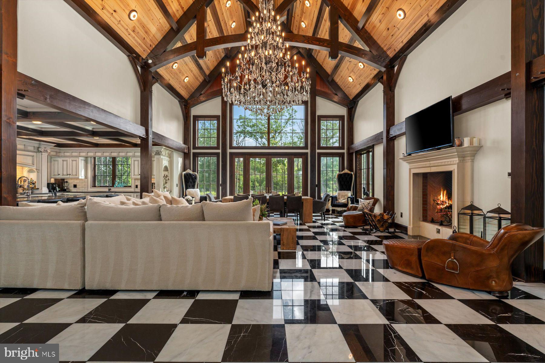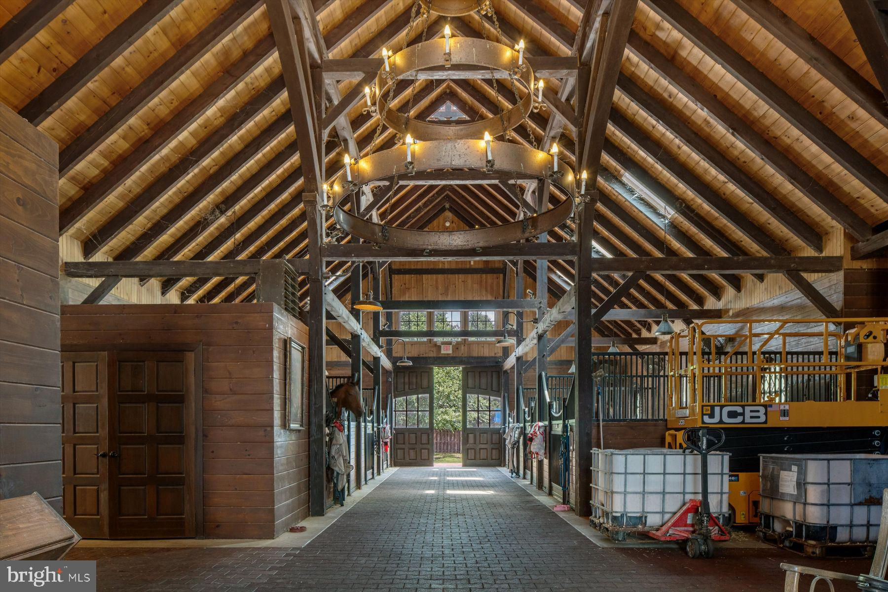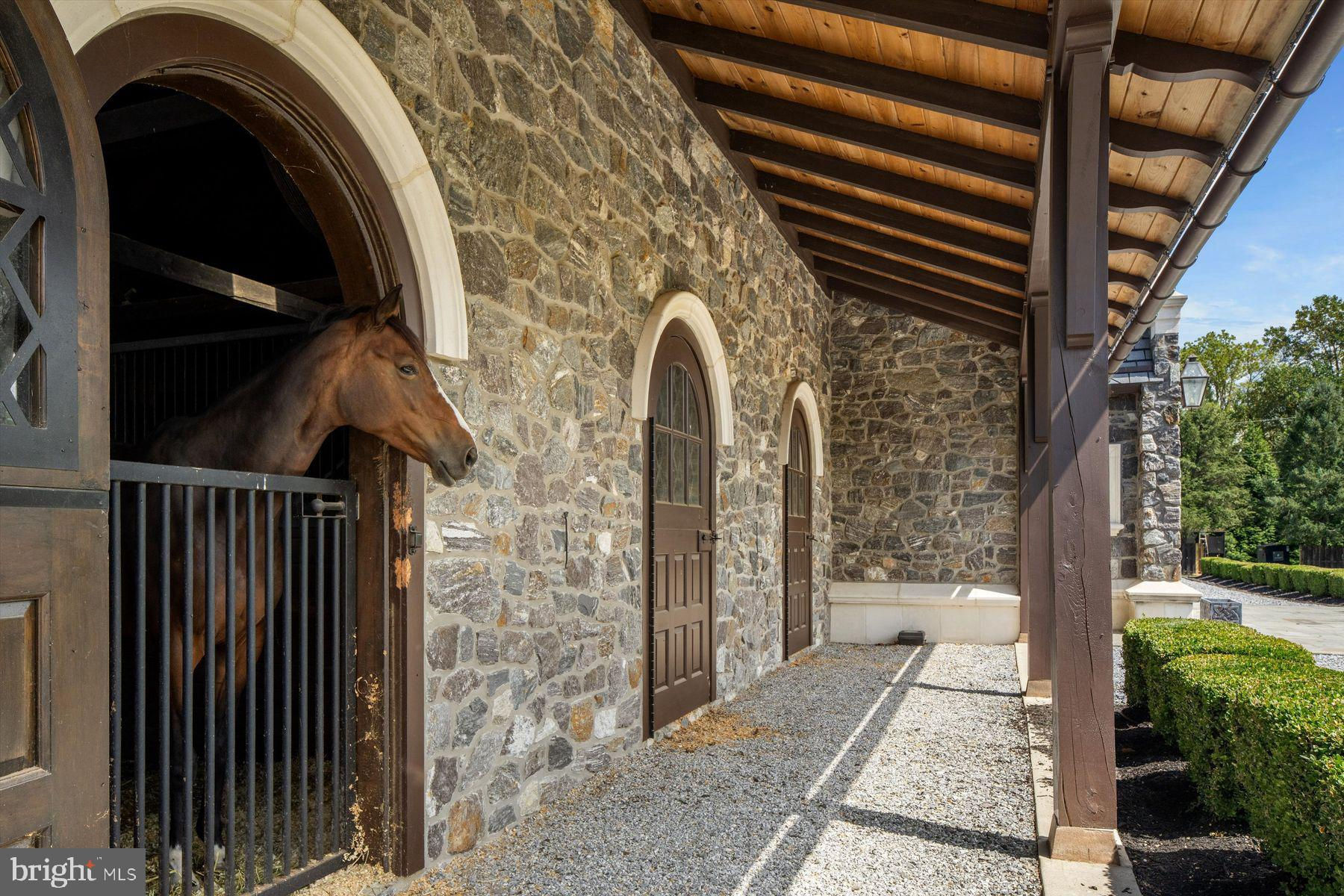 Welcome to a one-of-a-kind equestrian estate that blends privacy, beauty, and world-class amenities across approximately 60 pristine acres. Whether you envision it as a private family retreat, a working equestrian estate, or a stunning country escape, this property delivers on every level. From the moment you arrive through the grand gated entrance, you’ll know you’ve entered a retreat unlike any other. Meander down a treelined drive to a stunning residence, where craftsmanship, comfort, and eco-friendly living come together. This custom-built stone and timber frame home, designed with sustainable SIP construction, is not only elegant but efficient, and thoughtfully designed to keep utility costs low without ever compromising on style. A gorgeous entrance invites you into a spectacular great room with a soaring cathedral ceiling, exposed beams, Italian marble floors and a handsome woodburning fireplace. The open floor plan flows into a magnificent kitchen, custom cabinetry, granite countertops, outfitted with professional-grade Wolf appliances, two dishwashers, pullout refrigerators and freezers, warming drawer, induction cooktop, double oven with 6-burner range w/ griddle, butler’s pantry and walk-in pantry. The perfect blend of beauty and function. Tucked away on the first floor is a dedicated wing for the primary bedroom suite with a woodburning fireplace, a custom walk-in closet, a luxurious spa-like bathroom with antique soaking tub, walk-in shower with jets, steam and tanning feature. A spacious sitting room with cathedral ceiling, stone woodburning fireplace, amazing natural light with elegant doors accessible to a private outdoor oasis w/ a covered pergola and a Michael Phelps swim spa. Also conveniently located on the main level, you will find a wet bar, den w/ fireplace, a full bathroom and access to a temperature controlled oversized 3-car garage w/ catering kitchen w/ a Sub-Zero refrigerator, ice machine and two convection ovens. An elevator takes you to a private & secure upper-level w/ an office and cozy den. The elevator also provides access to the lower level with a custom wet bar, powder room, 2nd laundry room and incredible storage. The secondary bedrooms are located at the opposite end of the home on the 2nd level. This wing includes a family room, 3 en suite bedrooms and laundry. The home offers the perfect integration of indoor and outdoor spaces with multiple access points to the extensive, wraparound brick paver patio, which is perfect for relaxation and entertainment. The resort-style pool complex boasts a saltwater heated pool w/ waterfall feature, sun shelf, spacious hot tub, custom slide and infrastructure for a future pool house and bocce ball court. World-class equestrian facilities include a European-style barn, custom-built by B&D Builders with 10-stalls (12’x12’) w/ automatic Nelson waterers, two oversized indoor wash stalls w/ hot & cold water, radiant heated floors, dual coal-fired blowers & two outdoor wash stalls. Additional amenities include a large storage rm, laundry rm and tack rm w/ 10 lockers. Barn includes a 3-bedroom apartment w/ a living rm & full kitchen w/ Sub-Zero appliances. Perfect for staff/guests. Directly adjacent is a spectacular 80’ x 180’ indoor arena w/ oversized garage-style doors with GTT fiber footing. Attached to the arena is a heated 8-car garage w/ high ceilings. Perfect for equipment, vehicles or workshop. Two shed rows; a 4-stall (12’x12’) w/ a tack rm & a 5-stall shed row, both w/ Dutch doors and windows. Two beautiful outdoor sand arenas. 200’ x 200’, ideal for jump course or flatwork and 180’ x 200’, perfect for dressage or versatility work. Two 40’ x 40’ stallion paddocks, six additional paddocks w/ 12’ x 12’ run-in sheds. Each paddock equipped w/ Nelson heated waterers. Additional outbuildings: large open pole barn & detached garage/storage shed. The barn is supported by a secondary gated entrance and its own well.