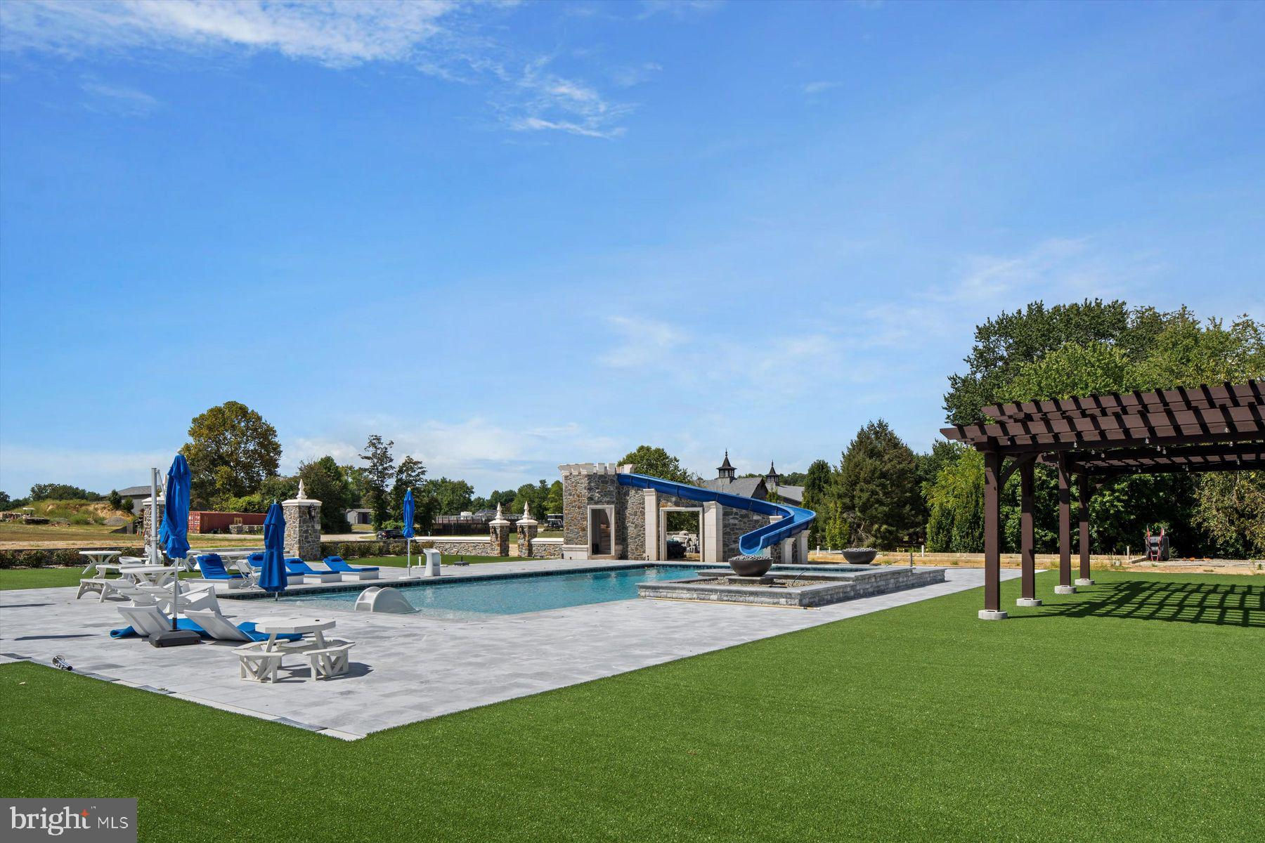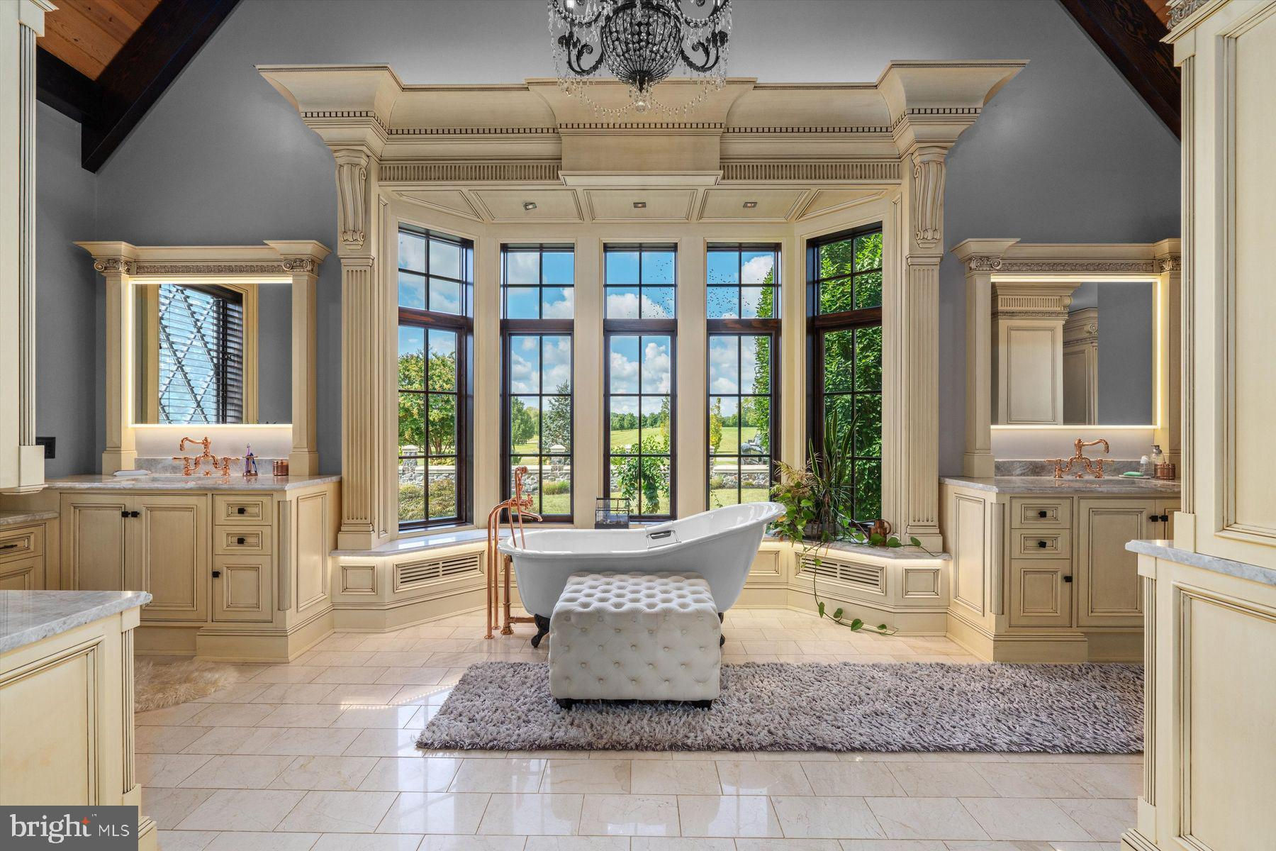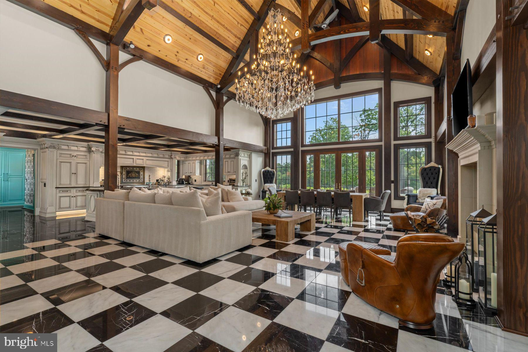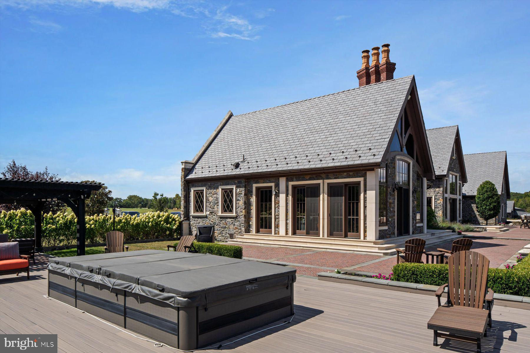 Welcome to a one-of-a-kind equestrian estate that blends privacy, beauty, and world-class amenities across approximately 60 pristine acres. Whether you envision it as a private family retreat, a working equestrian estate, or a stunning country escape, this property delivers on every level. From the moment you arrive through the grand gated entrance, you’ll know you’ve entered a retreat unlike any other. Meander down a treelined drive to a stunning residence, where craftsmanship, comfort, and eco-friendly living come together. This custom-built stone and timber frame home, designed with sustainable SIP construction, is not only elegant but efficient, and thoughtfully designed to keep utility costs low without ever compromising on style. A gorgeous entrance invites you into a spectacular great room with a soaring cathedral ceiling, exposed beams, Italian marble floors and a handsome woodburning fireplace. The open floor plan flows into a magnificent kitchen, custom cabinetry, granite countertops, outfitted with professional-grade Wolf appliances, two dishwashers, pullout refrigerators and freezers, warming drawer, induction cooktop, double oven with 6-burner range w/ griddle, butler’s pantry and walk-in pantry. The perfect blend of beauty and function. Tucked away on the first floor is a dedicated wing for the primary bedroom suite with a woodburning fireplace, a custom walk-in closet, a luxurious spa-like bathroom with antique soaking tub, walk-in shower with jets, steam and tanning feature. A spacious sitting room with cathedral ceiling, stone woodburning fireplace, amazing natural light with elegant doors accessible to a private outdoor oasis w/ a covered pergola and a Michael Phelps swim spa. Also conveniently located on the main level, you will find a wet bar, den w/ fireplace, a full bathroom and access to a temperature controlled oversized 3-car garage w/ catering kitchen w/ a Sub-Zero refrigerator, ice machine and two convection ovens. An elevator takes you to a private & secure upper-level w/ an office and cozy den. The elevator also provides access to the lower level with a custom wet bar, powder room, 2nd laundry room and incredible storage. The secondary bedrooms are located at the opposite end of the home on the 2nd level. This wing includes a family room, 3 en suite bedrooms and laundry. The home offers the perfect integration of indoor and outdoor spaces with multiple access points to the extensive, wraparound brick paver patio, which is perfect for relaxation and entertainment. The resort-style pool complex boasts a saltwater heated pool w/ waterfall feature, sun shelf, spacious hot tub, custom slide and infrastructure for a future pool house and bocce ball court. World-class equestrian facilities include a European-style barn, custom-built by B&D Builders with 10-stalls (12’x12’) w/ automatic Nelson waterers, two oversized indoor wash stalls w/ hot & cold water, radiant heated floors, dual coal-fired blowers & two outdoor wash stalls. Additional amenities include a large storage rm, laundry rm and tack rm w/ 10 lockers. Barn includes a 3-bedroom apartment w/ a living rm & full kitchen w/ Sub-Zero appliances. Perfect for staff/guests. Directly adjacent is a spectacular 80’ x 180’ indoor arena w/ oversized garage-style doors with GTT fiber footing. Attached to the arena is a heated 8-car garage w/ high ceilings. Perfect for equipment, vehicles or workshop. Two shed rows; a 4-stall (12’x12’) w/ a tack rm & a 5-stall shed row, both w/ Dutch doors and windows. Two beautiful outdoor sand arenas. 200’ x 200’, ideal for jump course or flatwork and 180’ x 200’, perfect for dressage or versatility work. Two 40’ x 40’ stallion paddocks, six additional paddocks w/ 12’ x 12’ run-in sheds. Each paddock equipped w/ Nelson heated waterers. Additional outbuildings: large open pole barn & detached garage/storage shed. The barn is supported by a secondary gated entrance and its own well.