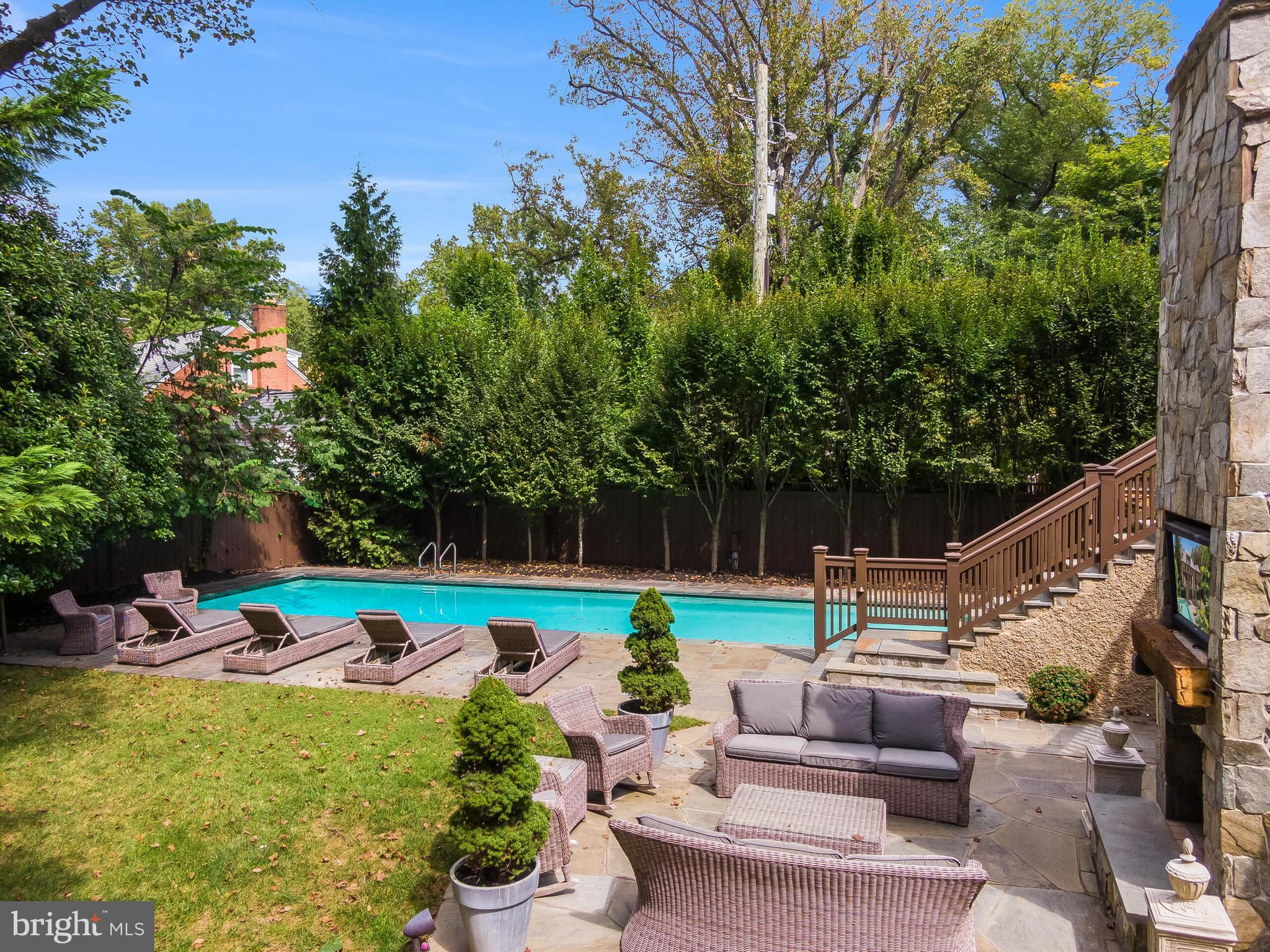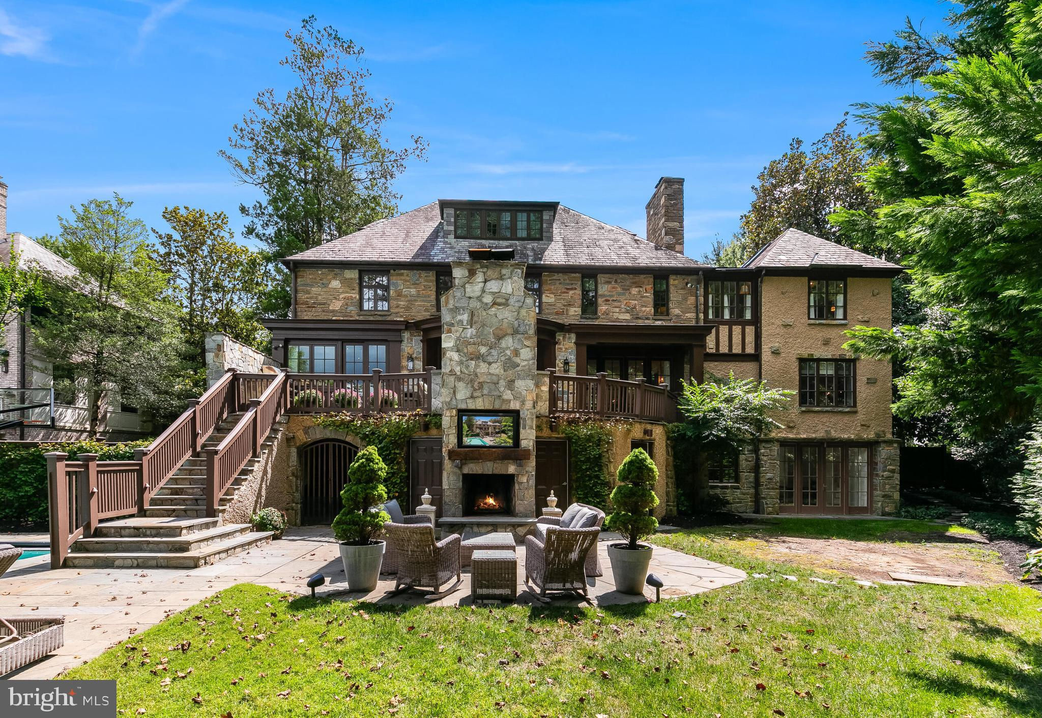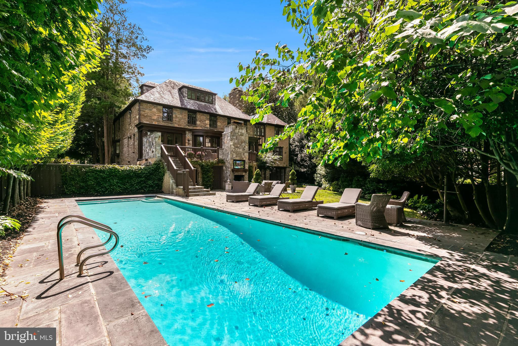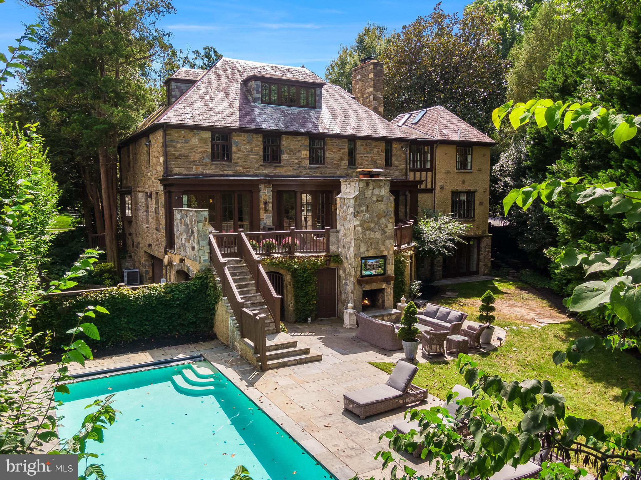 Nestled in the coveted Spring Valley neighborhood, this stately 1942 Tudor Revival has been thoughtfully renovated in 2023. The result is a seamless blend of historic character and modern sophistication—more than just a home, it’s a living work of art designed for elegant living and effortless entertaining. As you approach, the home’s iconic diamond-paned windows offer a glimpse into its rich architectural past. Step inside, and you’re immediately greeted by a harmonious fusion of classic craftsmanship and contemporary upgrades, elevating every space with purpose and grace. The main level sets a tone of understated grandeur, with soaring 9+ foot ceilings and sun-drenched spaces throughout. The formal living room, framed by oversized windows and anchored by a wood-burning fireplace, invites both quiet moments and lively gatherings. The newly reimagined kitchen—part of the 2023 renovation by renowned architect Dale Overmyer, with construction by John Cecchi—is a showpiece designed for connection, featuring premium finishes and a seamless flow into the family room and dining area, all exuding warmth and sophistication. The primary suite is a private sanctuary. With its own fireplace, dual walk-in and cedar closets, and a spa-inspired bath, it’s a retreat designed for true rejuvenation. The dual-sided bathroom is bathed in natural light from a skylight above the soaking tub and includes a private vanity and water closet. Upstairs, each of the six bedrooms has its own story. Three bedrooms include a Jack-and-Jill bath arrangement—perfect for family living—while another features a private en suite. The light-filled Parisian-style suite offers its own full bath and private feel, ideal for long-term guests, an au pair, or an artist’s retreat. The lower level is a world of its own, offering a flexible, self-contained living space with a private entrance, second kitchen, bedroom, recreation room, and two full baths. Whether used as an in-law suite, home gym, or creative studio, it’s designed to adapt to your lifestyle. Outside, the home becomes a private resort. French doors lead to a spacious deck with a built-in grill and tree-lined views, perfect for hosting or unwinding. The fully fenced, professionally landscaped yard features irrigation, landscape lighting, and a heated pool with a remote-controlled cover—ideal for summer swims or relaxing on quiet Sundays. A custom stone patio with a wood-burning fireplace provides the perfect backdrop for cozy evenings under the stars. Additional features include a billiard room/library, built-in Sonos sound system, separate audio/visual room, dual laundry facilities, two garages, and a Ring security system—all set on a generous .33-acre lot. Located in the sought-after Spring Valley community, this home offers the tranquility of suburban living with unmatched urban access. Enjoy brunch in the Palisades, short commutes to downtown DC or Tysons, and scenic walks through nearby parks and trails. This is more than a home—it’s a story of legacy and reinvention, where every room reflects thoughtful design, enduring elegance, and purposeful living.