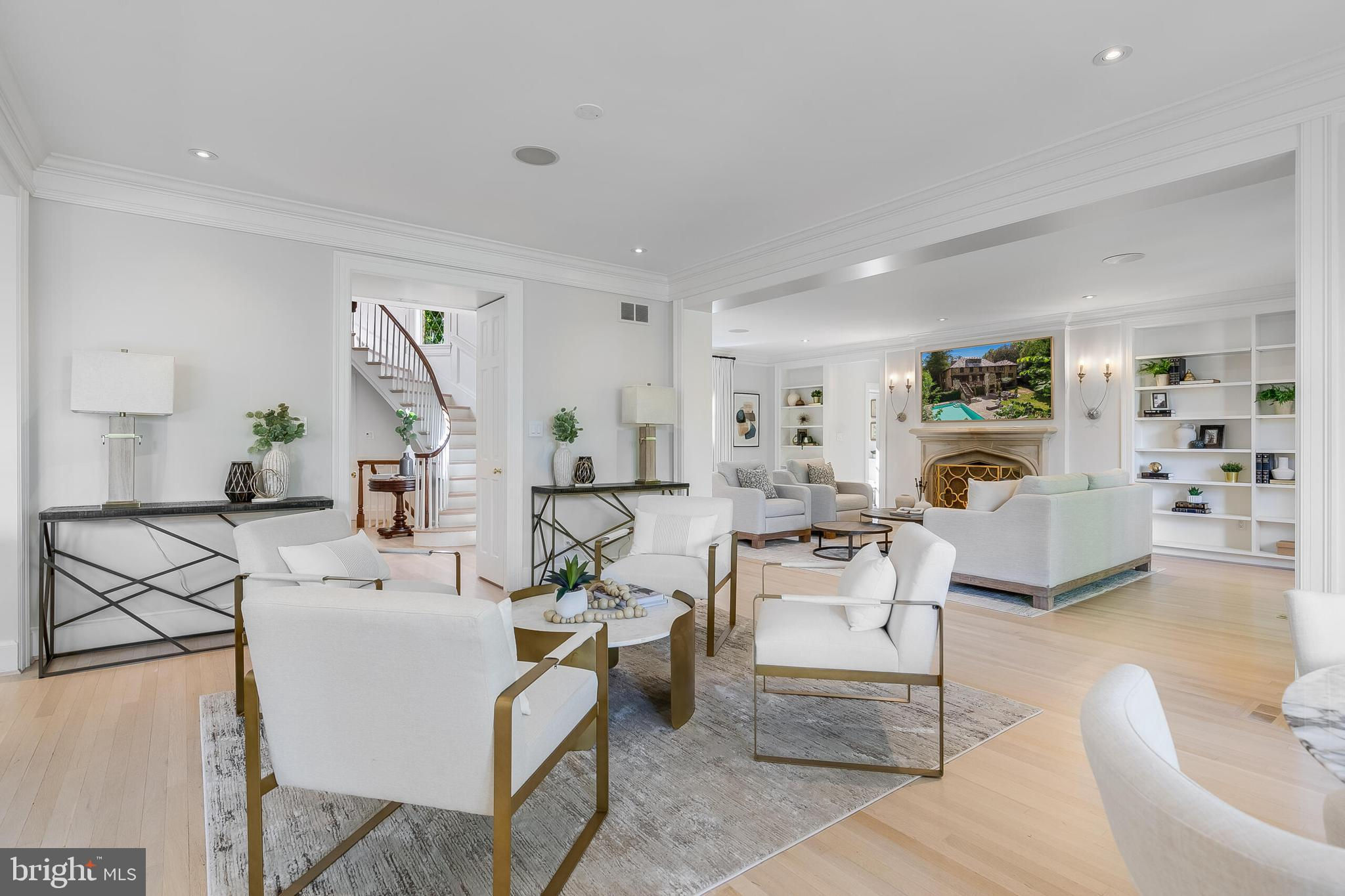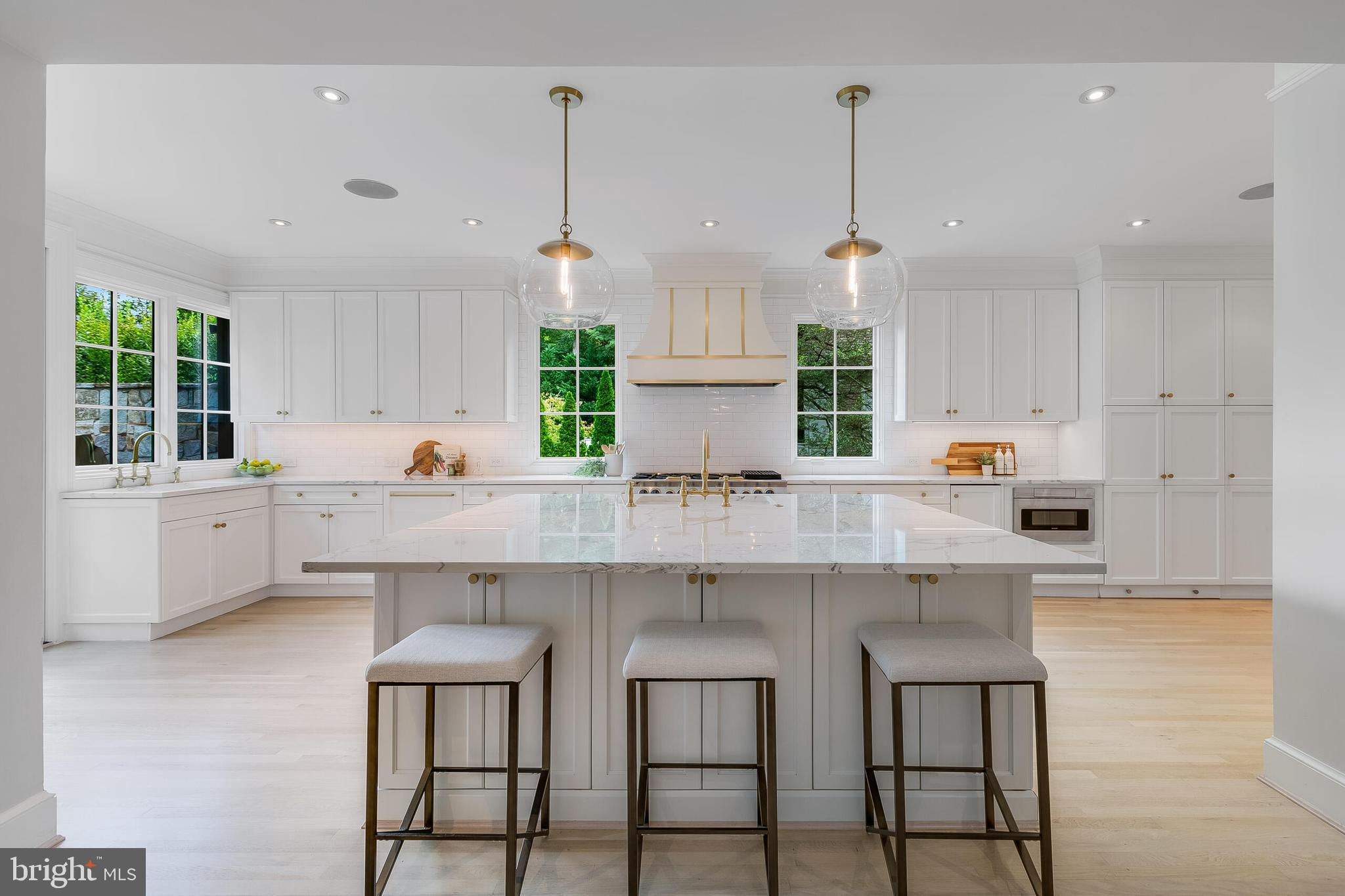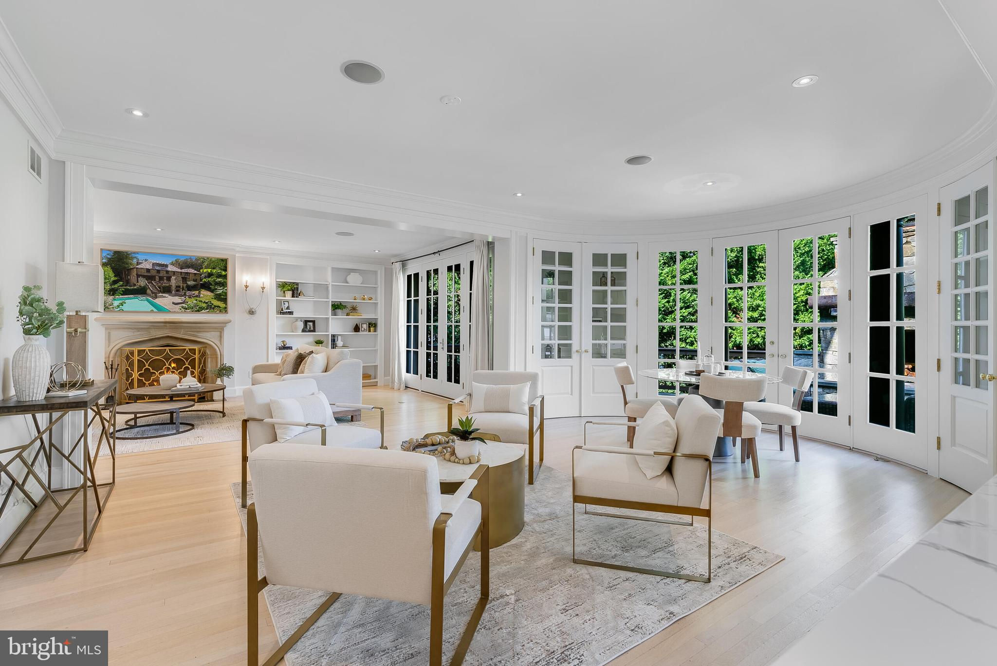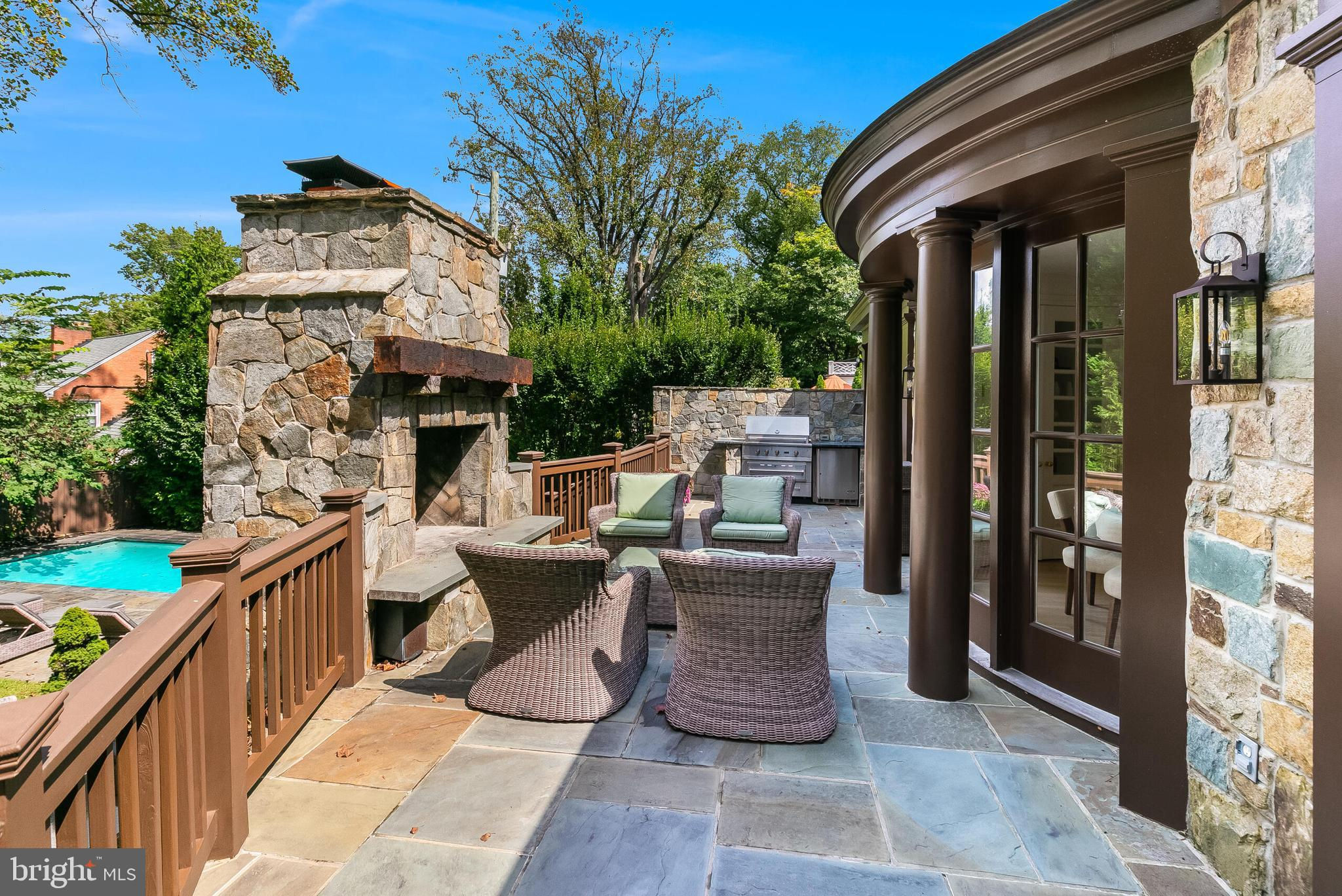 Nestled in the coveted Spring Valley neighborhood, this stately 1942 Tudor Revival has been thoughtfully renovated in 2023. The result is a seamless blend of historic character and modern sophistication—more than just a home, it’s a living work of art designed for elegant living and effortless entertaining. As you approach, the home’s iconic diamond-paned windows offer a glimpse into its rich architectural past. Step inside, and you’re immediately greeted by a harmonious fusion of classic craftsmanship and contemporary upgrades, elevating every space with purpose and grace. The main level sets a tone of understated grandeur, with soaring 9+ foot ceilings and sun-drenched spaces throughout. The formal living room, framed by oversized windows and anchored by a wood-burning fireplace, invites both quiet moments and lively gatherings. The newly reimagined kitchen—part of the 2023 renovation by renowned architect Dale Overmyer, with construction by John Cecchi—is a showpiece designed for connection, featuring premium finishes and a seamless flow into the family room and dining area, all exuding warmth and sophistication. The primary suite is a private sanctuary. With its own fireplace, dual walk-in and cedar closets, and a spa-inspired bath, it’s a retreat designed for true rejuvenation. The dual-sided bathroom is bathed in natural light from a skylight above the soaking tub and includes a private vanity and water closet. Upstairs, each of the six bedrooms has its own story. Three bedrooms include a Jack-and-Jill bath arrangement—perfect for family living—while another features a private en suite. The light-filled Parisian-style suite offers its own full bath and private feel, ideal for long-term guests, an au pair, or an artist’s retreat. The lower level is a world of its own, offering a flexible, self-contained living space with a private entrance, second kitchen, bedroom, recreation room, and two full baths. Whether used as an in-law suite, home gym, or creative studio, it’s designed to adapt to your lifestyle. Outside, the home becomes a private resort. French doors lead to a spacious deck with a built-in grill and tree-lined views, perfect for hosting or unwinding. The fully fenced, professionally landscaped yard features irrigation, landscape lighting, and a heated pool with a remote-controlled cover—ideal for summer swims or relaxing on quiet Sundays. A custom stone patio with a wood-burning fireplace provides the perfect backdrop for cozy evenings under the stars. Additional features include a billiard room/library, built-in Sonos sound system, separate audio/visual room, dual laundry facilities, two garages, and a Ring security system—all set on a generous .33-acre lot. Located in the sought-after Spring Valley community, this home offers the tranquility of suburban living with unmatched urban access. Enjoy brunch in the Palisades, short commutes to downtown DC or Tysons, and scenic walks through nearby parks and trails. This is more than a home—it’s a story of legacy and reinvention, where every room reflects thoughtful design, enduring elegance, and purposeful living.