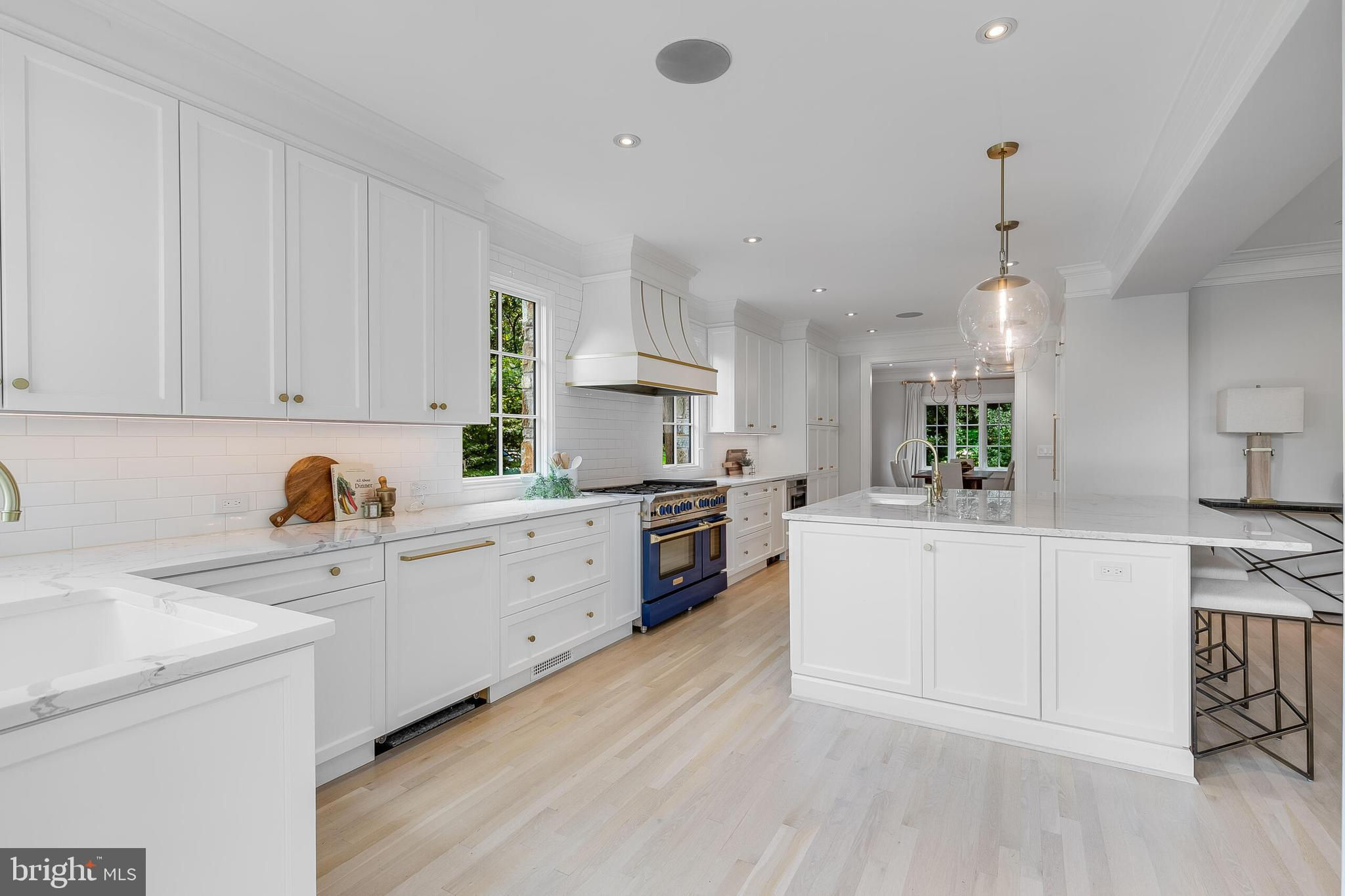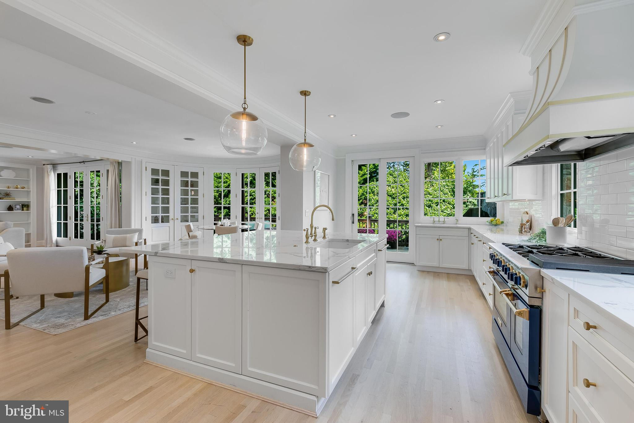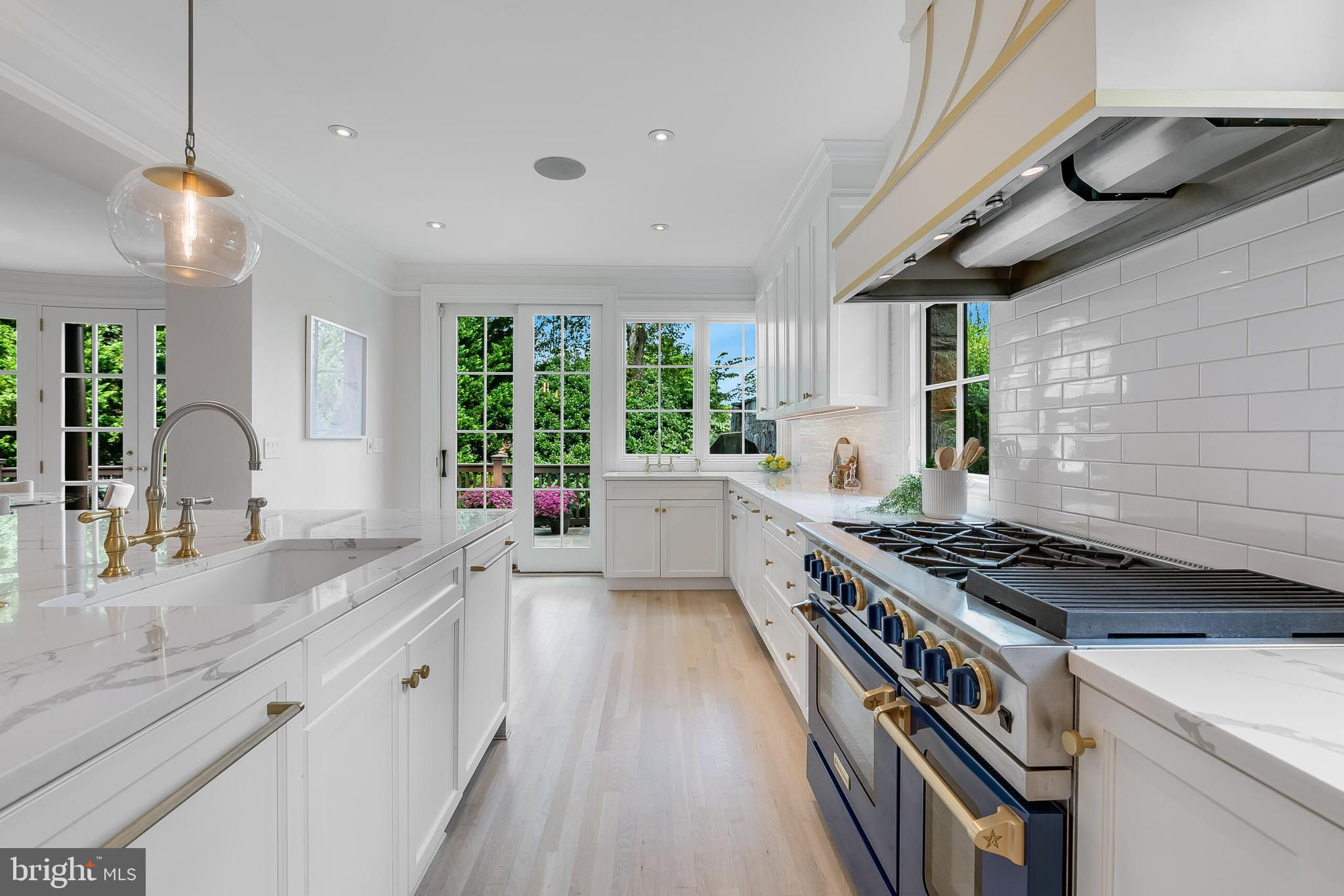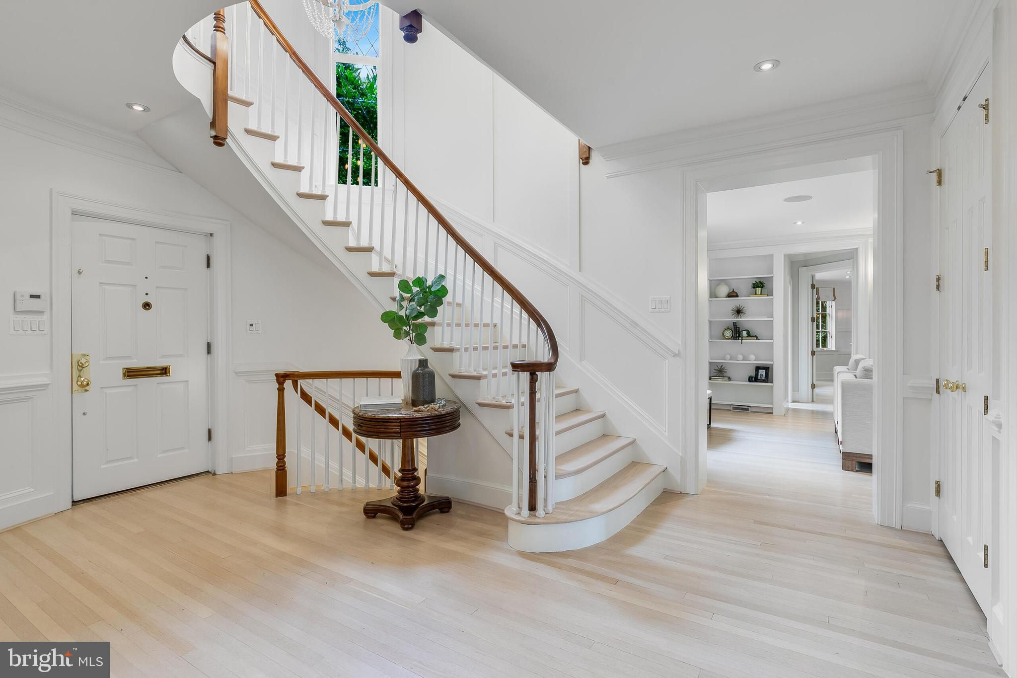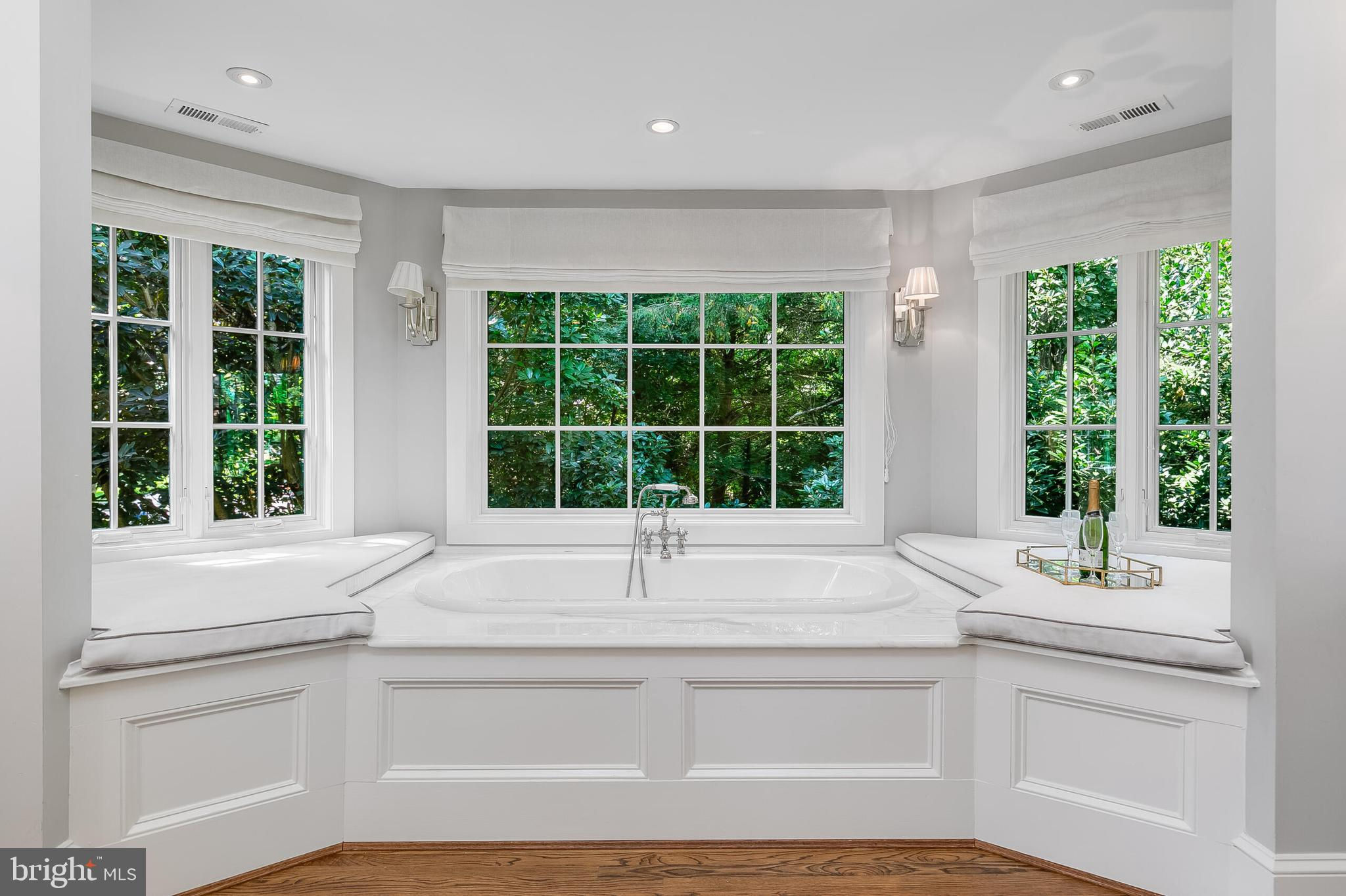 Nestled in the coveted Spring Valley neighborhood, this stately 1942 Tudor Revival has been thoughtfully renovated in 2023. The result is a seamless blend of historic character and modern sophistication—more than just a home, it’s a living work of art designed for elegant living and effortless entertaining. As you approach, the home’s iconic diamond-paned windows offer a glimpse into its rich architectural past. Step inside, and you’re immediately greeted by a harmonious fusion of classic craftsmanship and contemporary upgrades, elevating every space with purpose and grace. The main level sets a tone of understated grandeur, with soaring 9+ foot ceilings and sun-drenched spaces throughout. The formal living room, framed by oversized windows and anchored by a wood-burning fireplace, invites both quiet moments and lively gatherings. The newly reimagined kitchen—part of the 2023 renovation by renowned architect Dale Overmyer, with construction by John Cecchi—is a showpiece designed for connection, featuring premium finishes and a seamless flow into the family room and dining area, all exuding warmth and sophistication. The primary suite is a private sanctuary. With its own fireplace, dual walk-in and cedar closets, and a spa-inspired bath, it’s a retreat designed for true rejuvenation. The dual-sided bathroom is bathed in natural light from a skylight above the soaking tub and includes a private vanity and water closet. Upstairs, each of the six bedrooms has its own story. Three bedrooms include a Jack-and-Jill bath arrangement—perfect for family living—while another features a private en suite. The light-filled Parisian-style suite offers its own full bath and private feel, ideal for long-term guests, an au pair, or an artist’s retreat. The lower level is a world of its own, offering a flexible, self-contained living space with a private entrance, second kitchen, bedroom, recreation room, and two full baths. Whether used as an in-law suite, home gym, or creative studio, it’s designed to adapt to your lifestyle. Outside, the home becomes a private resort. French doors lead to a spacious deck with a built-in grill and tree-lined views, perfect for hosting or unwinding. The fully fenced, professionally landscaped yard features irrigation, landscape lighting, and a heated pool with a remote-controlled cover—ideal for summer swims or relaxing on quiet Sundays. A custom stone patio with a wood-burning fireplace provides the perfect backdrop for cozy evenings under the stars. Additional features include a billiard room/library, built-in Sonos sound system, separate audio/visual room, dual laundry facilities, two garages, and a Ring security system—all set on a generous .33-acre lot. Located in the sought-after Spring Valley community, this home offers the tranquility of suburban living with unmatched urban access. Enjoy brunch in the Palisades, short commutes to downtown DC or Tysons, and scenic walks through nearby parks and trails. This is more than a home—it’s a story of legacy and reinvention, where every room reflects thoughtful design, enduring elegance, and purposeful living.