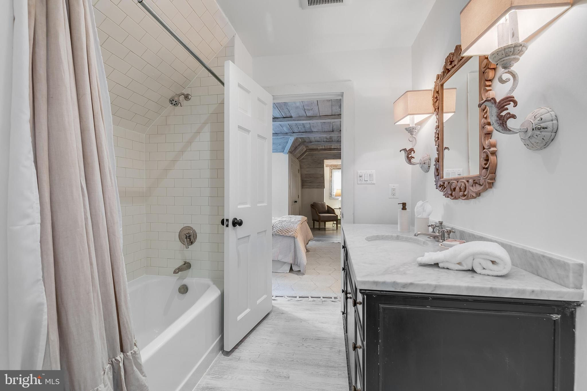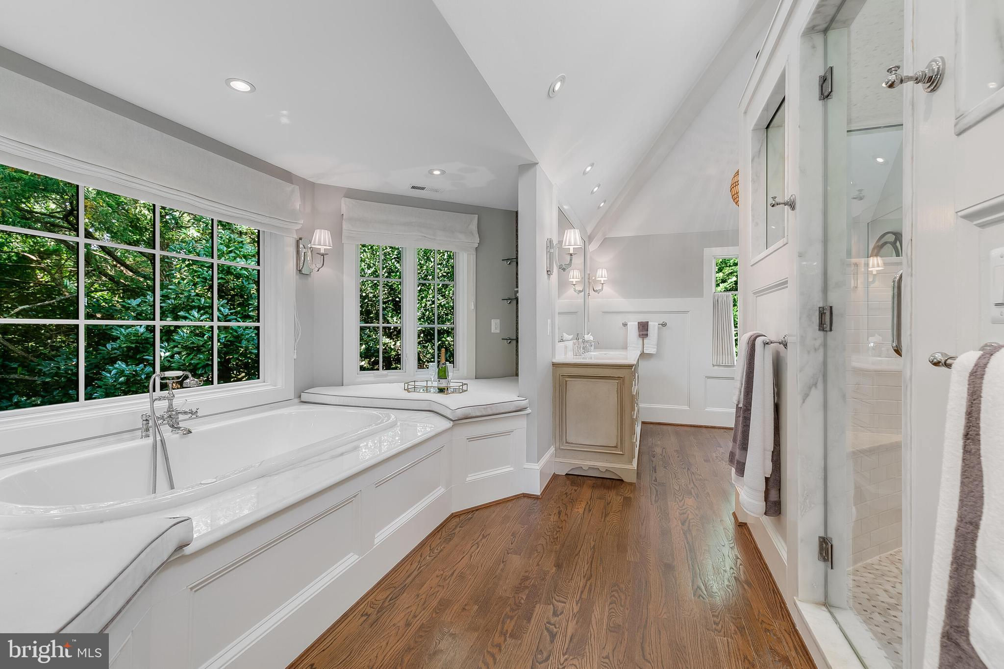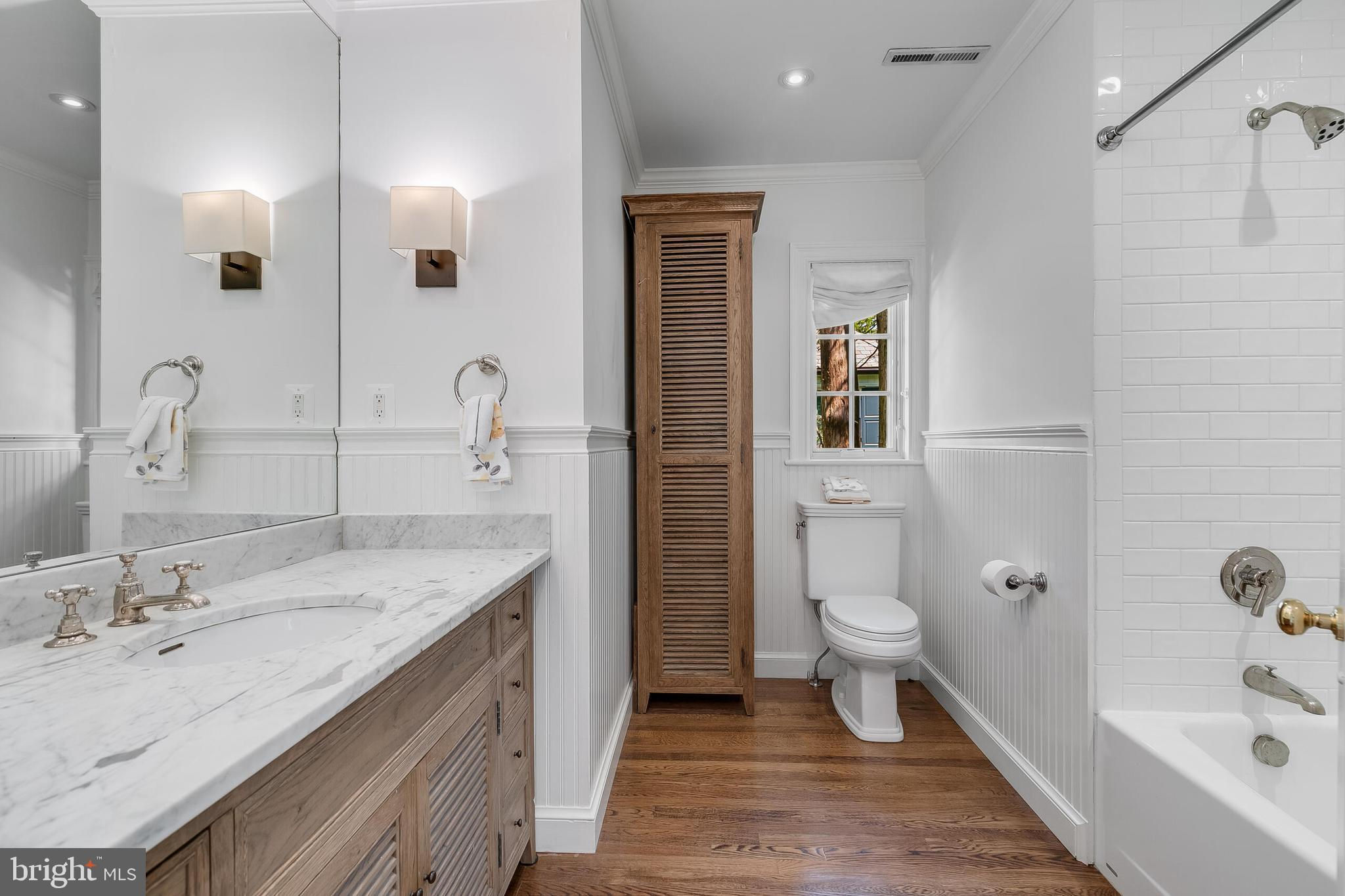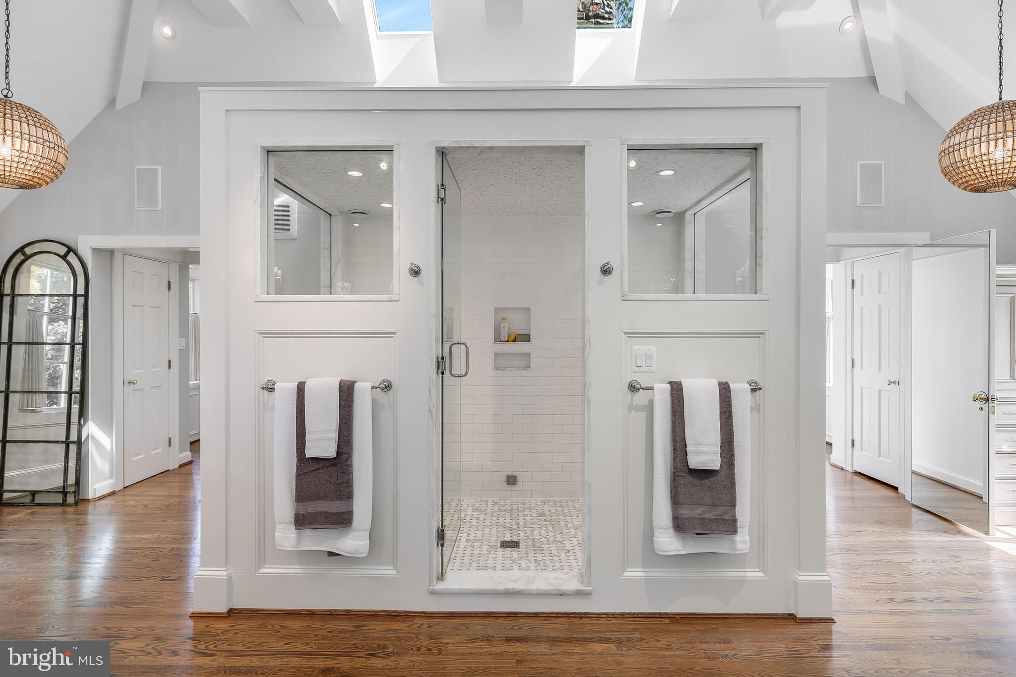 Nestled in the coveted Spring Valley neighborhood, this stately 1942 Tudor Revival has been thoughtfully renovated in 2023. The result is a seamless blend of historic character and modern sophistication—more than just a home, it’s a living work of art designed for elegant living and effortless entertaining. As you approach, the home’s iconic diamond-paned windows offer a glimpse into its rich architectural past. Step inside, and you’re immediately greeted by a harmonious fusion of classic craftsmanship and contemporary upgrades, elevating every space with purpose and grace. The main level sets a tone of understated grandeur, with soaring 9+ foot ceilings and sun-drenched spaces throughout. The formal living room, framed by oversized windows and anchored by a wood-burning fireplace, invites both quiet moments and lively gatherings. The newly reimagined kitchen—part of the 2023 renovation by renowned architect Dale Overmyer, with construction by John Cecchi—is a showpiece designed for connection, featuring premium finishes and a seamless flow into the family room and dining area, all exuding warmth and sophistication. The primary suite is a private sanctuary. With its own fireplace, dual walk-in and cedar closets, and a spa-inspired bath, it’s a retreat designed for true rejuvenation. The dual-sided bathroom is bathed in natural light from a skylight above the soaking tub and includes a private vanity and water closet. Upstairs, each of the six bedrooms has its own story. Three bedrooms include a Jack-and-Jill bath arrangement—perfect for family living—while another features a private en suite. The light-filled Parisian-style suite offers its own full bath and private feel, ideal for long-term guests, an au pair, or an artist’s retreat. The lower level is a world of its own, offering a flexible, self-contained living space with a private entrance, second kitchen, bedroom, recreation room, and two full baths. Whether used as an in-law suite, home gym, or creative studio, it’s designed to adapt to your lifestyle. Outside, the home becomes a private resort. French doors lead to a spacious deck with a built-in grill and tree-lined views, perfect for hosting or unwinding. The fully fenced, professionally landscaped yard features irrigation, landscape lighting, and a heated pool with a remote-controlled cover—ideal for summer swims or relaxing on quiet Sundays. A custom stone patio with a wood-burning fireplace provides the perfect backdrop for cozy evenings under the stars. Additional features include a billiard room/library, built-in Sonos sound system, separate audio/visual room, dual laundry facilities, two garages, and a Ring security system—all set on a generous .33-acre lot. Located in the sought-after Spring Valley community, this home offers the tranquility of suburban living with unmatched urban access. Enjoy brunch in the Palisades, short commutes to downtown DC or Tysons, and scenic walks through nearby parks and trails. This is more than a home—it’s a story of legacy and reinvention, where every room reflects thoughtful design, enduring elegance, and purposeful living.