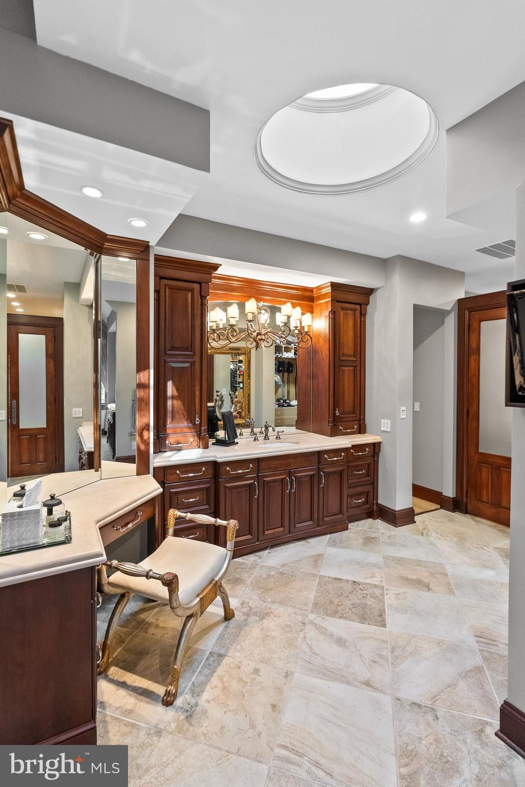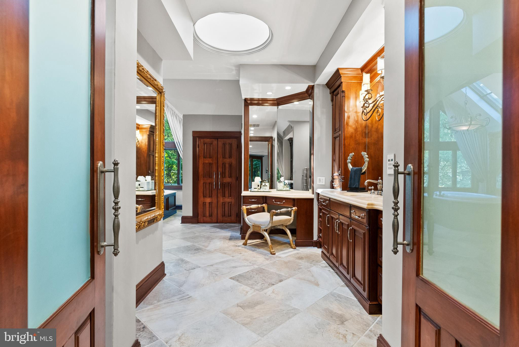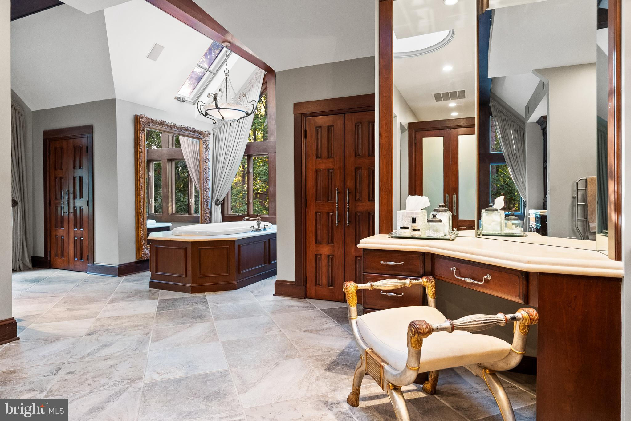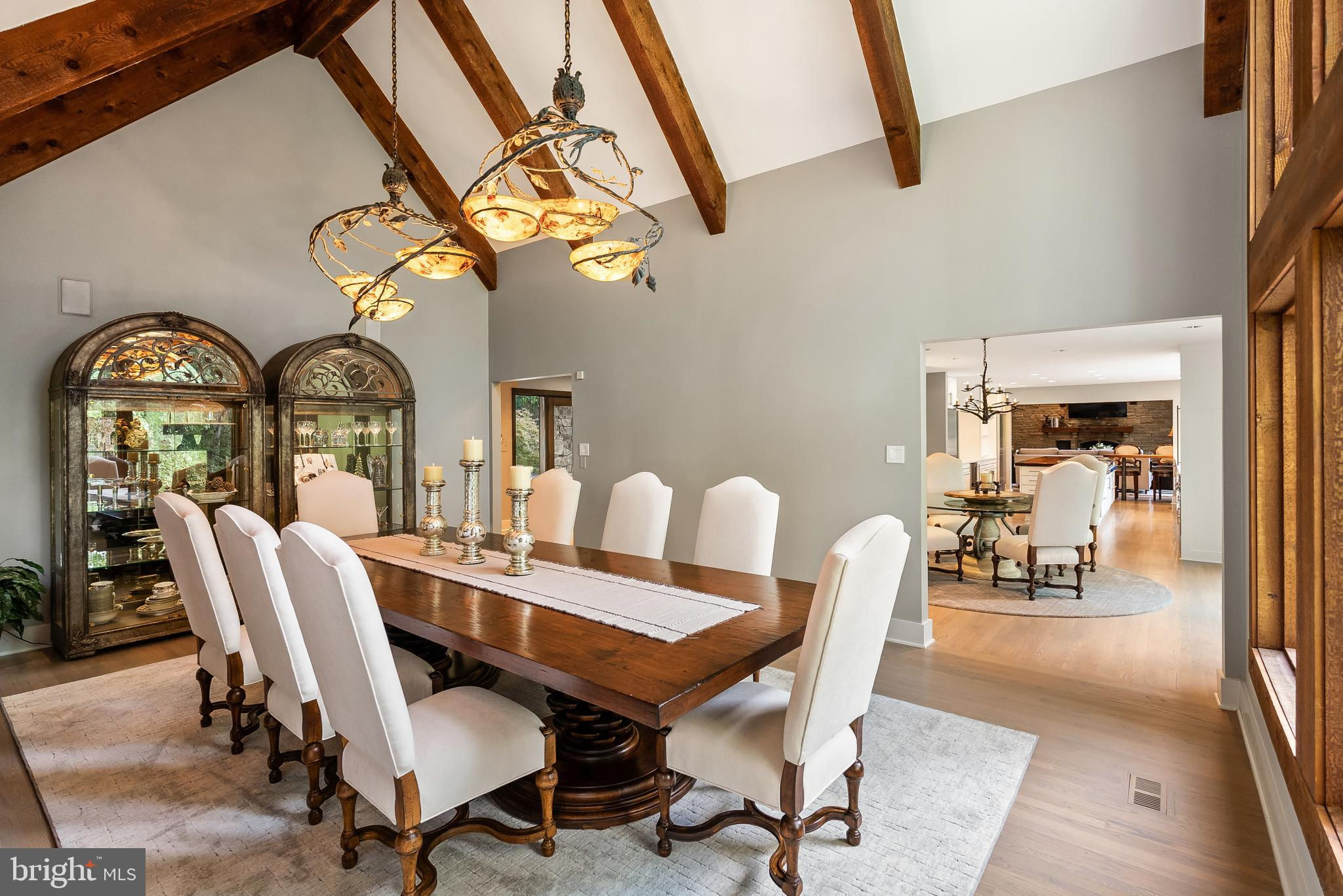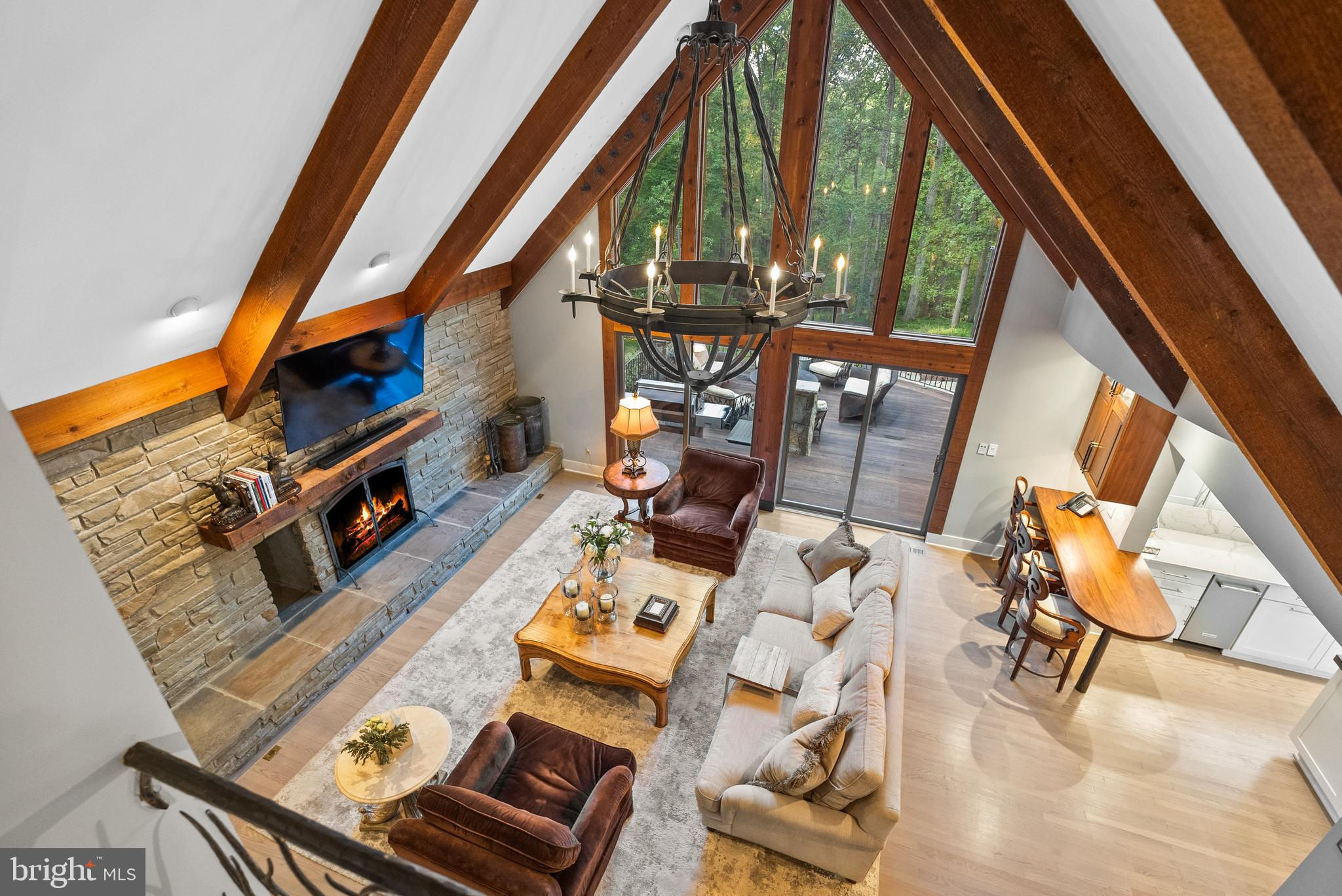 Welcome to the best of Aspen in Great Falls! Enter through the gates to a spectacular setting sited on 6 verdant acres and drive down the circular driveway to find a private resort with stack stone hardscape, lawn art and mature landscaping. Light-filled Grand Foyer. Hand-forged Cardine Studios custom iron railings, exposed wood beams and stone fireplaces throughout. Gourmet Kitchen with Thermador/SubZero appliances, spacious island, big picture window with scenic, wooded vistas and a balcony that overlooks a fabulous pool and pond. An adjacent morning room with stone terrace doubles as entertaining or study space. Expansive A-Frame family room with beams, fireplace, and multi-level deck access. Main level includes second Owner’s suite with luxe bath, Au-Pair/In-Law, luxurious laundry with stone accents, grand great room with fireplace and soaring ceilings. Upper level Owner’s suite features balcony, custom beverage center, two extra large walk-in closets and spa-like primary bath with heated floors, soaking tub and steam shower. Spiral staircase leads to rooftop sundeck with 360-degree views. Three additional Bedrooms with updated baths. Lower level offers multi-person office with conference area, wine tasting room, ventilated Cigar room, full Bath, IT room and workshop. Club level entertainment space with paneled Bolivian Rosewood includes game areas, professional bar, billiards, and Caterer’s kitchen. Gym with “environmental bed” with steam, sauna and sun lamp. Oversized heated 5-car garage with lift. Resort-like grounds feature infinity pool/spa, multi-level decks, slate patios, pickleball/sport court with basketball hoops and wooded seclusion.