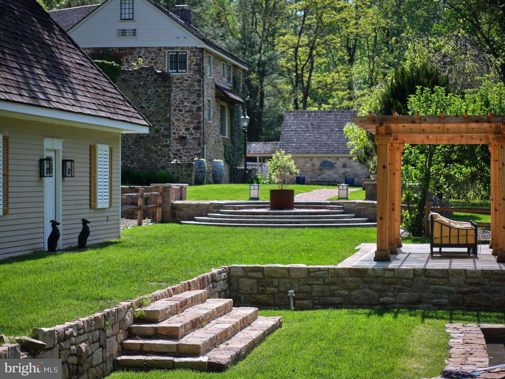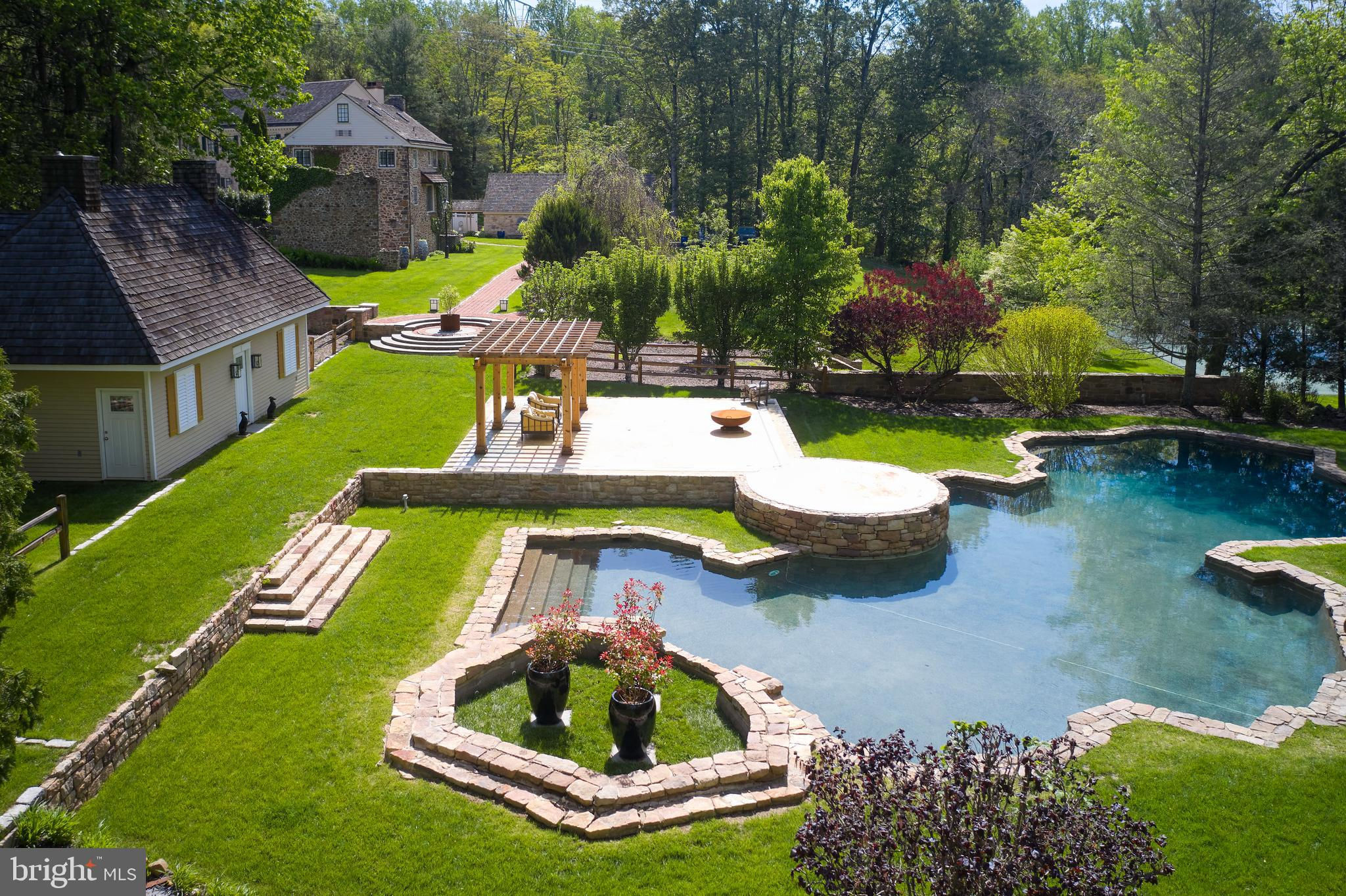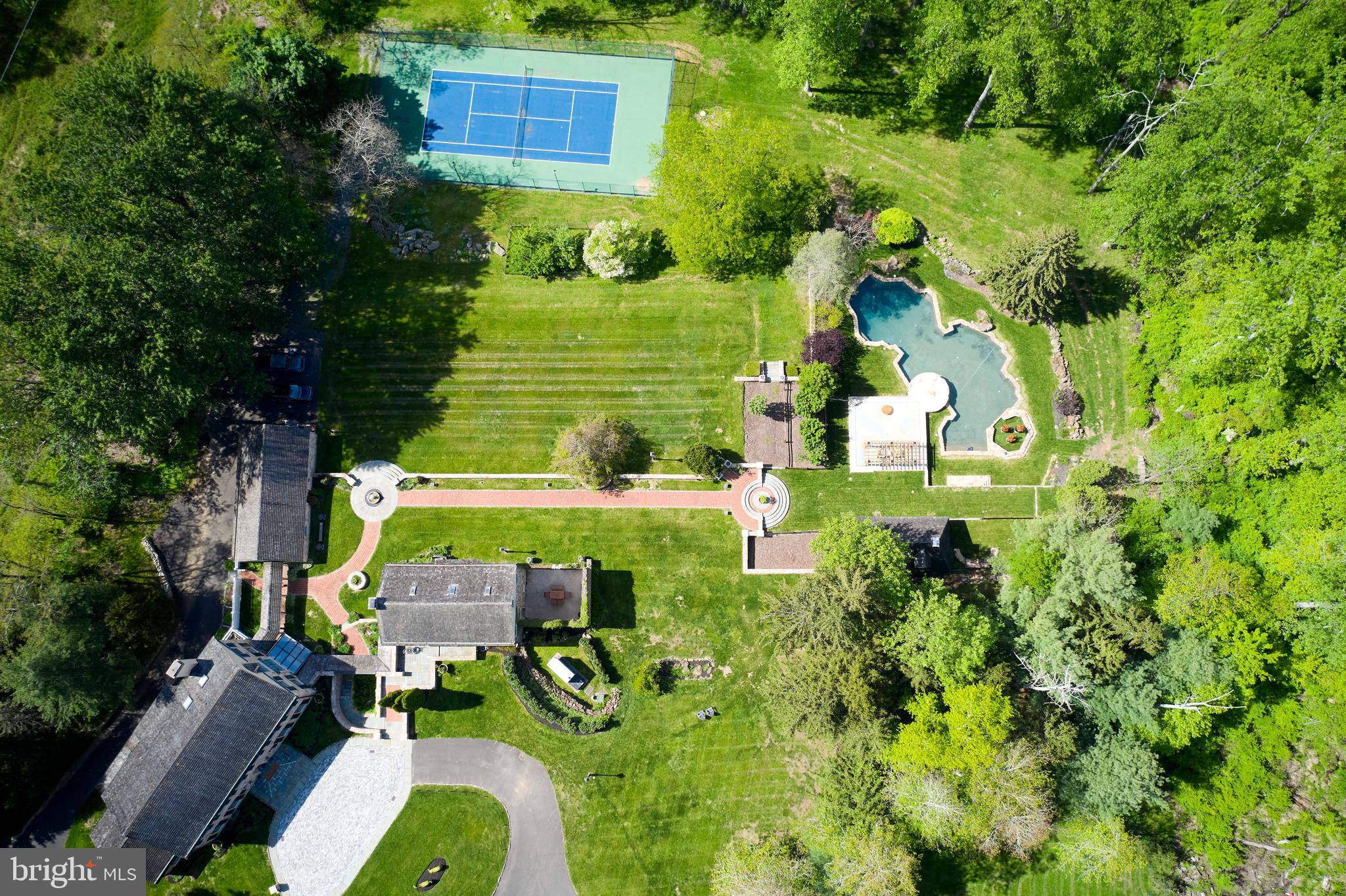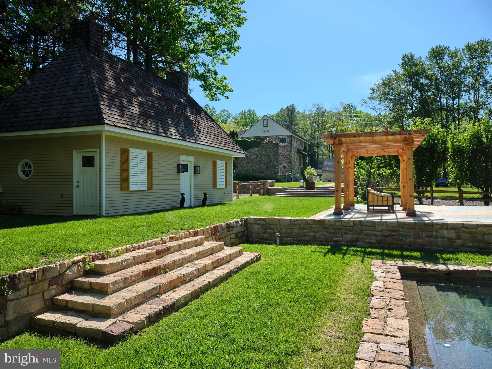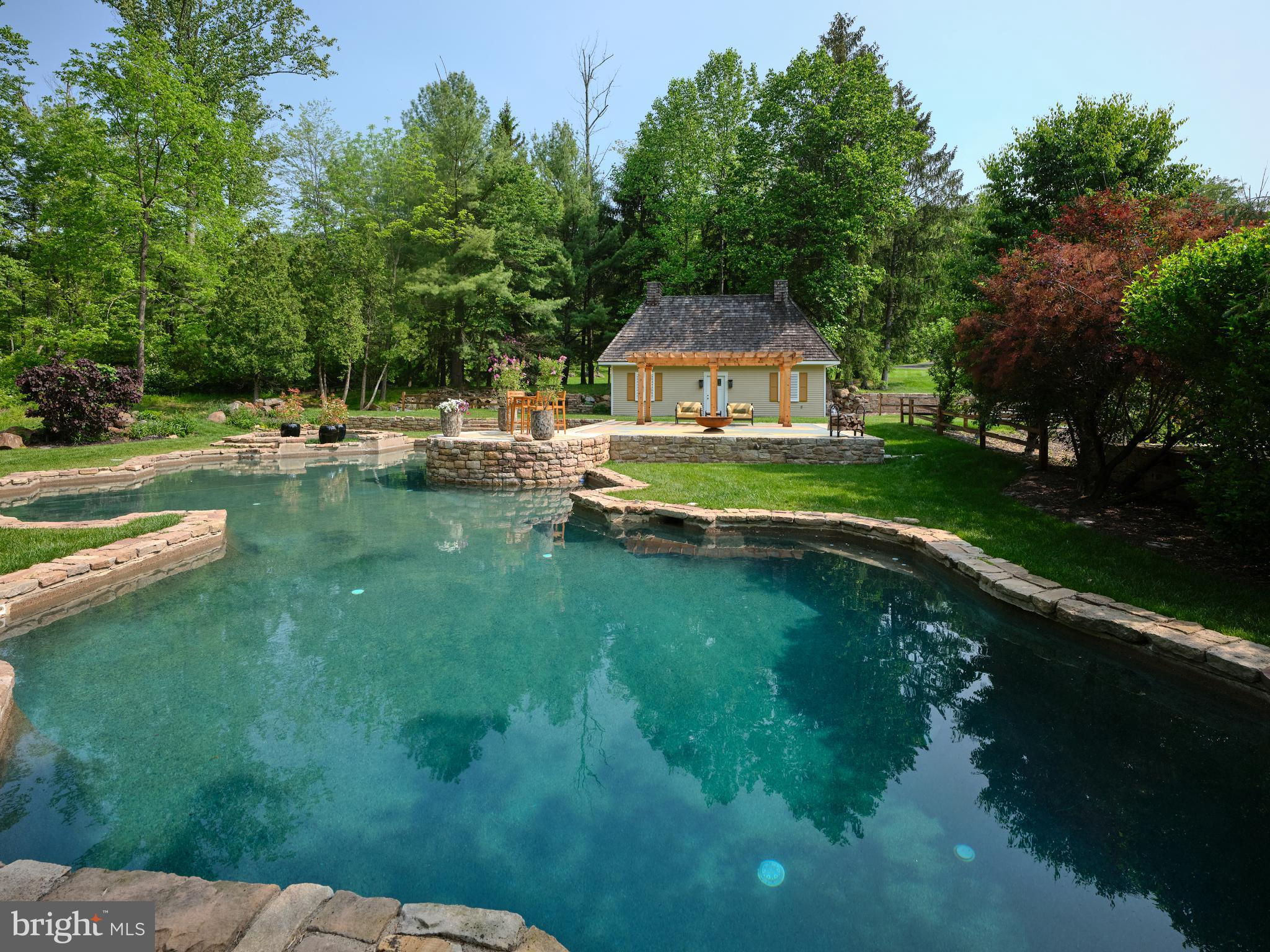 A long, private meandering drive delivers you to the newly renovated and reimagined Bramingham Estate,…arguably one of the more beautiful estate properties in Solebury. The commanding stone manor house sits prominently in the foreground and is flanked by an equally stately 5 bedroom/4 bathroom stone guest house. As you enter the main entrance, a grand foyer greets you with outstanding millwork in all directions. To the right is the presidential salon…a formal living room with portraits of American presidents, stately chandelier and antique fireplace. On the opposite side of this home is the morning room with built-in coffee station and an informality perfect for gatherings. The ceiling is an architectural feat of beauty and this magnificent room could be an impressive dining room, if you choose. The adjacent room is far beyond an ordinary chef’s kitchen-beautiful woodworking throughout, large granite counter space, high-end appliances and even a La Cornue wall mounted rotisserie, makes this beyond most high-end kitchens. This light-filled space is inviting to all chef’s and want to be chefs. Off of the hall, is an inviting office space that can serve as T.V. room or library. A beautifully constructed staircase leads to the primary en suite and two other bedrooms. The lower level boasts a studio space or activity room and a full bath, greenhouse and murphy bed. This level also contains a laundry room, wine cellar, sauna and mechanicals. The very special guest house has the feel of a lodge with open space on the first level and 5 bedrooms, 4 bathrooms and a newly refurbished kitchen. The fireplace adds the extra charm that your family or guests will cherish. The grounds have been impeccably maintained with lush lawns, specimen plantings, stone walks, sculpture, large planters, fountain and stone ruins for al fresco dining. The brick paths lead to the spa-like crystal clean concrete pool. The large patio space encourages outdoor entertaining. The pool house contains his and her changing rooms and baths, a full caretaker or Au Pair suite and rough plumbing exists for a pool kitchen or caretaker’s kitchen. The 11 acre property also has a game ready tennis court and a bucolic pond. Bramingham is a property that offers the privacy one rarely finds today and the evolution and design of structures and natural settings that grow organically from each other. The property is protected by a state of the art security system. Note: The size of the Manor Home is 5,175.80 sq. ft. The Guest Cottage is 2,190 Sq. ft. and the pool house is 831.1 square feet. Perfect Family Compound. Must have Buyer financials prior to showing, 48 Hours notice required for all showings. ***Property is being sold "As-Is.” Buyers are encouraged to do all inspections and financing prior to making an offer. Note: The size of the Manor Home is 5,175.80 sq. ft. The Guest Cottage is 2,190 Sq. ft. and the pool house is 831.1 square feet.