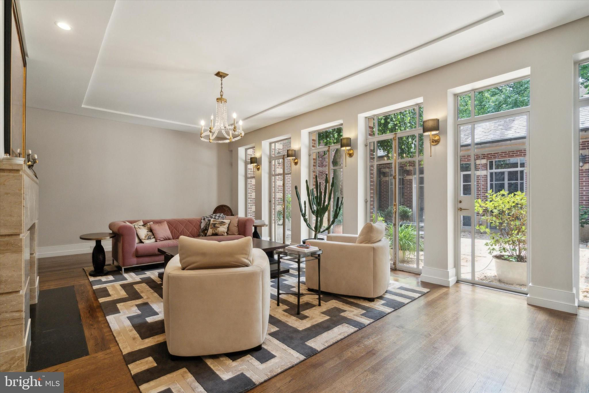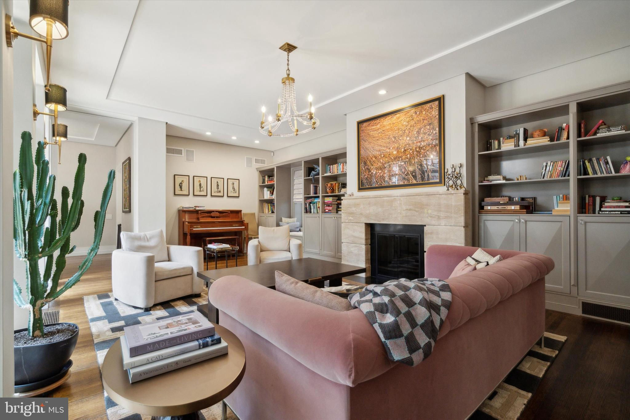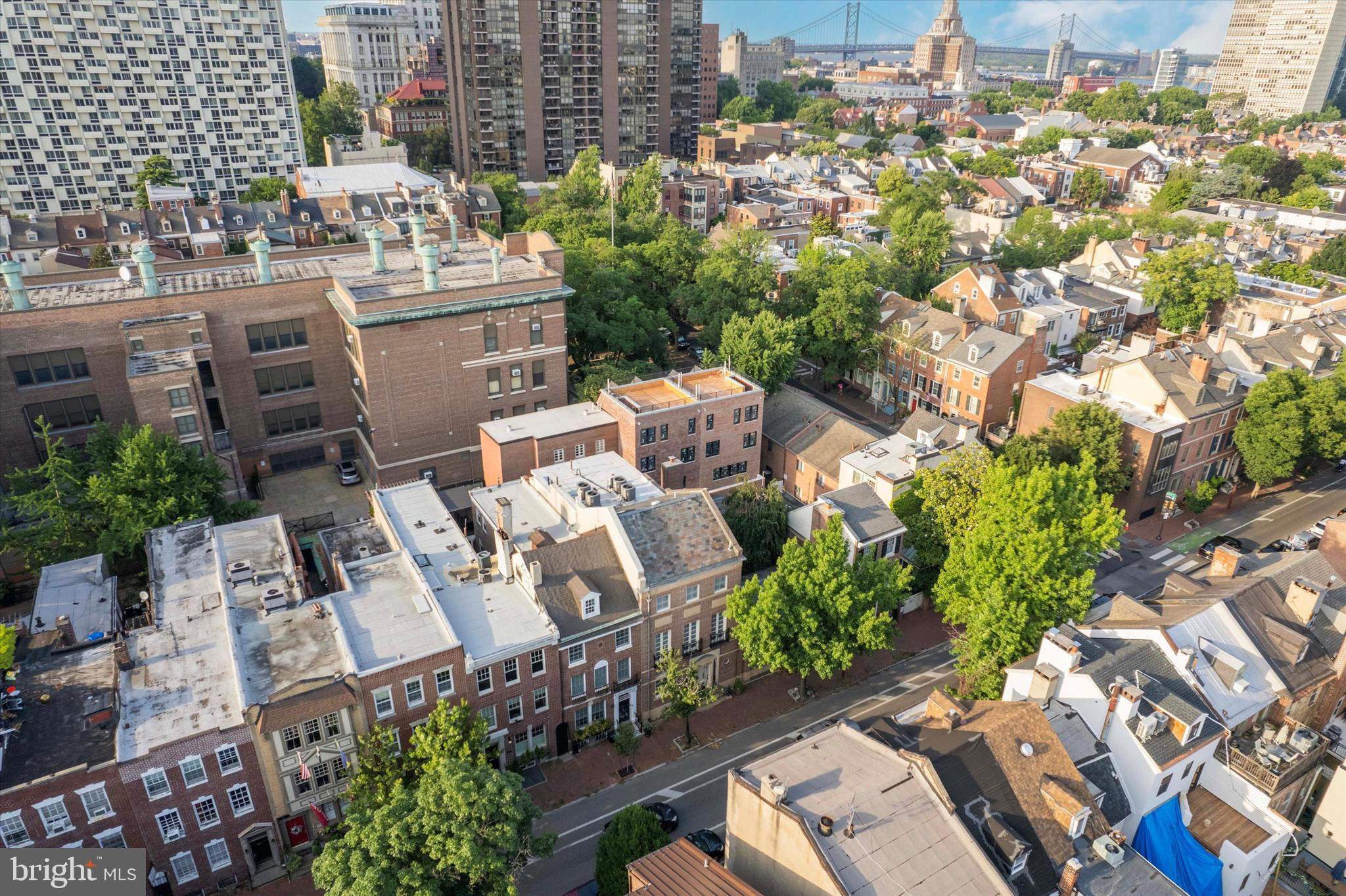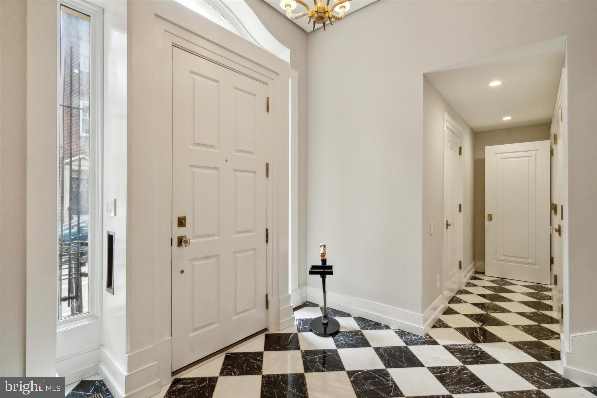 Step into luxury with this stunning 6 bed, 6.5 bath home located in the prestigious Society Hill neighborhood. Situated on an expansive 58x100ft lot, this property offers covered 2-car parking, 2 outdoor spaces, and a newly constructed carriage house with 1 bedroom, 1.5 bathrooms, and 2 elevators, one in each home. The primary home has undergone a meticulous renovation, with brand new mechanicals, a modern kitchen, updated bathrooms, refinished flooring, new lighting, and custom molding throughout. Upon entry, you'll be greeted by a grand foyer featuring marble checkered floors and a convenient half bath. The foyer opens to an impressive spiral staircase and chandelier. To the right find the living room with an ornate wood-burning fireplace, a built-in custom mahogany bar with seating, and a Sub Zero wine fridge. Natural light floods the space from the south-facing windows and a full wall of windows that overlook the private center courtyard. Moving through the home, you'll discover a formal dining room with plenty of space to host and a library with custom built-ins complete with a second wood-burning fireplace. The eat-in kitchen is a chef's dream, boasting top-of-the-line appliances, soft-close walnut cabinetry, quartzite countertops, and a walk-in pantry. The kitchen seamlessly flows out to a meticulously landscaped patio, perfect for entertaining, as well as a 2-car covered garage that leads to the carriage house. Ascending the spiral staircase to the second level, you'll find an open sitting area, and sun-soaked bedroom with French door Juliet balconies and an en-suite bath. The primary bedroom offers a balcony overlooking the courtyard, two walk-in closets both with custom cabinetry, and a luxurious en-suite bath with tiled floors and a fully tiled steam shower. The third level features additional bedrooms, each with its own en-suite bath and generous storage. The lower level is complete with a laundry room, playroom, sauna, wine cellar, and a guest suite with a full bathroom. Primary bathroom and all 3rd floor bathrooms feature radiant floor heating and washlet toilet seats. At the rear of the property, the carriage house offers a private retreat with convenient access from the back. As you enter from the ground level and take the stairs or the elevator, you'll discover an inviting open concept living space. Step into the brand new kitchen with stone countertops, bar seating, and ample cabinetry with soft-close features. The kitchen is equipped with a paneled Sub Zero fridge, a paneled Bosch dishwasher, and a Miele range and oven. Ascending the stairs, you'll find a walk-in closet for storage and a well-appointed bedroom with an additional spacious walk-in closet. A hallway with built-ins adds to the convenience and organization of the space. The bedroom boasts an ensuite bath featuring a porcelain tiled shower and floors, a rain shower head, and a linen closet. This carriage house epitomizes modern comfort and sophistication in the heart of the city!