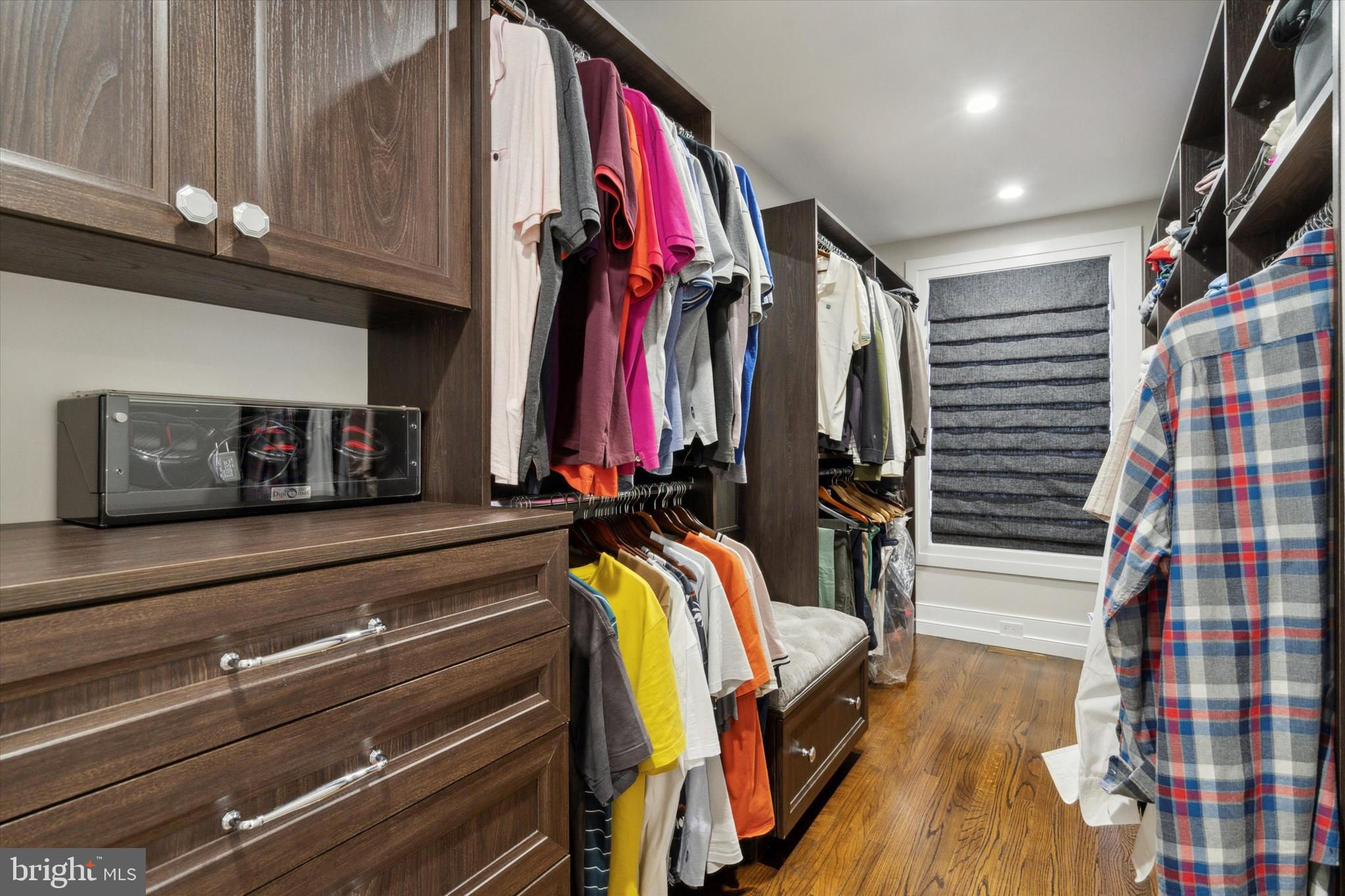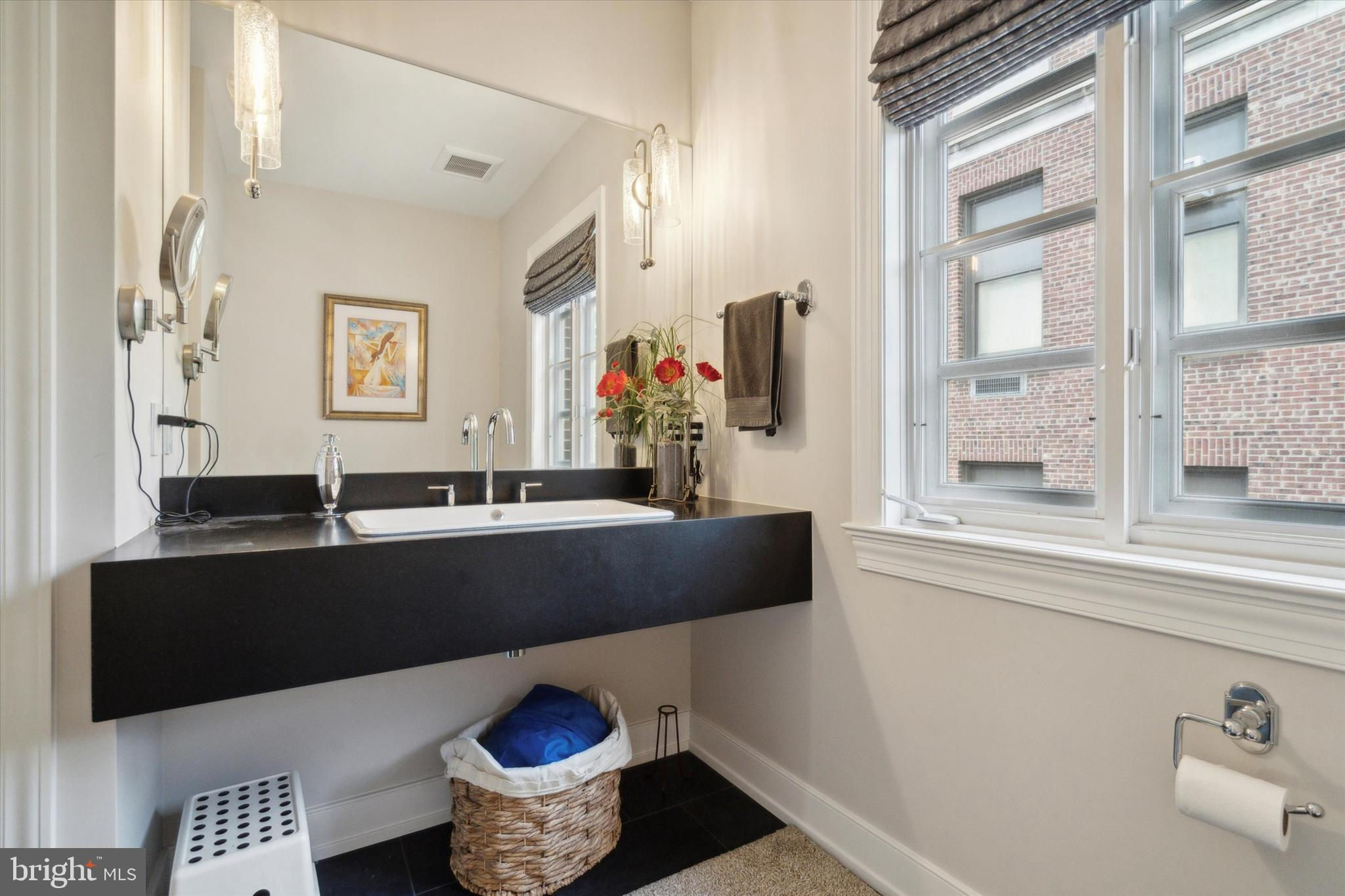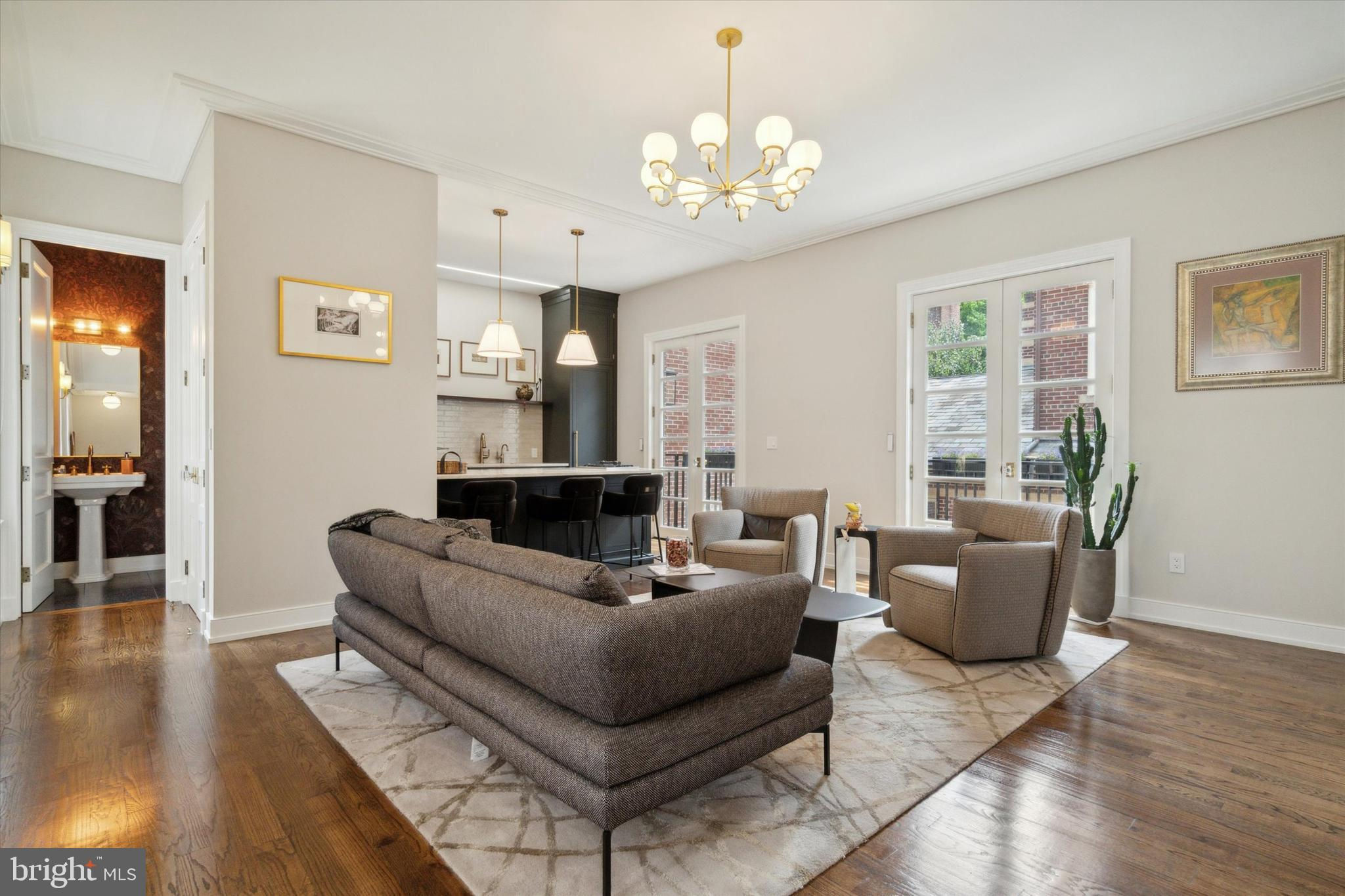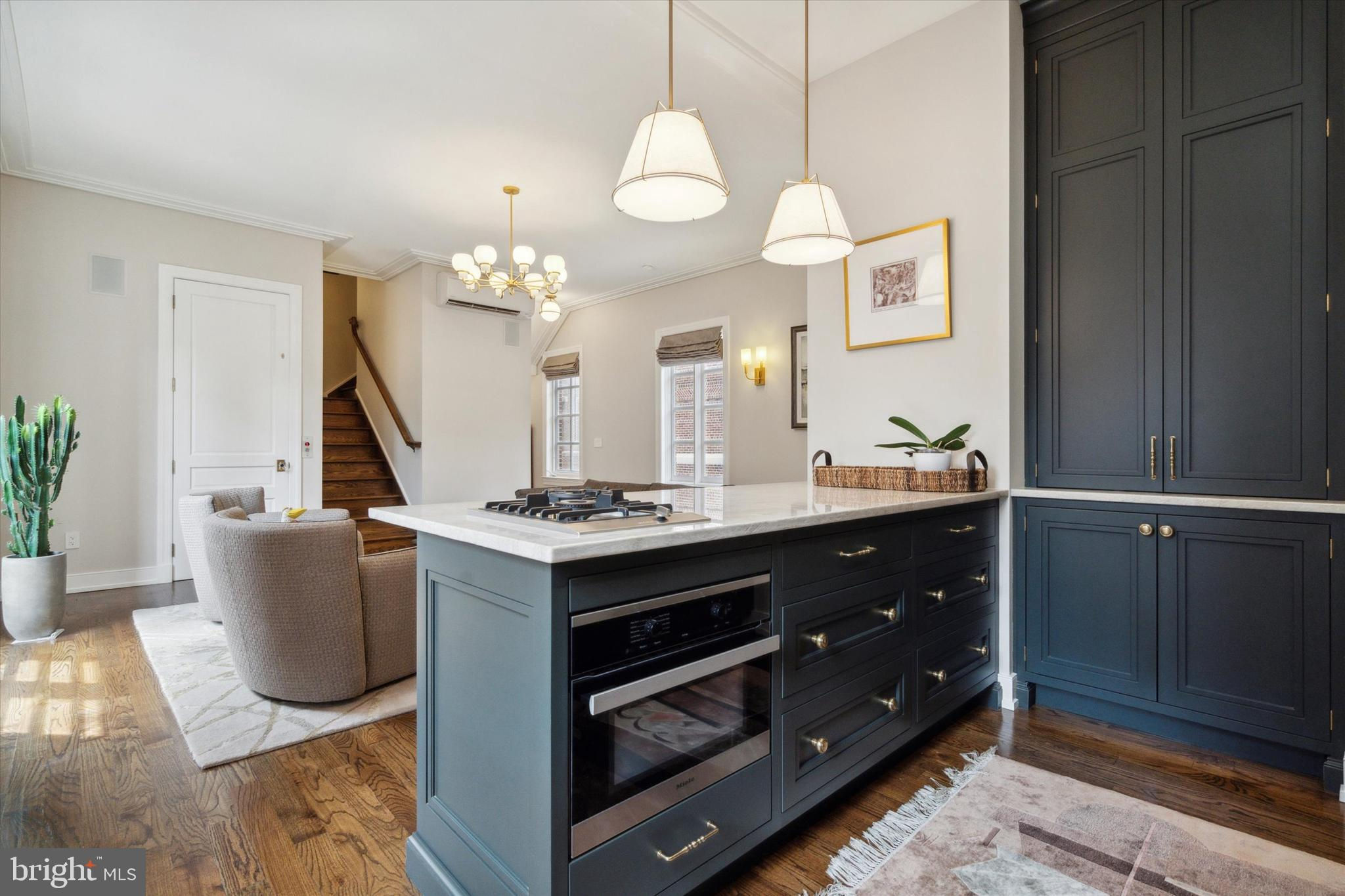 Step into luxury with this stunning 6 bed, 6.5 bath home located in the prestigious Society Hill neighborhood. Situated on an expansive 58x100ft lot, this property offers covered 2-car parking, 2 outdoor spaces, and a newly constructed carriage house with 1 bedroom, 1.5 bathrooms, and 2 elevators, one in each home. The primary home has undergone a meticulous renovation, with brand new mechanicals, a modern kitchen, updated bathrooms, refinished flooring, new lighting, and custom molding throughout. Upon entry, you'll be greeted by a grand foyer featuring marble checkered floors and a convenient half bath. The foyer opens to an impressive spiral staircase and chandelier. To the right find the living room with an ornate wood-burning fireplace, a built-in custom mahogany bar with seating, and a Sub Zero wine fridge. Natural light floods the space from the south-facing windows and a full wall of windows that overlook the private center courtyard. Moving through the home, you'll discover a formal dining room with plenty of space to host and a library with custom built-ins complete with a second wood-burning fireplace. The eat-in kitchen is a chef's dream, boasting top-of-the-line appliances, soft-close walnut cabinetry, quartzite countertops, and a walk-in pantry. The kitchen seamlessly flows out to a meticulously landscaped patio, perfect for entertaining, as well as a 2-car covered garage that leads to the carriage house. Ascending the spiral staircase to the second level, you'll find an open sitting area, and sun-soaked bedroom with French door Juliet balconies and an en-suite bath. The primary bedroom offers a balcony overlooking the courtyard, two walk-in closets both with custom cabinetry, and a luxurious en-suite bath with tiled floors and a fully tiled steam shower. The third level features additional bedrooms, each with its own en-suite bath and generous storage. The lower level is complete with a laundry room, playroom, sauna, wine cellar, and a guest suite with a full bathroom. Primary bathroom and all 3rd floor bathrooms feature radiant floor heating and washlet toilet seats. At the rear of the property, the carriage house offers a private retreat with convenient access from the back. As you enter from the ground level and take the stairs or the elevator, you'll discover an inviting open concept living space. Step into the brand new kitchen with stone countertops, bar seating, and ample cabinetry with soft-close features. The kitchen is equipped with a paneled Sub Zero fridge, a paneled Bosch dishwasher, and a Miele range and oven. Ascending the stairs, you'll find a walk-in closet for storage and a well-appointed bedroom with an additional spacious walk-in closet. A hallway with built-ins adds to the convenience and organization of the space. The bedroom boasts an ensuite bath featuring a porcelain tiled shower and floors, a rain shower head, and a linen closet. This carriage house epitomizes modern comfort and sophistication in the heart of the city!
