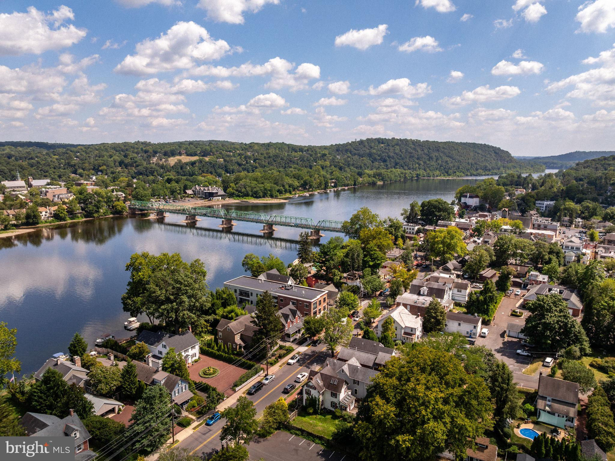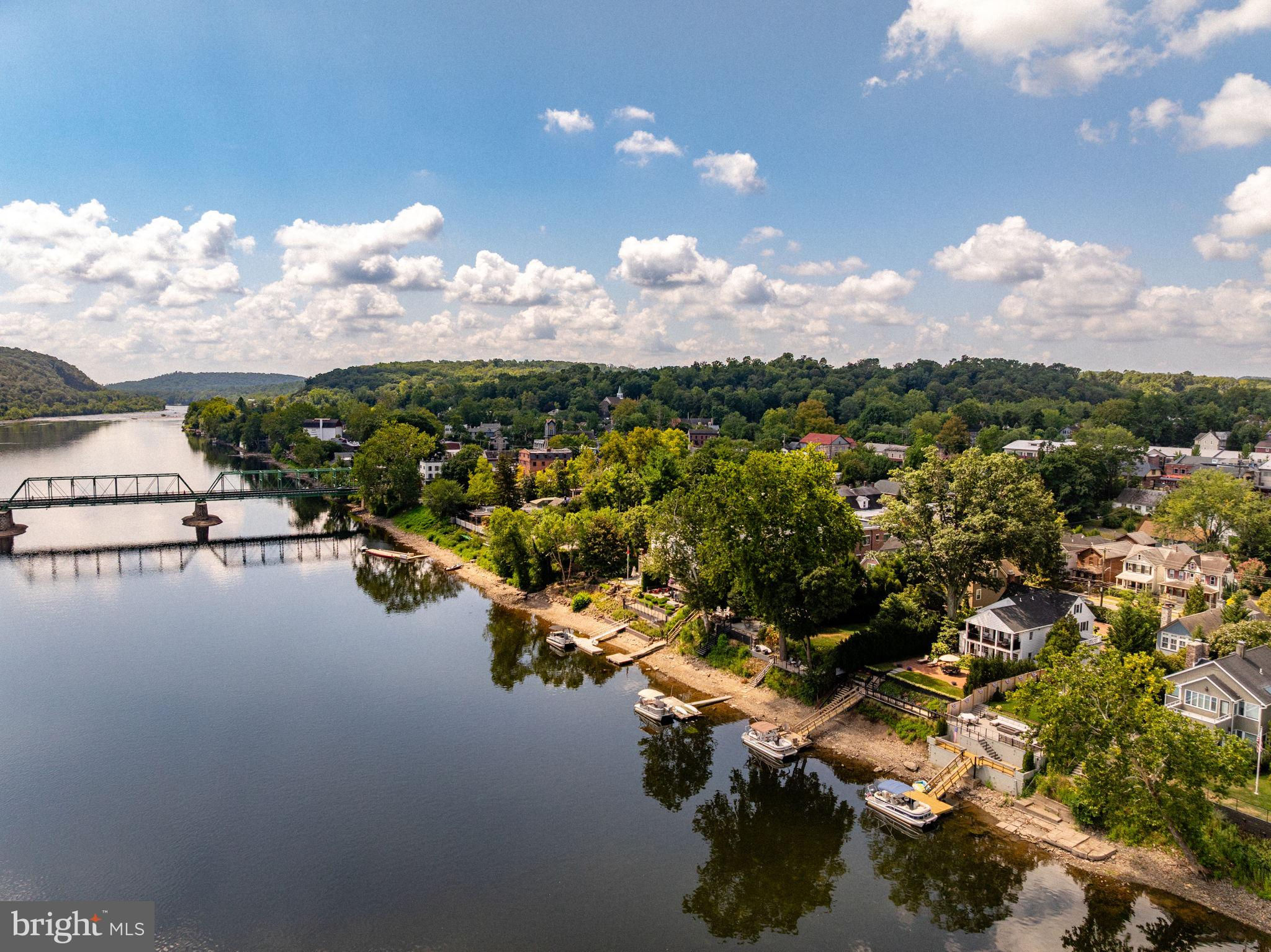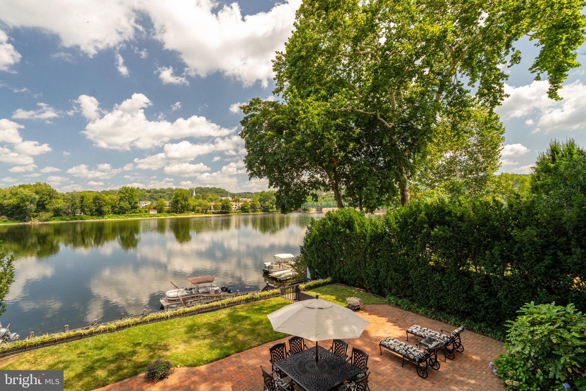 Welcome to 64 N Main Street, an ultra luxury waterfront estate, privately nested on the Delaware River in New Hope, Pennsylvania. This is a rare opportunity to own a world class waterfront estate in the heart of New Hope. This residence combines timeless craftsmanship, modern sophistication, and the serenity of the Delaware River. With four bedrooms, 3.5 baths, an office, and over 3300 square feet of living space this, exquisite residence offers a lifestyle of unmatched refinement, complete with the private boat dock for effortless riverfront living. Step inside to discover interiors adorned with hardwood floors, custom moldings, and Wainscoting, blending classic architecture with contemporary design. Every detail is intentional with custom lighting, motorized shades with designer drapery, and built-ins that add both elegance and function. The living room offers warmth and grandeur, with a fireplace flanked by bespoke built-ins. An eye-catching mantle creates a truly warm gathering space. A dedicated office with custom cabinetry and built-ins provides a refined and productive environment perfect for today's lifestyle. A gourmet chef’s kitchen is anchored with a 48-inch Wolf dual fuel range and Sub-Zero refrigerator with handcrafted natural colored mahogany cabinetry, soapstone countertops, and a hand carved sink. Open and inviting, the kitchen flows seamlessly into a sunlit dining and entertaining space with expansive windows framing uninterrupted shimmering river view. Let us not forget the butler’s pantry which includes a wet bar, and another subzero refrigerator adorned with Mercer tiles. The family room is inviting, light filled and perfect for entertaining as it flows seamlessly from the dining and formal living areas (not to mention the breathtaking views of the Delaware river). Travel outdoors to the impressive, covered porch and patio with lush gardens and pathway to the panoramic bar and dock. On the second floor, the primary suite is a retreat of rare indulgence featuring cathedral ceilings, a private balcony overlooking the Delaware, a morning coffee bar and a boutique style dressing room with make-up station. The spa inspired bath is finished in Calcutta gold marble, a stone jetted soaking tub, custom stone inclined double sinks, and Robern Uplift Medicine cabinets. A Brizo sensory shower system rivals the finest resorts. Two additional charming bedrooms, a full bathroom, and a private bedroom suite with a full bathroom complete the second level sanctuary. Multiple terraces and private covered patio garden retreat create a tranquil space for both entertaining and peaceful reflection. Landscaped pathways lead to a private dock offering direct access to the river for boating, kayaking, paddle boarding or sunset cruises. This property is more than a home, it is a statement of elegance, privilege and lifestyle, offering unrivaled riverfront living just moments from boutiques, galleries and fine dining of New Hope and Lambertville.