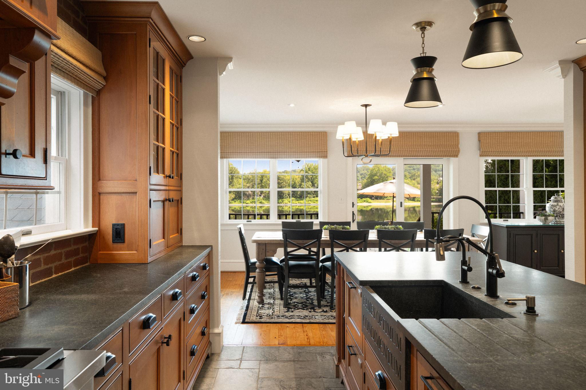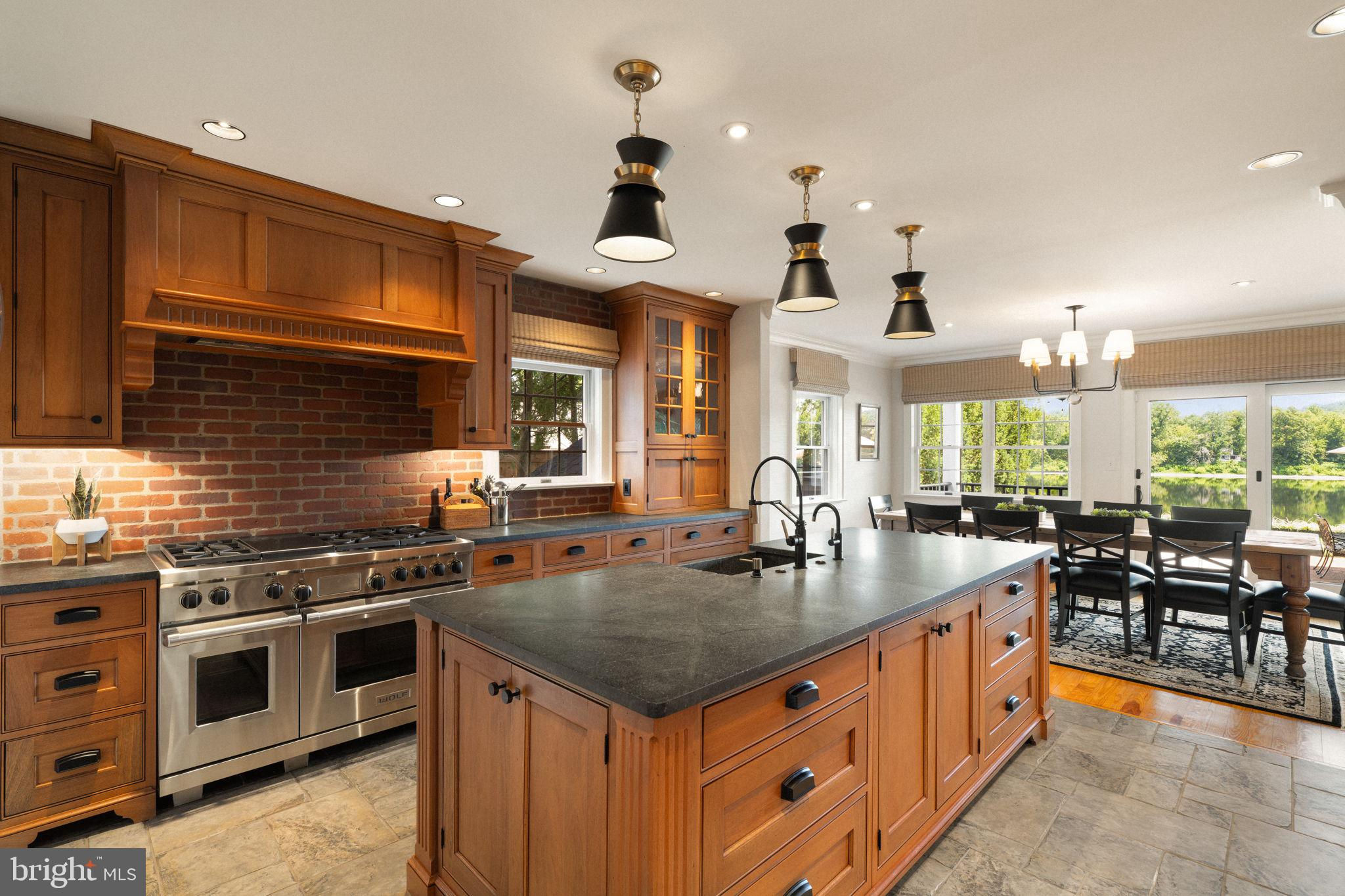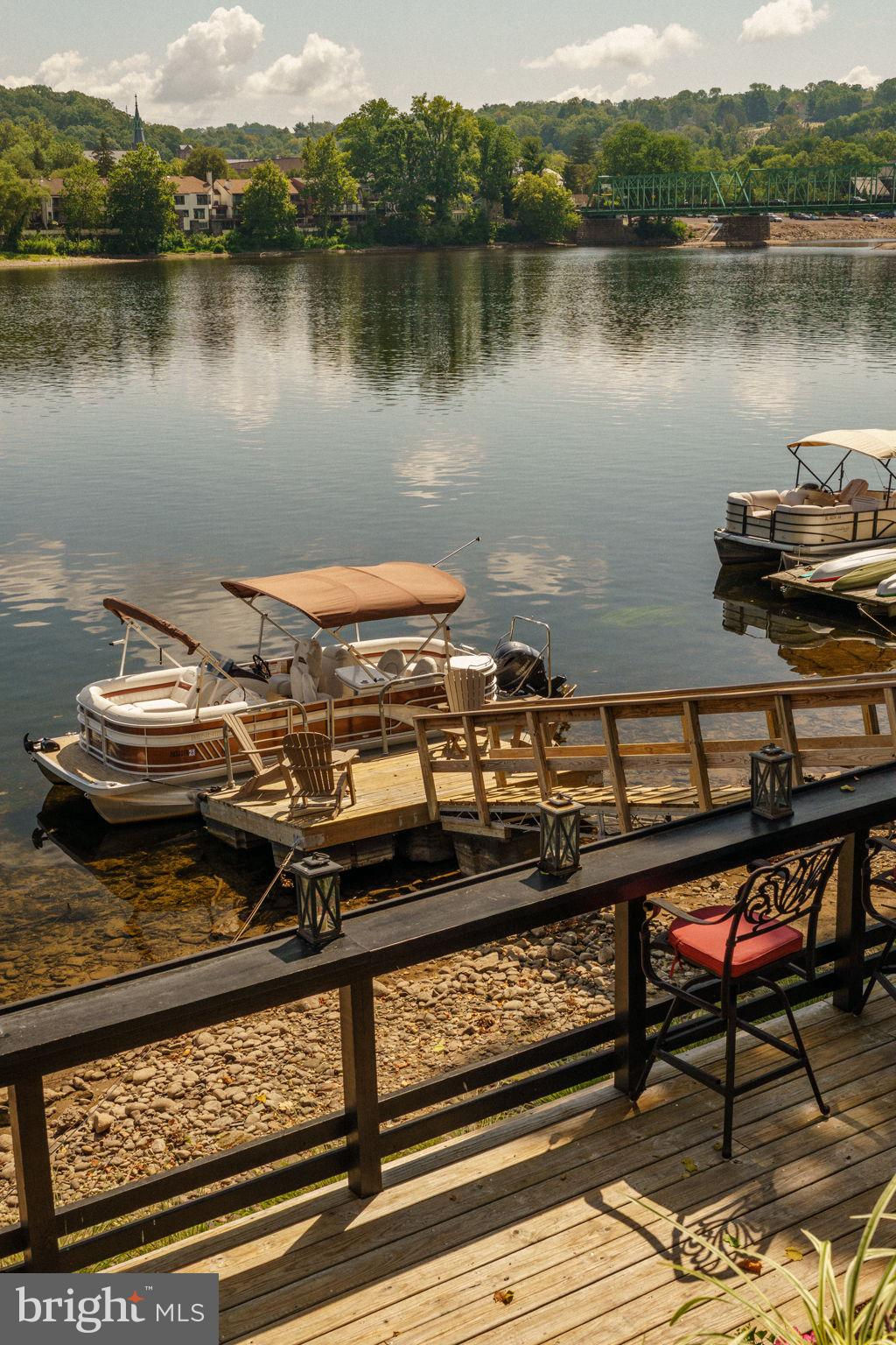 Welcome to 64 N Main Street, an ultra luxury waterfront estate, privately nested on the Delaware River in New Hope, Pennsylvania. This is a rare opportunity to own a world class waterfront estate in the heart of New Hope. This residence combines timeless craftsmanship, modern sophistication, and the serenity of the Delaware River. With four bedrooms, 3.5 baths, an office, and over 3300 square feet of living space this, exquisite residence offers a lifestyle of unmatched refinement, complete with the private boat dock for effortless riverfront living. Step inside to discover interiors adorned with hardwood floors, custom moldings, and Wainscoting, blending classic architecture with contemporary design. Every detail is intentional with custom lighting, motorized shades with designer drapery, and built-ins that add both elegance and function. The living room offers warmth and grandeur, with a fireplace flanked by bespoke built-ins. An eye-catching mantle creates a truly warm gathering space. A dedicated office with custom cabinetry and built-ins provides a refined and productive environment perfect for today's lifestyle. A gourmet chef’s kitchen is anchored with a 48-inch Wolf dual fuel range and Sub-Zero refrigerator with handcrafted natural colored mahogany cabinetry, soapstone countertops, and a hand carved sink. Open and inviting, the kitchen flows seamlessly into a sunlit dining and entertaining space with expansive windows framing uninterrupted shimmering river view. Let us not forget the butler’s pantry which includes a wet bar, and another subzero refrigerator adorned with Mercer tiles. The family room is inviting, light filled and perfect for entertaining as it flows seamlessly from the dining and formal living areas (not to mention the breathtaking views of the Delaware river). Travel outdoors to the impressive, covered porch and patio with lush gardens and pathway to the panoramic bar and dock. On the second floor, the primary suite is a retreat of rare indulgence featuring cathedral ceilings, a private balcony overlooking the Delaware, a morning coffee bar and a boutique style dressing room with make-up station. The spa inspired bath is finished in Calcutta gold marble, a stone jetted soaking tub, custom stone inclined double sinks, and Robern Uplift Medicine cabinets. A Brizo sensory shower system rivals the finest resorts. Two additional charming bedrooms, a full bathroom, and a private bedroom suite with a full bathroom complete the second level sanctuary. Multiple terraces and private covered patio garden retreat create a tranquil space for both entertaining and peaceful reflection. Landscaped pathways lead to a private dock offering direct access to the river for boating, kayaking, paddle boarding or sunset cruises. This property is more than a home, it is a statement of elegance, privilege and lifestyle, offering unrivaled riverfront living just moments from boutiques, galleries and fine dining of New Hope and Lambertville.