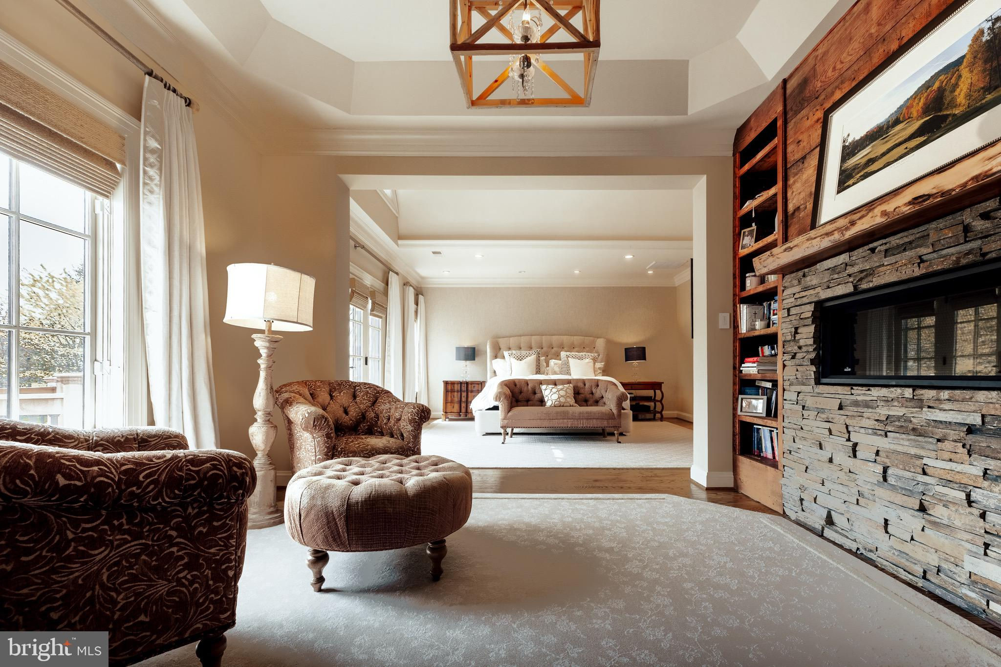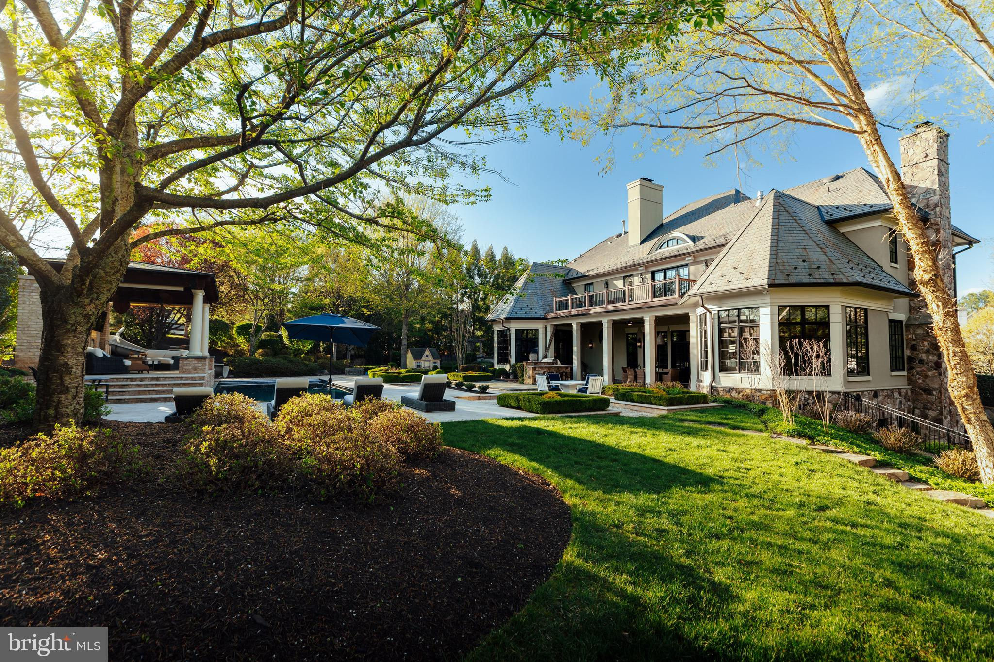 644 Deerfield Farm Court is a classically refined Great Falls oasis, meticulously reimagined with sophisticated craftsmanship and timeless elegance. Just under two acres with walkability to the Great Falls Village, that is hard to beat! Privately positioned on a tranquil cul de sac near Great Falls Village and River Bend Country Club, the home features over $2,000,000 in upgrades... handcrafted steel gates that open into your circular driveway, manicured landscaping, stucco and stone siding, copper gutters, and a slate roof. The resort style backyard showcases a saltwater pool, elevated veranda with portico, firepit, hot tub, and lush gardens of cherry blossoms and hydrangeas. Inside, grand double doors open to 9,000 sq. ft. of luxurious living. The chefs kitchen boasts custom cabinetry, marble countertops, SubZero and Wolf appliances, and a 7-ft wine refrigerator. Formal and family rooms with fireplaces flow seamlessly outdoors, while the sunroom doubles as a world class office. The upper level hosts a primary suite with a private balcony, sitting room, dual sided fireplace, walk in closets, and spa bath, plus 3 additional ensuite bedrooms and laundry. The lower level offers a custom mahogany bar, wine cellar with 200 year old refurbished door, media and game areas, gym, and guest suite (5th bedroom). Just blocks from Great Falls Elementary and a short walk to the Village Centre, this residence blends architectural mastery, resort-style amenities, and a premier location—redefining luxury living in Great Falls. Welcome home!
