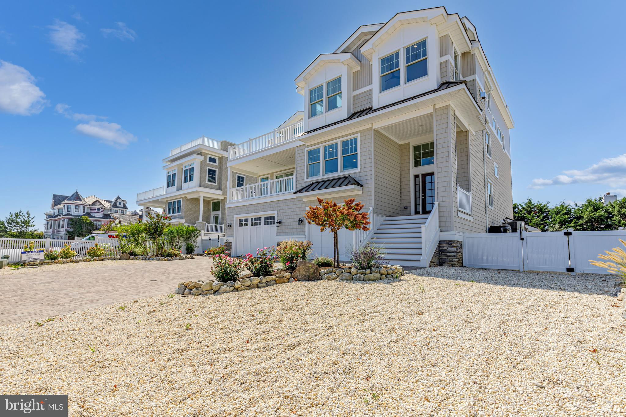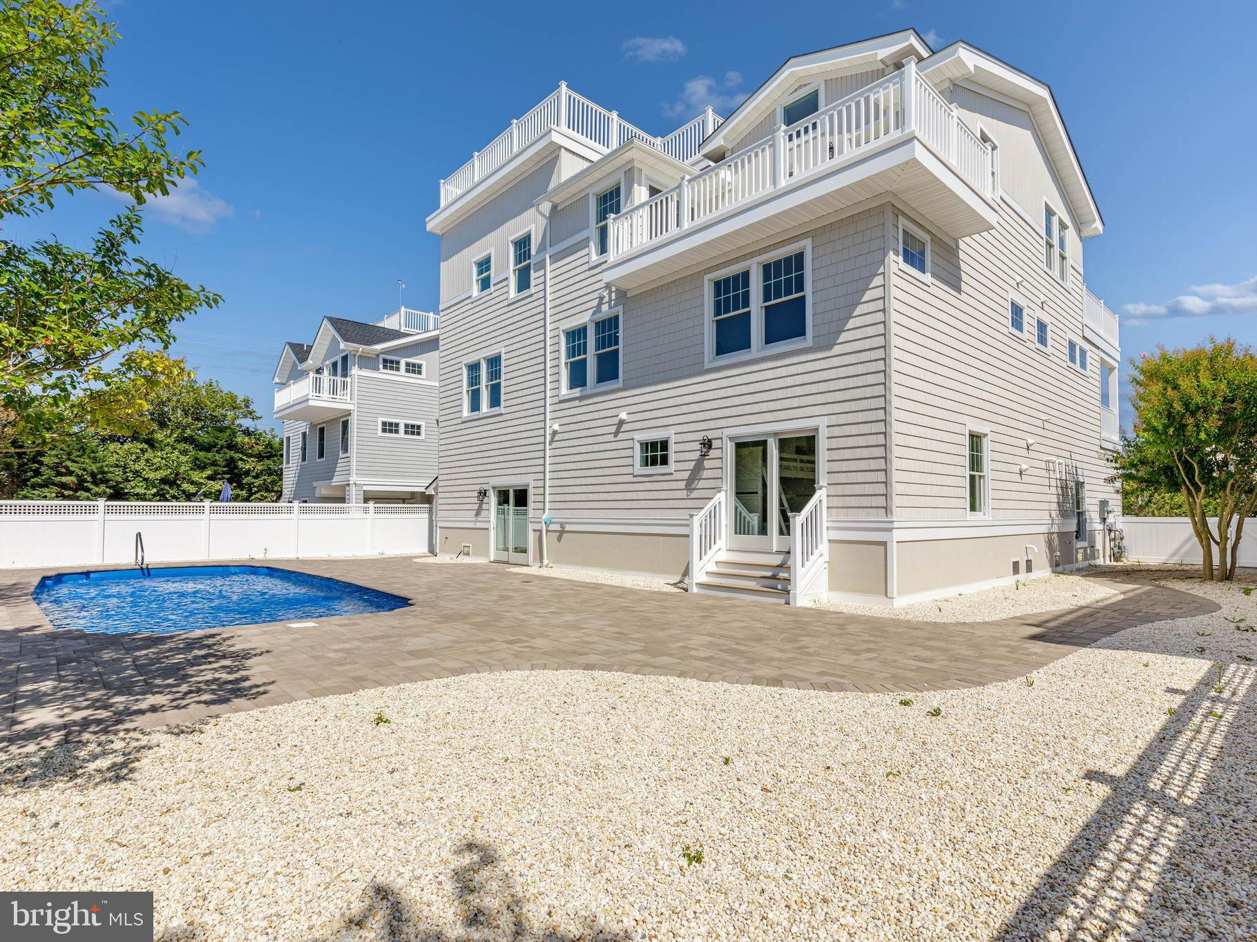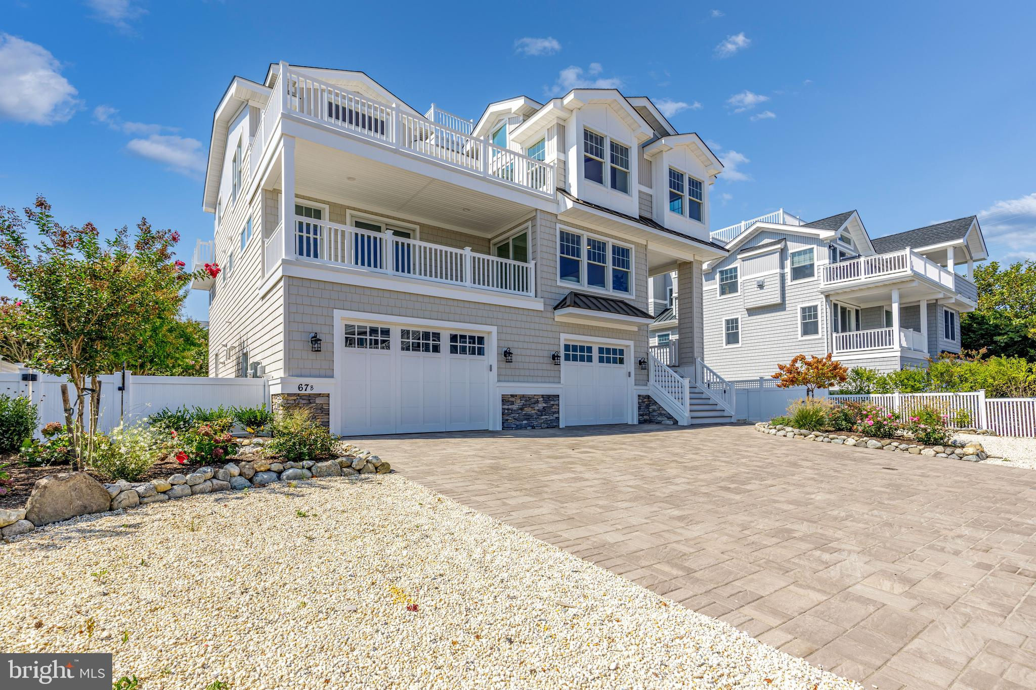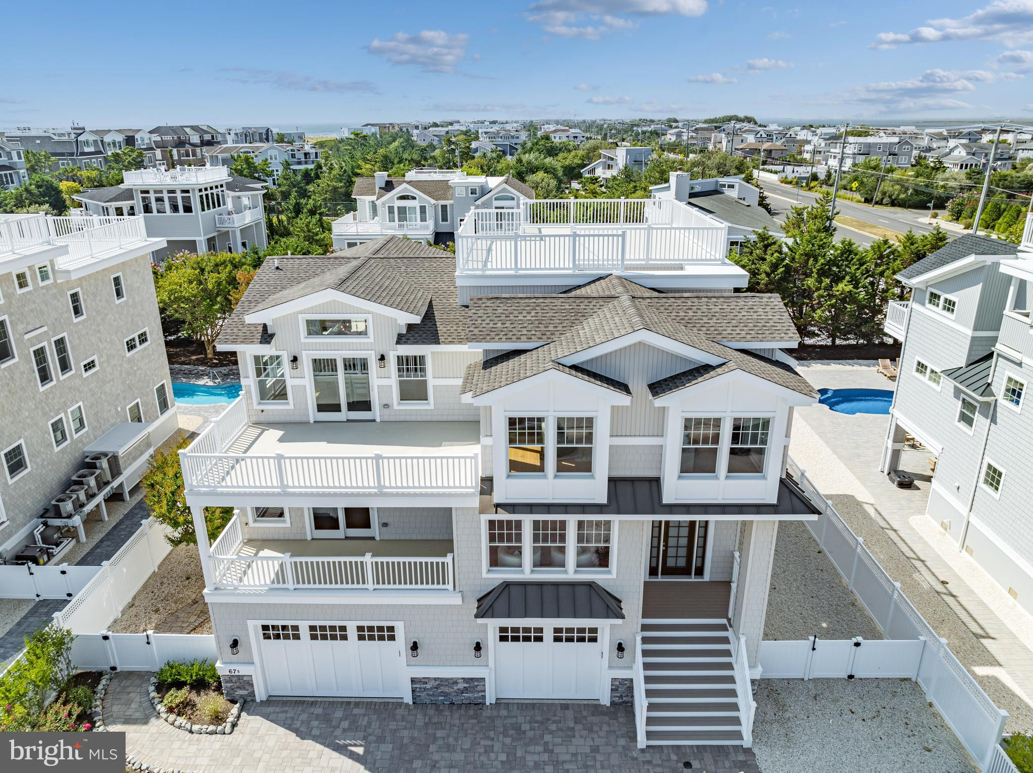 Oceanblock in Loveladies! Stunning new construction built by Mancini Custom Homes, featuring 6 bedrooms, 6 full and 2 half baths, 15' x 34' in-ground heated saltwater pool, 1,329 sq ft of decking and 3-stop elevator, all located on a private tract in Loveladies! Enjoy 4,200 square feet of living space on three levels! Outdoor living is a priority on this 13,125 sf lot with mature trees and privacy fencing. Special interior touches include gorgeous coastal finishes, contemporary trim and wainscoting, engineered wide-plank hardwood floors, quartz countertops, fully-tiled showers with handshowers, and modern hardware throughout. The top floor centers around a sprawling great room with vaulted ceilings, stacked windows, and sliders that allow for plenty of natural sunlight and fresh ocean air. Enjoy dining al fresco on the 15 x 22 sf deck. A custom mantel, granite surround, and shiplap wall accent the gas fireplace. A 9-foot wet bar includes a wine cooler and icemaker. Cooks will appreciate the eight-burner 48” Wolf range and fully-paneled appliance package, including a Sub-Zero side-by-side 48” refrigerator/freezer, two dishwashers, and a microwave drawer. A glass-fronted display cabinet and a large custom-shelved pantry with pocket door add storage, and a center island offers seating for five. The kitchen shares a convenient barbecue deck with the primary bedroom. The well-appointed primary suite features a large walk-in closet; double vanity; soaking tub; fully-tiled shower with bench, rainhead and handshower; and a private deck for enjoying morning coffee in the sunshine. Climb to the rooftop deck to enjoy relaxing sunrises, sunsets, and warm ocean breezes. The middle floor family room makes entertaining easy, with a convenient wet bar, beverage center and icemaker, and four spacious junior suites. Access to the covered deck is shared by the family room and one bedroom. A full laundry room with sink is also located on this level. Take the elevator to the ground floor to find the sixth junior suite with a sliding glass door to the beautiful backyard retreat, with heated saltwater pool, professional landscaping and outdoor shower. A convenient half bath and a spacious cabana room make outdoor entertaining easy. Private beach access, just a short distance to the Long Beach Island Art Foundation, bars, restaurants, shopping and more! Taxes reflect preconstruction assessment and owner is a NJ real estate Broker.