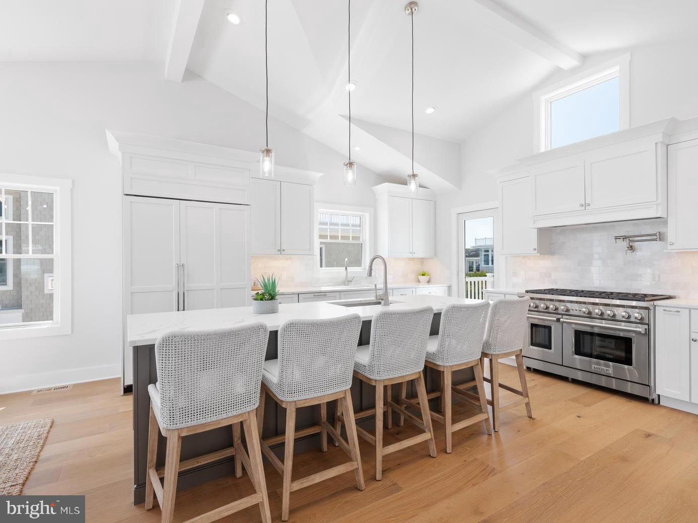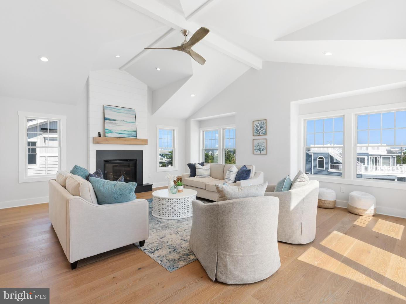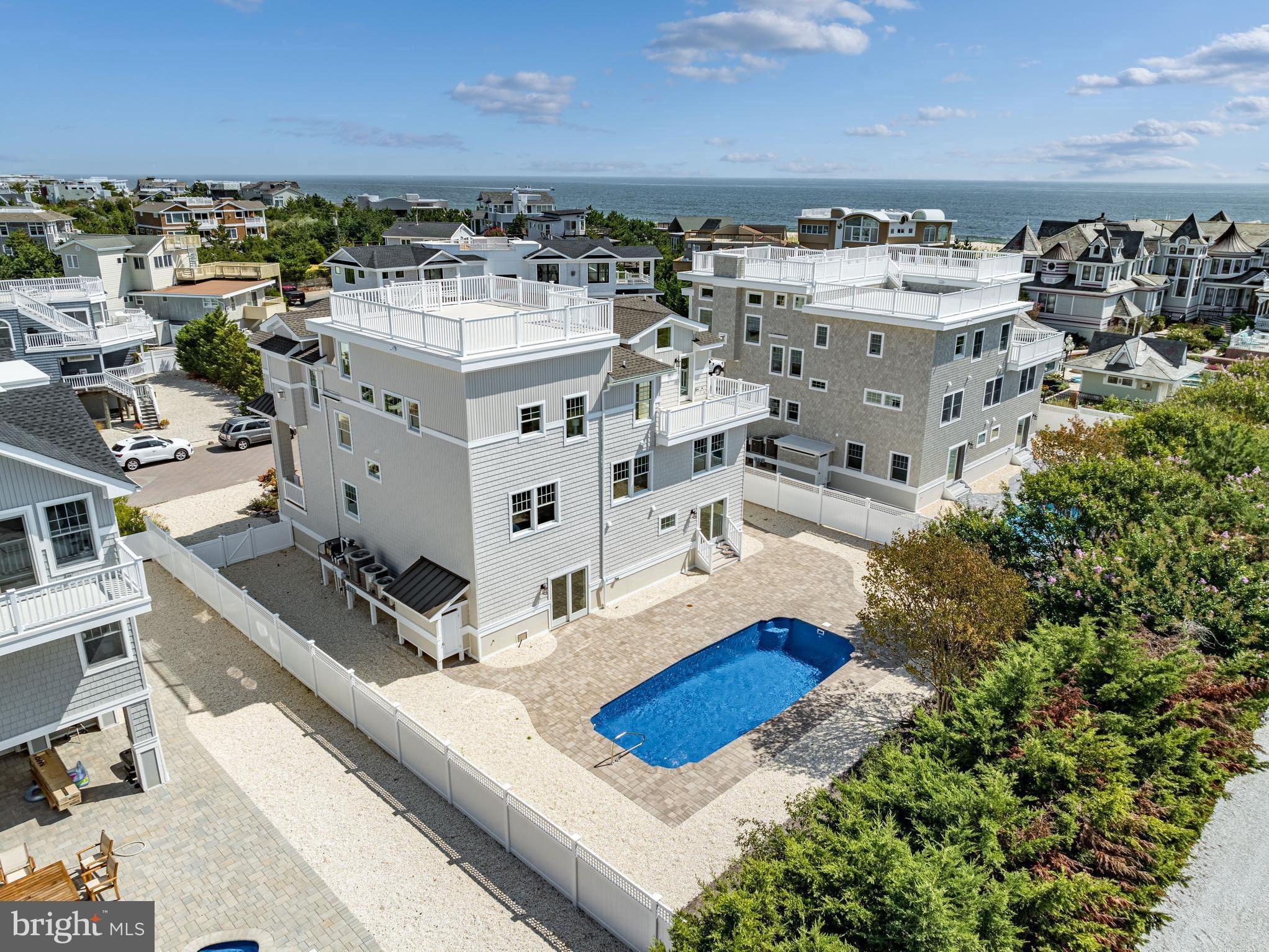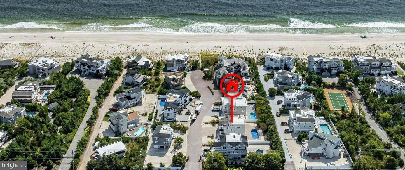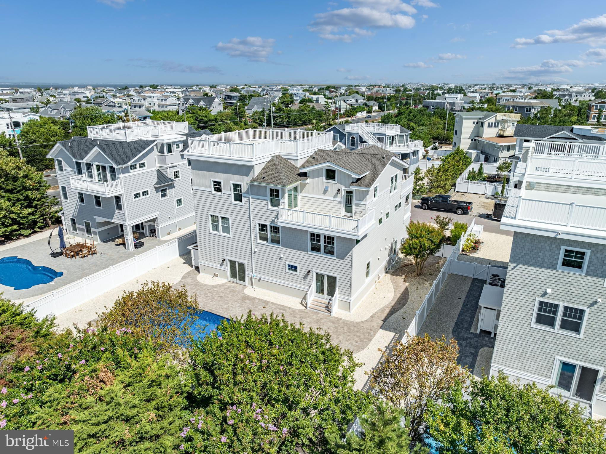 Oceanblock in Loveladies! Stunning new construction built by Mancini Custom Homes, featuring 6 bedrooms, 6 full and 2 half baths, 15' x 34' in-ground heated saltwater pool, 1,329 sq ft of decking and 3-stop elevator, all located on a private tract in Loveladies! Enjoy 4,200 square feet of living space on three levels! Outdoor living is a priority on this 13,125 sf lot with mature trees and privacy fencing. Special interior touches include gorgeous coastal finishes, contemporary trim and wainscoting, engineered wide-plank hardwood floors, quartz countertops, fully-tiled showers with handshowers, and modern hardware throughout. The top floor centers around a sprawling great room with vaulted ceilings, stacked windows, and sliders that allow for plenty of natural sunlight and fresh ocean air. Enjoy dining al fresco on the 15 x 22 sf deck. A custom mantel, granite surround, and shiplap wall accent the gas fireplace. A 9-foot wet bar includes a wine cooler and icemaker. Cooks will appreciate the eight-burner 48” Wolf range and fully-paneled appliance package, including a Sub-Zero side-by-side 48” refrigerator/freezer, two dishwashers, and a microwave drawer. A glass-fronted display cabinet and a large custom-shelved pantry with pocket door add storage, and a center island offers seating for five. The kitchen shares a convenient barbecue deck with the primary bedroom. The well-appointed primary suite features a large walk-in closet; double vanity; soaking tub; fully-tiled shower with bench, rainhead and handshower; and a private deck for enjoying morning coffee in the sunshine. Climb to the rooftop deck to enjoy relaxing sunrises, sunsets, and warm ocean breezes. The middle floor family room makes entertaining easy, with a convenient wet bar, beverage center and icemaker, and four spacious junior suites. Access to the covered deck is shared by the family room and one bedroom. A full laundry room with sink is also located on this level. Take the elevator to the ground floor to find the sixth junior suite with a sliding glass door to the beautiful backyard retreat, with heated saltwater pool, professional landscaping and outdoor shower. A convenient half bath and a spacious cabana room make outdoor entertaining easy. Private beach access, just a short distance to the Long Beach Island Art Foundation, bars, restaurants, shopping and more! Taxes reflect preconstruction assessment and owner is a NJ real estate Broker.