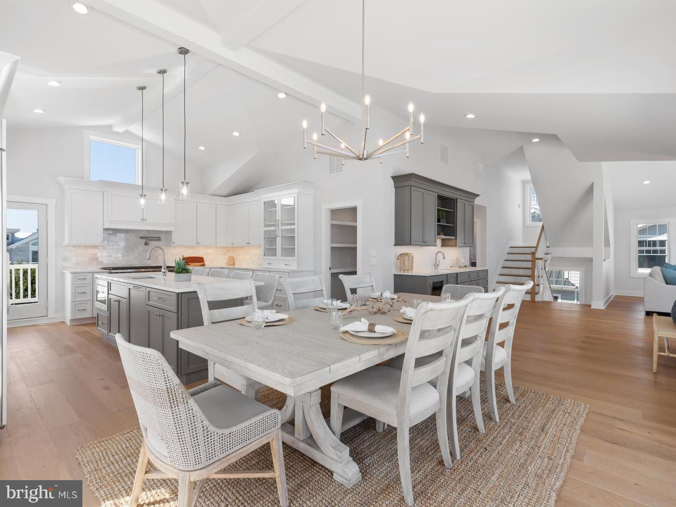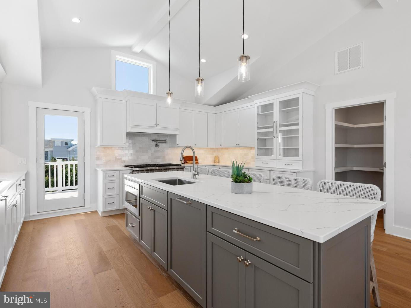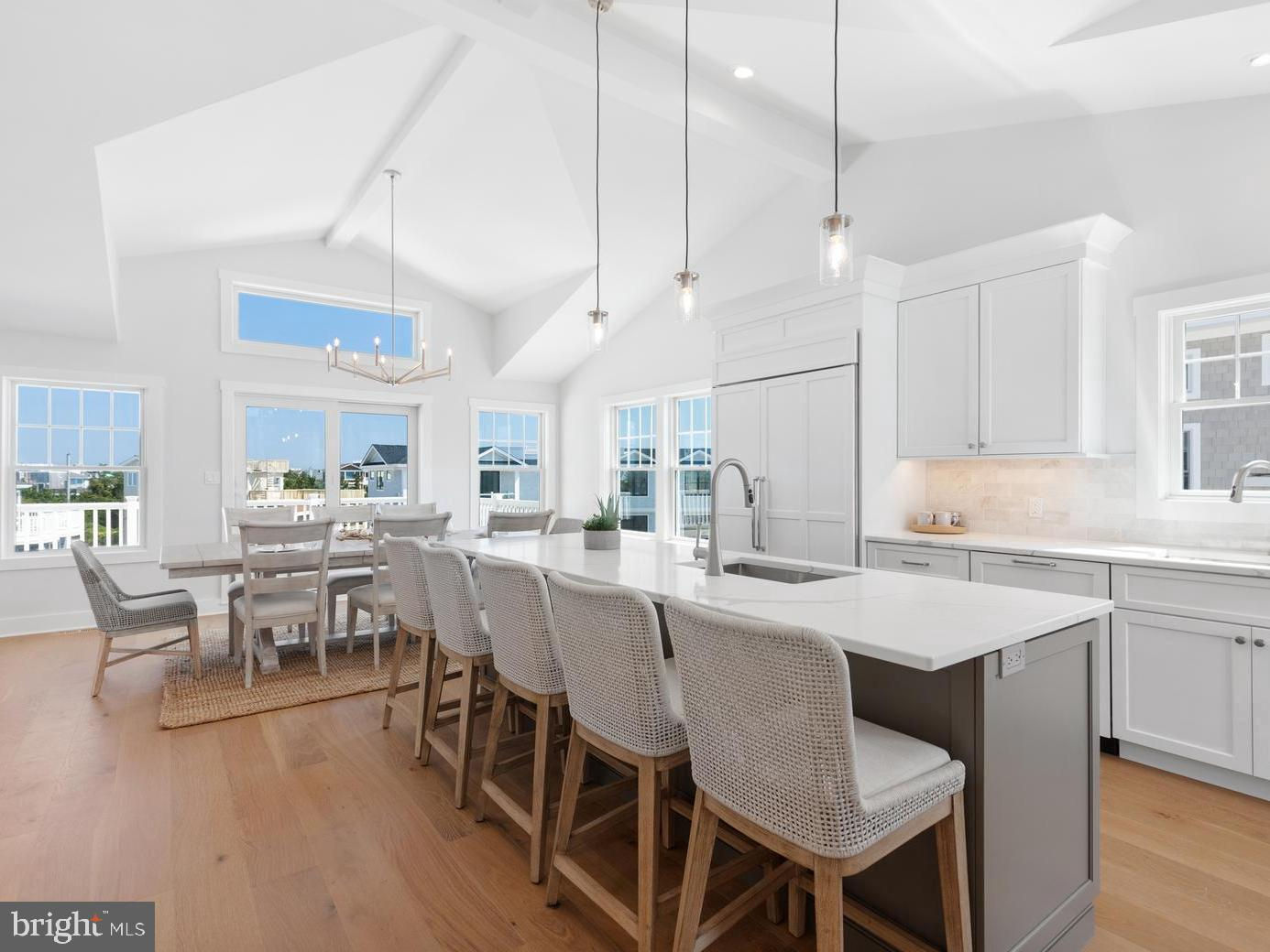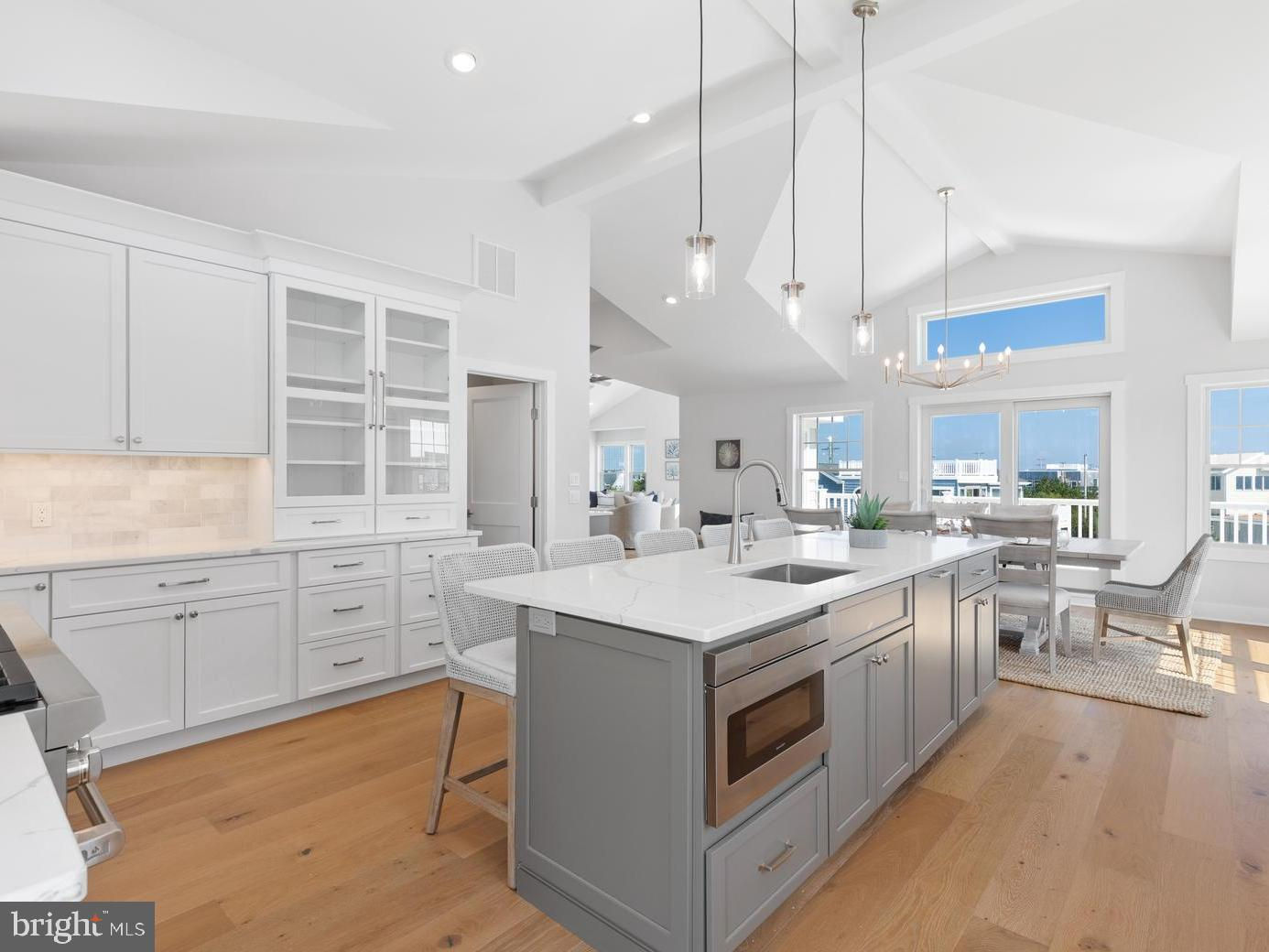 Oceanblock in Loveladies! Stunning new construction built by Mancini Custom Homes, featuring 6 bedrooms, 6 full and 2 half baths, 15' x 34' in-ground heated saltwater pool, 1,329 sq ft of decking and 3-stop elevator, all located on a private tract in Loveladies! Enjoy 4,200 square feet of living space on three levels! Outdoor living is a priority on this 13,125 sf lot with mature trees and privacy fencing. Special interior touches include gorgeous coastal finishes, contemporary trim and wainscoting, engineered wide-plank hardwood floors, quartz countertops, fully-tiled showers with handshowers, and modern hardware throughout. The top floor centers around a sprawling great room with vaulted ceilings, stacked windows, and sliders that allow for plenty of natural sunlight and fresh ocean air. Enjoy dining al fresco on the 15 x 22 sf deck. A custom mantel, granite surround, and shiplap wall accent the gas fireplace. A 9-foot wet bar includes a wine cooler and icemaker. Cooks will appreciate the eight-burner 48” Wolf range and fully-paneled appliance package, including a Sub-Zero side-by-side 48” refrigerator/freezer, two dishwashers, and a microwave drawer. A glass-fronted display cabinet and a large custom-shelved pantry with pocket door add storage, and a center island offers seating for five. The kitchen shares a convenient barbecue deck with the primary bedroom. The well-appointed primary suite features a large walk-in closet; double vanity; soaking tub; fully-tiled shower with bench, rainhead and handshower; and a private deck for enjoying morning coffee in the sunshine. Climb to the rooftop deck to enjoy relaxing sunrises, sunsets, and warm ocean breezes. The middle floor family room makes entertaining easy, with a convenient wet bar, beverage center and icemaker, and four spacious junior suites. Access to the covered deck is shared by the family room and one bedroom. A full laundry room with sink is also located on this level. Take the elevator to the ground floor to find the sixth junior suite with a sliding glass door to the beautiful backyard retreat, with heated saltwater pool, professional landscaping and outdoor shower. A convenient half bath and a spacious cabana room make outdoor entertaining easy. Private beach access, just a short distance to the Long Beach Island Art Foundation, bars, restaurants, shopping and more! Taxes reflect preconstruction assessment and owner is a NJ real estate Broker.