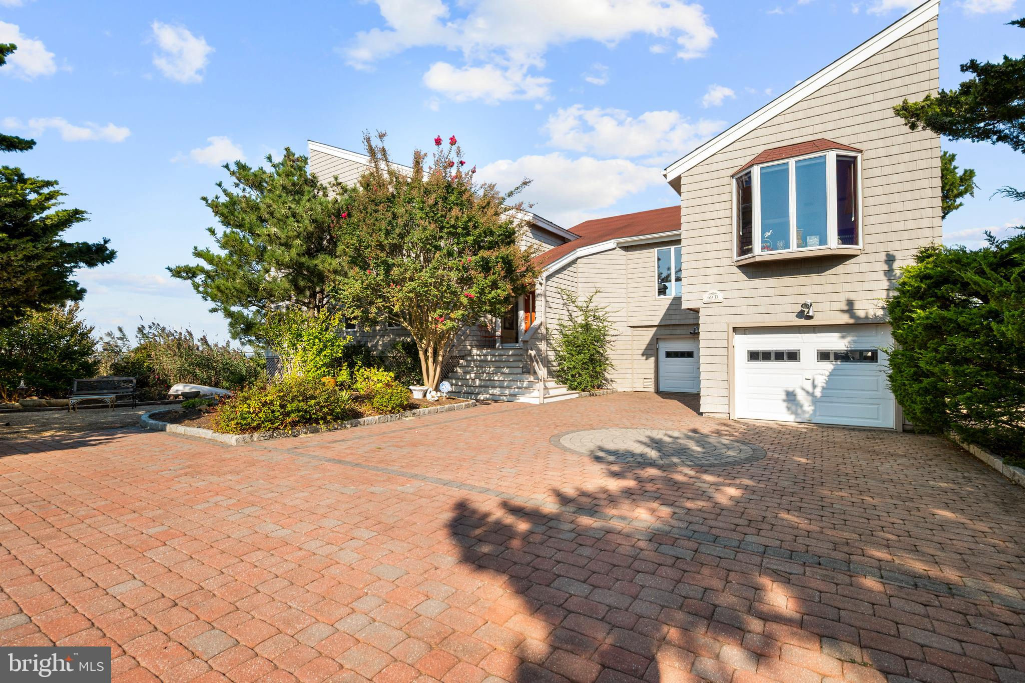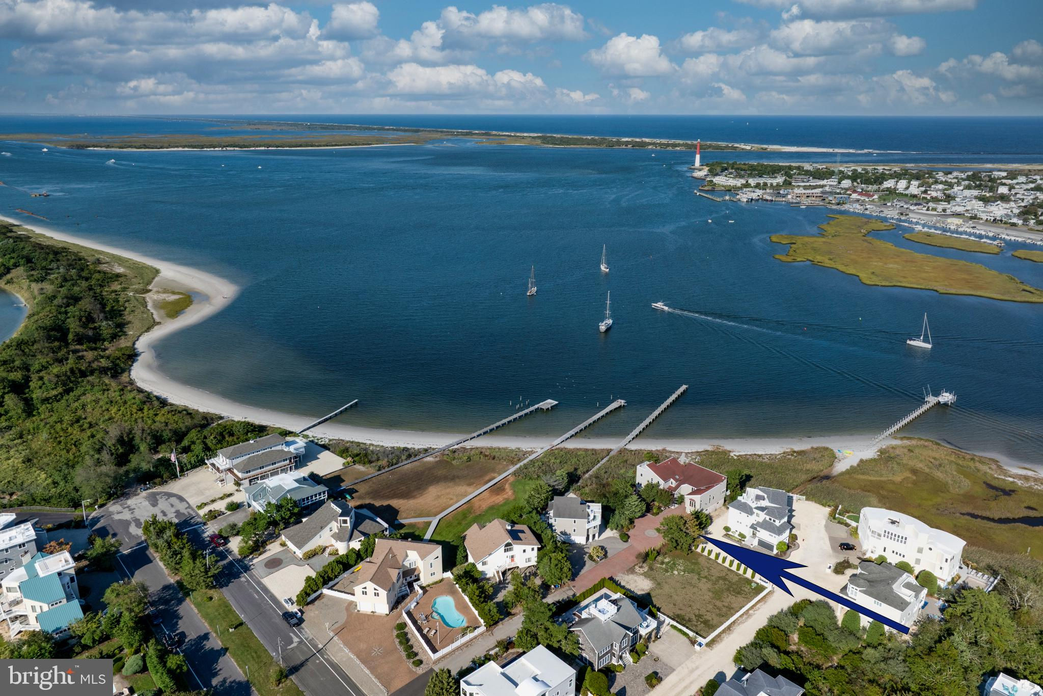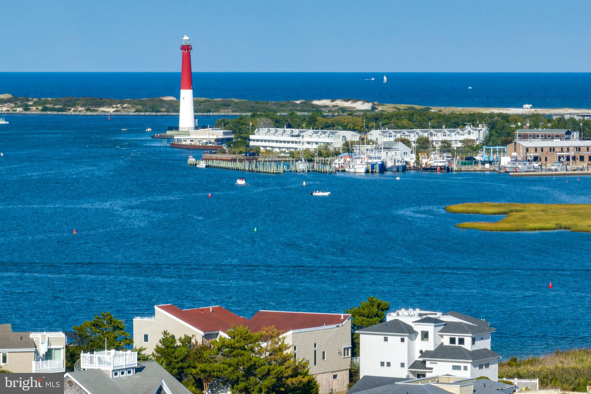 BAYFRONT - HIGH BAR HARBOR: Enjoy the most nautical and fascinating views available on LBI from this superior bayfront location on a giant-sized lot. Direct views of Barnegat Lighthouse, Barnegat Inlet, the wildlife refuge, Island Beach State Park, the harbor and more! More than 200' of pristine white sandy beach and the bay frontage at the end of the huge riparian grant is 331'! Renovate/update in place or build new. The existing living space footprint is approximately 2100sq' plus 430sq' of elevated deck footprint with plenty of room for westward expansion too. Home features 4 bedrooms, 2.5 baths, great room with dining area and granite topped kitchen, large family room with fireplace and vaulted ceiling, den, huge primary suite with phenomenal views, and a spa room with sauna, hot tub, and wet bar. Outdoor features include a large brick paved courtyard and driveway, attractive irrigated landscaping, and private driving easement. A more interesting and beautiful view does not exist!