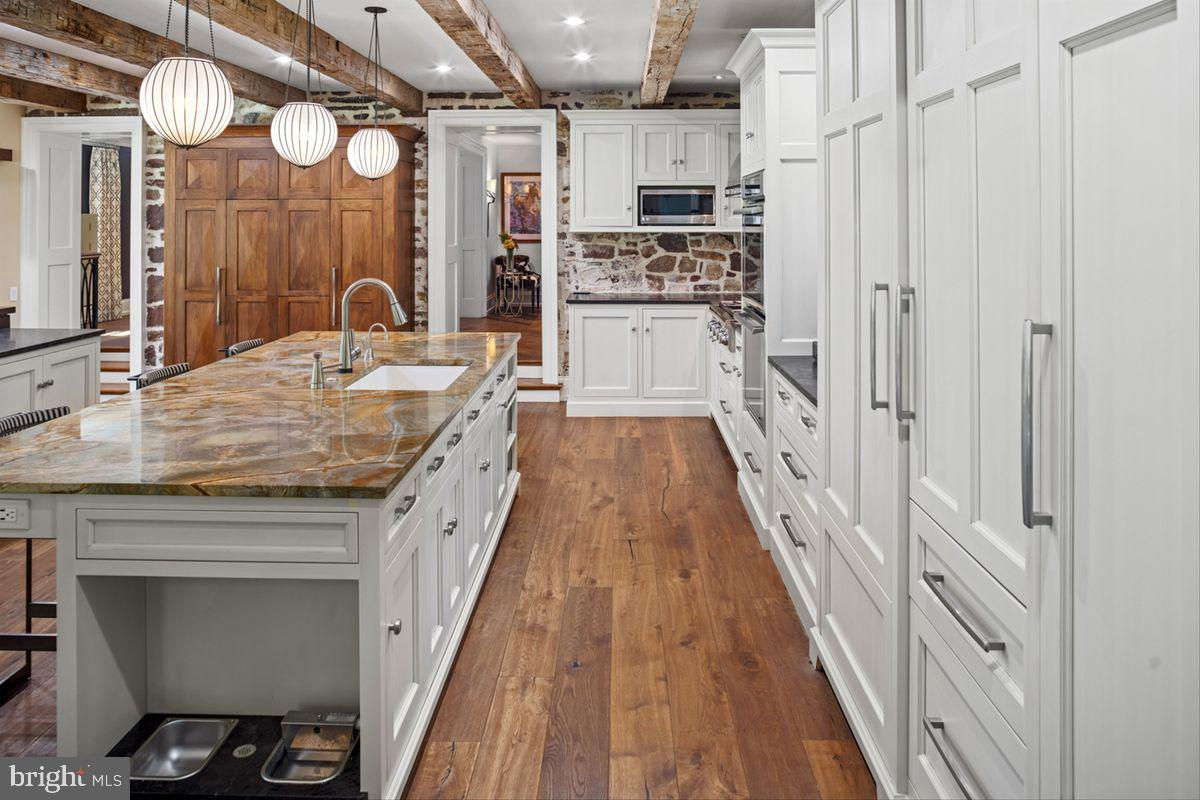 Exquisite 24 Acre Equestrian Estate – Ultimate Sanctuary of Luxury & Lifestyle. Discover serenity and prestige in this fully turnkey equestrian sanctuary nestled on 24 private acres adjacent to over 280 acres of permanently preserved land within Gwynedd Wildlife Preserve. With pond and arboretum vistas, lighted pickleball courts, spa amenities, and custom riding facilities, this bespoke property blends historic character with modern comfort—all just 45 minutes from Philadelphia and 90 minutes from New York City. Step through the doors of the 1742 main residence—meticulously restored and expanded with the finest craftsmanship. Here, rustic elegance meets luxury: exposed stone walls, original barn-beam ceilings, antique fireplaces, and deep-well windows anchor the historic charm, while a gourmet chef’s kitchen shines with quartzite countertops, built-in Thermador and Miele appliances, a zinc-topped bar, wine refrigeration, and electric appliance lifts. The master suite is your private retreat: a covered deck, dual walk-in closets, spa-style bath with soaking jacuzzi, Toto toilet, floating cabinetry, mosaic marble flooring, hand-blown light fixtures, and a Sunlighten far-infrared sauna. With Smart Glass windows, privacy is instantaneous. Three additional ensuite bedrooms include one with a private entrance and sitting room, ideal for extended family or staff. Interior comfort flows throughout via elevator or custom, iron staircase. A lower-level gym, powder room, and storage round out the luxurious layout. Equestrian excellence defines the grounds. The custom indoor arena (200′ x 86′) features Attwood dust-free footing, mirrored riding wall, heated wash stall, and 24 oversized, automated glass doors opening to the surrounding landscape. A climate-controlled tack/viewing room with kitchen and powder room adds convenience. The restored 200 year old bank barn with 6 large stalls, auxiliary ten-stall shed row, and four, fully fenced, expansive paddocks—including multiple run-in sheds, 150’ round pen, four 50 foot round pens, hayloft and storage—ensure your horses are housed in safety and style. Riding trails to nearly 300 preserved acres completes the equestrian experience. Additional structures enhance function and charm: a newly renovated guest cottage with 2 bedrooms and 2 baths, plus a caretaker’s home offering 3 bedrooms and 1.5 baths. Recreation includes two ultra-mat cushioned, lighted pickleball courts, a hot tub tucked beside a rustic spring house, stone patios and private deck with BBQ. Located moments from acclaimed public and private schools, country clubs, a private airport, and King of Prussia Mall, this estate enjoys low taxes and effortless access to major commuter routes. This is more than a home—it’s a curated lifestyle experience, combining an equestrian’s paradise, historical elegance, resort-style amenities, and cutting-edge smart home luxury in a setting of profound privacy. For the most discerning buyer who appreciates an offering with this caliber of design, location, and turnkey readiness.