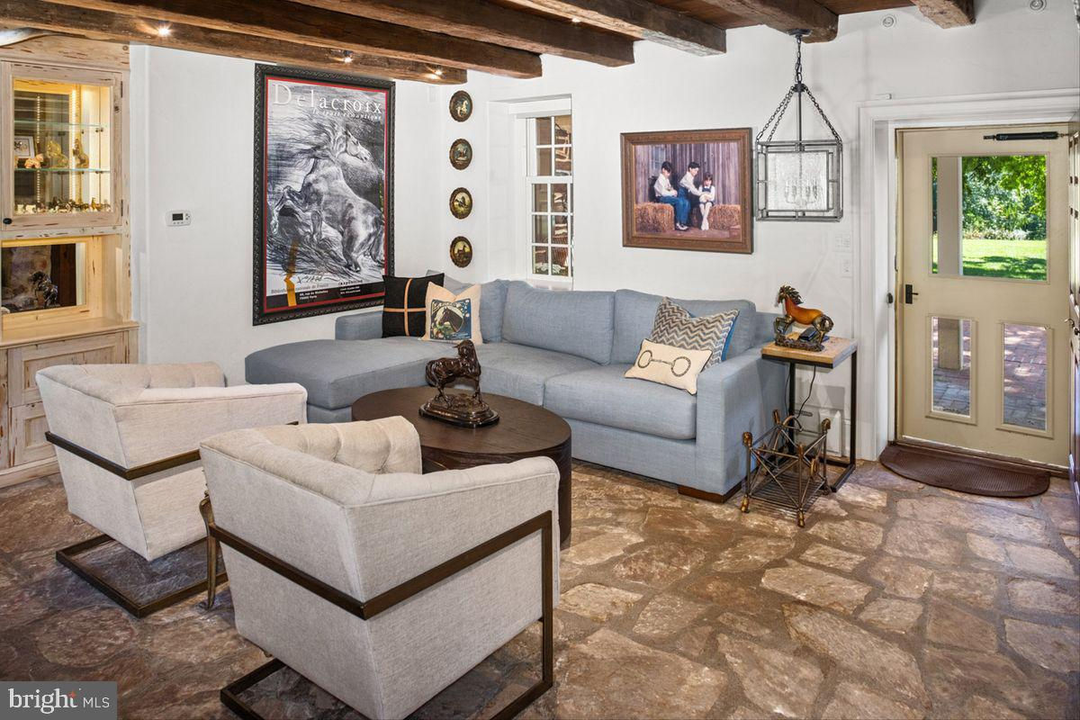 Exquisite 24 Acre Equestrian Estate – Ultimate Sanctuary of Luxury & Lifestyle. Discover serenity and prestige in this fully turnkey equestrian sanctuary nestled on 24 private acres adjacent to over 280 acres of permanently preserved land within Gwynedd Wildlife Preserve. With pond and arboretum vistas, lighted pickleball courts, spa amenities, and custom riding facilities, this bespoke property blends historic character with modern comfort—all just 45 minutes from Philadelphia and 90 minutes from New York City. Step through the doors of the 1742 main residence—meticulously restored and expanded with the finest craftsmanship. Here, rustic elegance meets luxury: exposed stone walls, original barn-beam ceilings, antique fireplaces, and deep-well windows anchor the historic charm, while a gourmet chef’s kitchen shines with quartzite countertops, built-in Thermador and Miele appliances, a zinc-topped bar, wine refrigeration, and electric appliance lifts. The master suite is your private retreat: a covered deck, dual walk-in closets, spa-style bath with soaking jacuzzi, Toto toilet, floating cabinetry, mosaic marble flooring, hand-blown light fixtures, and a Sunlighten far-infrared sauna. With Smart Glass windows, privacy is instantaneous. Three additional ensuite bedrooms include one with a private entrance and sitting room, ideal for extended family or staff. Interior comfort flows throughout via elevator or custom, iron staircase. A lower-level gym, powder room, and storage round out the luxurious layout. Equestrian excellence defines the grounds. The custom indoor arena (200′ x 86′) features Attwood dust-free footing, mirrored riding wall, heated wash stall, and 24 oversized, automated glass doors opening to the surrounding landscape. A climate-controlled tack/viewing room with kitchen and powder room adds convenience. The restored 200 year old bank barn with 6 large stalls, auxiliary ten-stall shed row, and four, fully fenced, expansive paddocks—including multiple run-in sheds, 150’ round pen, four 50 foot round pens, hayloft and storage—ensure your horses are housed in safety and style. Riding trails to nearly 300 preserved acres completes the equestrian experience. Additional structures enhance function and charm: a newly renovated guest cottage with 2 bedrooms and 2 baths, plus a caretaker’s home offering 3 bedrooms and 1.5 baths. Recreation includes two ultra-mat cushioned, lighted pickleball courts, a hot tub tucked beside a rustic spring house, stone patios and private deck with BBQ. Located moments from acclaimed public and private schools, country clubs, a private airport, and King of Prussia Mall, this estate enjoys low taxes and effortless access to major commuter routes. This is more than a home—it’s a curated lifestyle experience, combining an equestrian’s paradise, historical elegance, resort-style amenities, and cutting-edge smart home luxury in a setting of profound privacy. For the most discerning buyer who appreciates an offering with this caliber of design, location, and turnkey readiness.