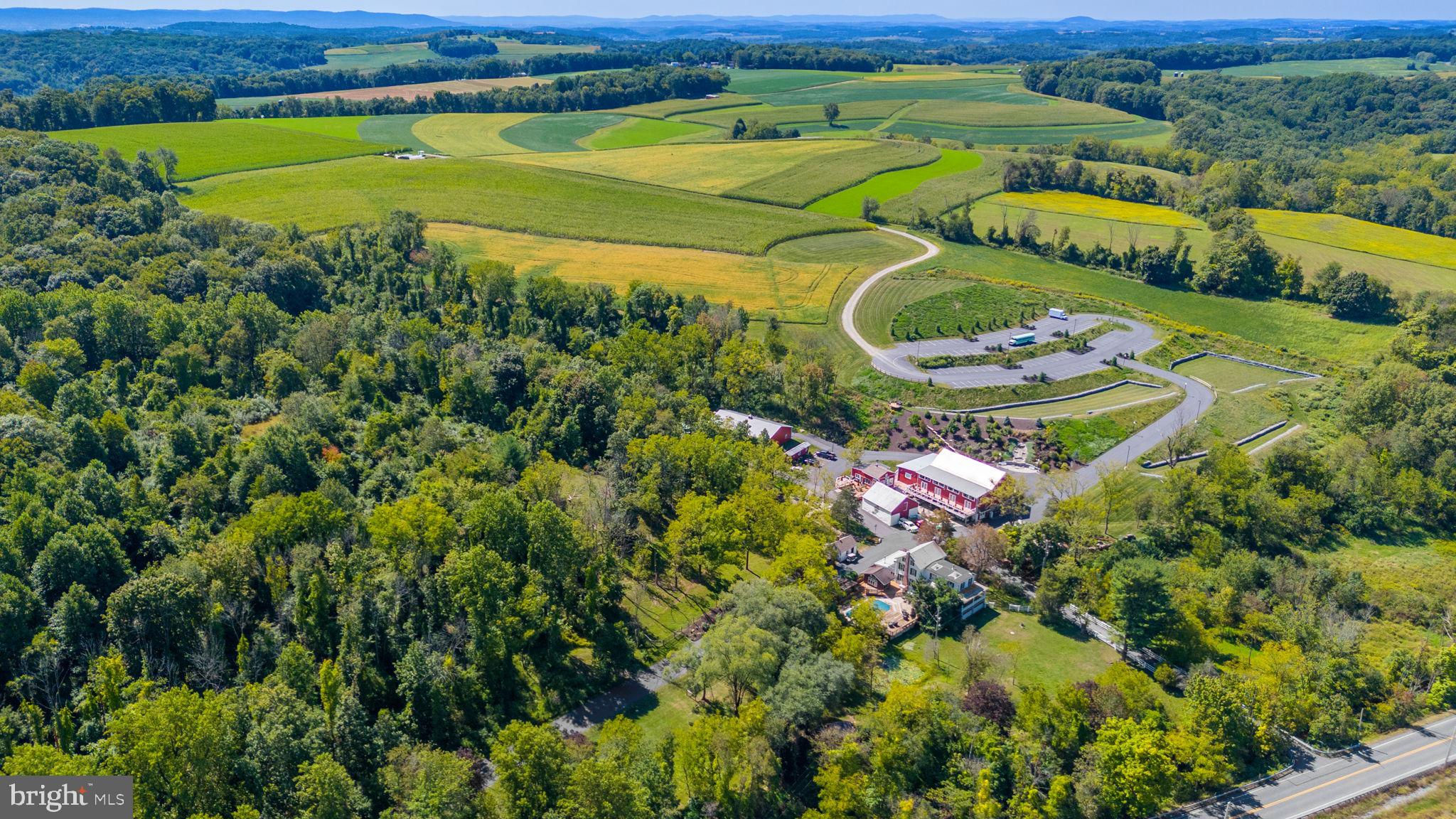 The sky is literally the limit with this real estate, Business and equipment Turn Key Business Opportunity. This vast property has a total of 7 structures, Is a Brewery with Pa liquor license, a fully running entertainment business/facility and is located on 47.27 acres. The property started with the stone farm house built in 1875 that has 4 bedrooms, 2 full baths an 1/2 bath, fenced in yard, an inground pool and hot tub. The Main barn has had every detail laid out to be used for events such as weddings, trivia nights with food trucks, and any other large entertaining possibility you could imagine. The main barn building has a max capacity of 180 people. The Upper level has a vaulted fireplace, 2 full bathrooms, access to the oversized commercial sized kitchen w grease trap, and also provides access to the bonus vaulted lounge area that over looks the main hall. The lower level has a bridal suite with full bath including a tiled shower, and the brewery is also located on the lower level of the Main barn. This Bar brewery area opens up to an outdoor seating area for more space to entertain. The outdoor bar area opens up to the adjacent barn building that has fireplaces, it's own full bar, TV's and more space for guests. The entire property has been landscaped through out including 3 water fountain feature systems. The first is located by the custom firepit area with a wishing well that has the bonus Treehouse space that does have heat and Ac as well as a mini fridge. The second water fountain space is located at what was once a Pig house that now is an oversized covered outdoor area with a trickling fall of water running by as you enjoy the tranquility of the farm. The third water fountain feature is several stories high and cascades down the main hill at the entrance of the main barn. The 3rd barn structure that has the grooms mans area with full bar on the second level with a half bath, the lower/main level of this structure is used to store all the Design shop items, wedding props and decorations. Farm also houses a pole barn for all the large equipment needed to effectively run the property. The Main Parking lot is a true parking area that holds 120 cars and also provides access to the Wedding ceremony platform located at the pinnacle of the property with 360 views on the beautiful Pa hillsides. Every detail has been thought out and properly designed and implemented. There is a zipline for those who are more adventurous that connects the hill side to the party area. Every building has character and class including live edge tables and bars. Heat and AC through out all the buildings, Generac generators, New septic system installed in 2019. Business and equipment can be included in Sale along with Real estate. No short cuts were made when this dream property was being constructed.