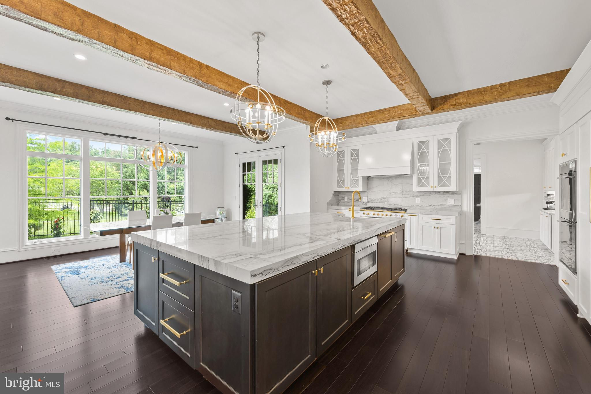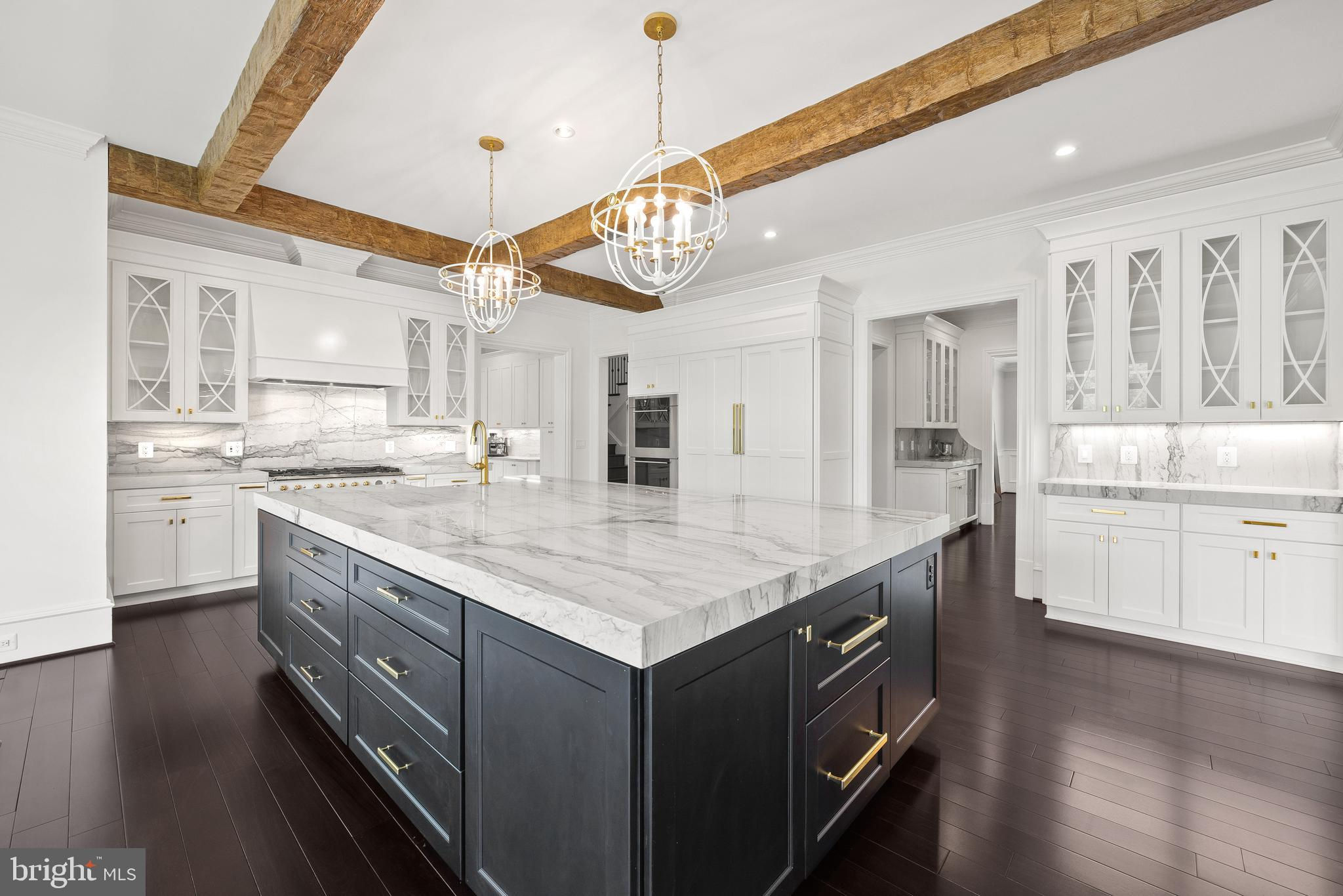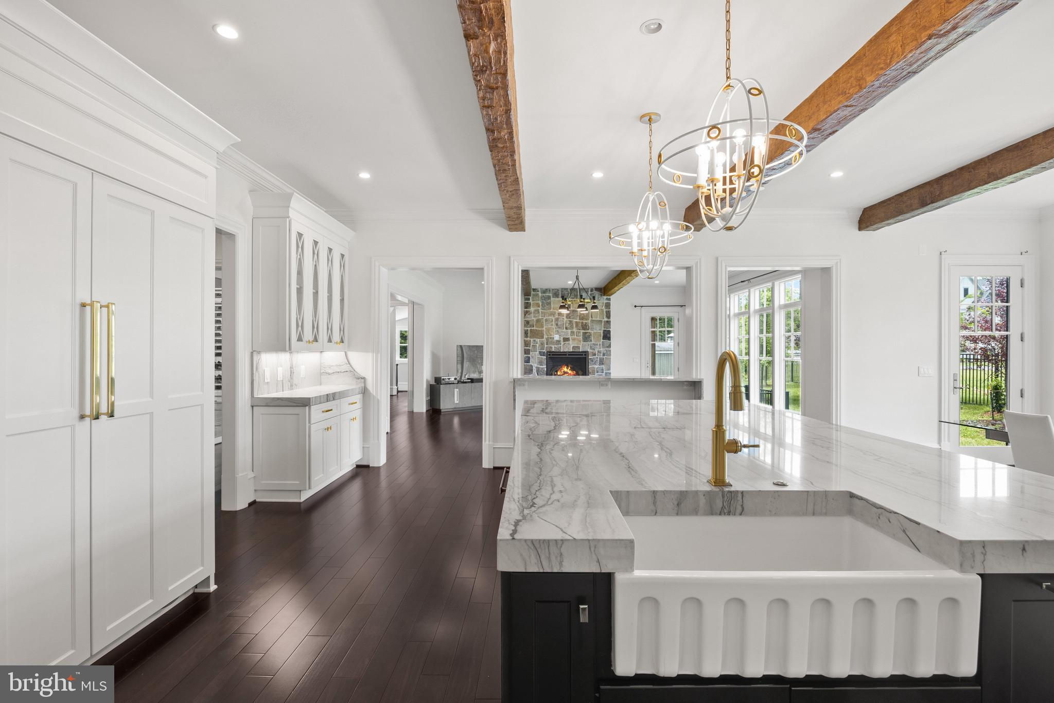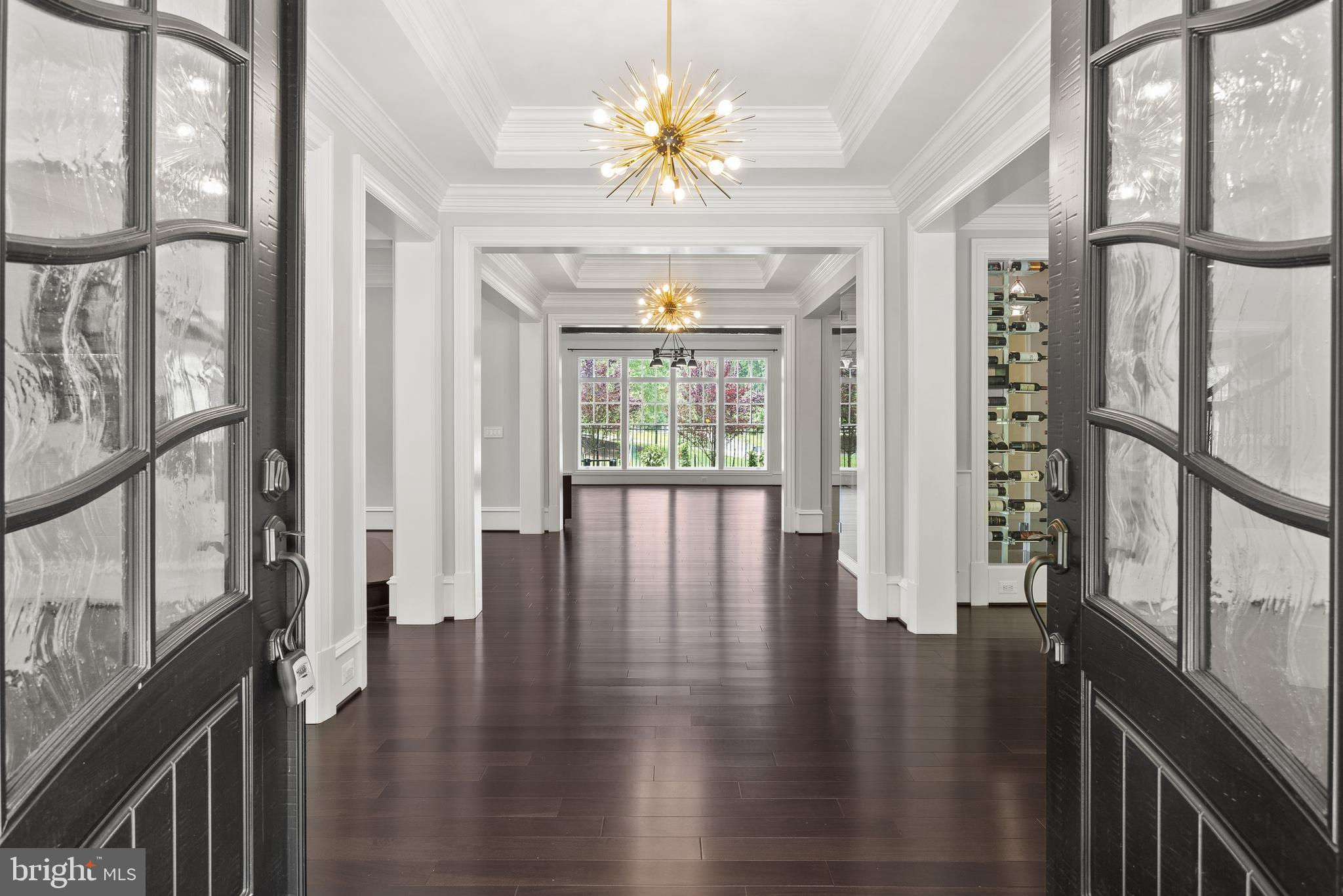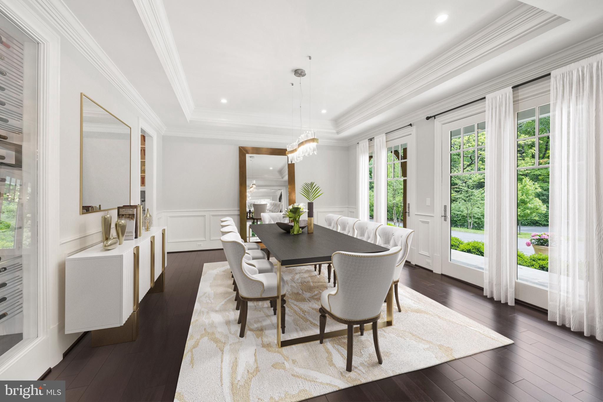 Presenting “Rosewood Estate” … magnificent in design and scale, this custom residence was built in 2022 by renowned builder American Majestic Construction and designed by the highly acclaimed award-winning architect James McDonald. This spectacular home spans an impressive 10,800 square feet, enveloping you in luxurious living adorned with the finest materials and bespoke designer finishes. As you arrive in the foyer through the beautiful custom French doors, you're greeted by a striking tray ceiling and stunning light fixtures, setting the tone for the grandeur within. The formal living and dining room offer access to the covered porch, perfect for outdoor entertaining. Adjacent to the dining room is a custom glass-enclosed wine showcase for your prized collection of over 300 bottles. The inviting family room exudes warmth with its stone fireplace, beamed ceiling, and open floorplan.. A chef's dream kitchen boasts custom cabinetry, a spacious center island with imported Italian marble countertops and backsplash along with top-of-the-line appliances including a dual Sub-Zero refrigerator and separate freezer, Wolf double oven, and beautiful La Cornue gas range. A cozy breakfast room leads to the covered terrace with a gas fireplace and access to the fenced yard overlooking lush rolling hills. Continuing on the main level reveals a convenient full-service catering kitchen, light-drenched study, an elevator accessing all 3 floors, and a generous main-level bedroom suite. Ascend to the upper level, where the owner's suite awaits, complete with a sitting room, balcony, gas fireplace, morning bar, and gorgeous luxurious bath with steam shower adorned with Italian marble and porcelain tile. Three additional ensuite bedrooms, a huge laundry room with extensive cabinetry, a cozy sitting room, and huge fitness room overlooking rolling hills complete this level. The lower level offers a stunning entertainment haven with a large media room featuring a projection system, quartz tiled accent wall with gas fireplace, a large wet bar with an exotic marble waterfall-edge countertop and a full-size Subzero refrigerator and microwave, a billiard room, a golf simulator, and additional bedroom with full bath! Outside, manicured grounds, flagstone patios, and walkways create a serene backdrop, while a three-car garage with pre-wiring for electric vehicles and a house generator add practicality to this exceptional home. Nestled in a prime location mere minutes from Tysons Corner, Great Falls Park, and major transportation routes including the Dulles Toll Road, I-495, I-66, and Leesburg Pike, this is where the utmost in convenience meets opulence.