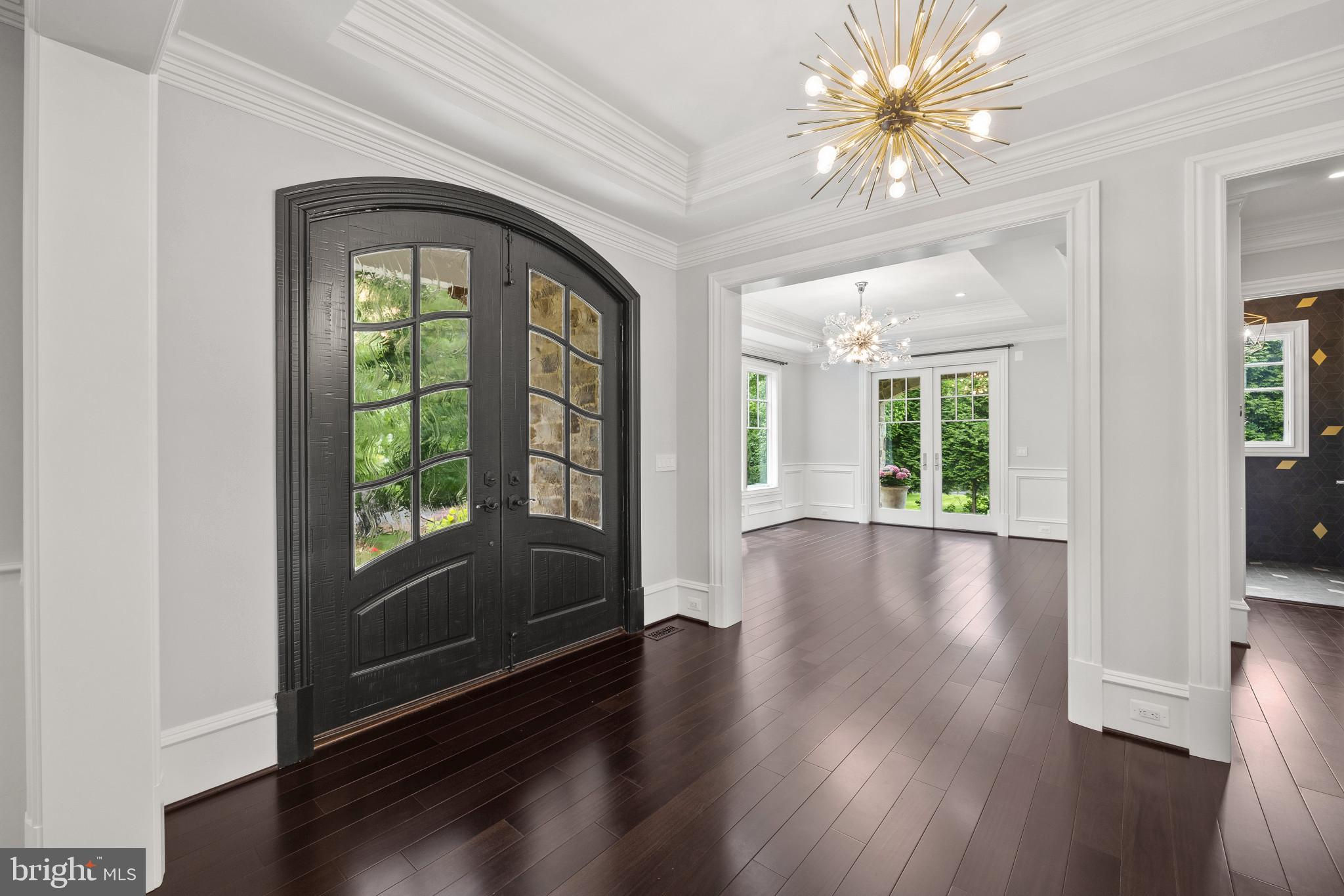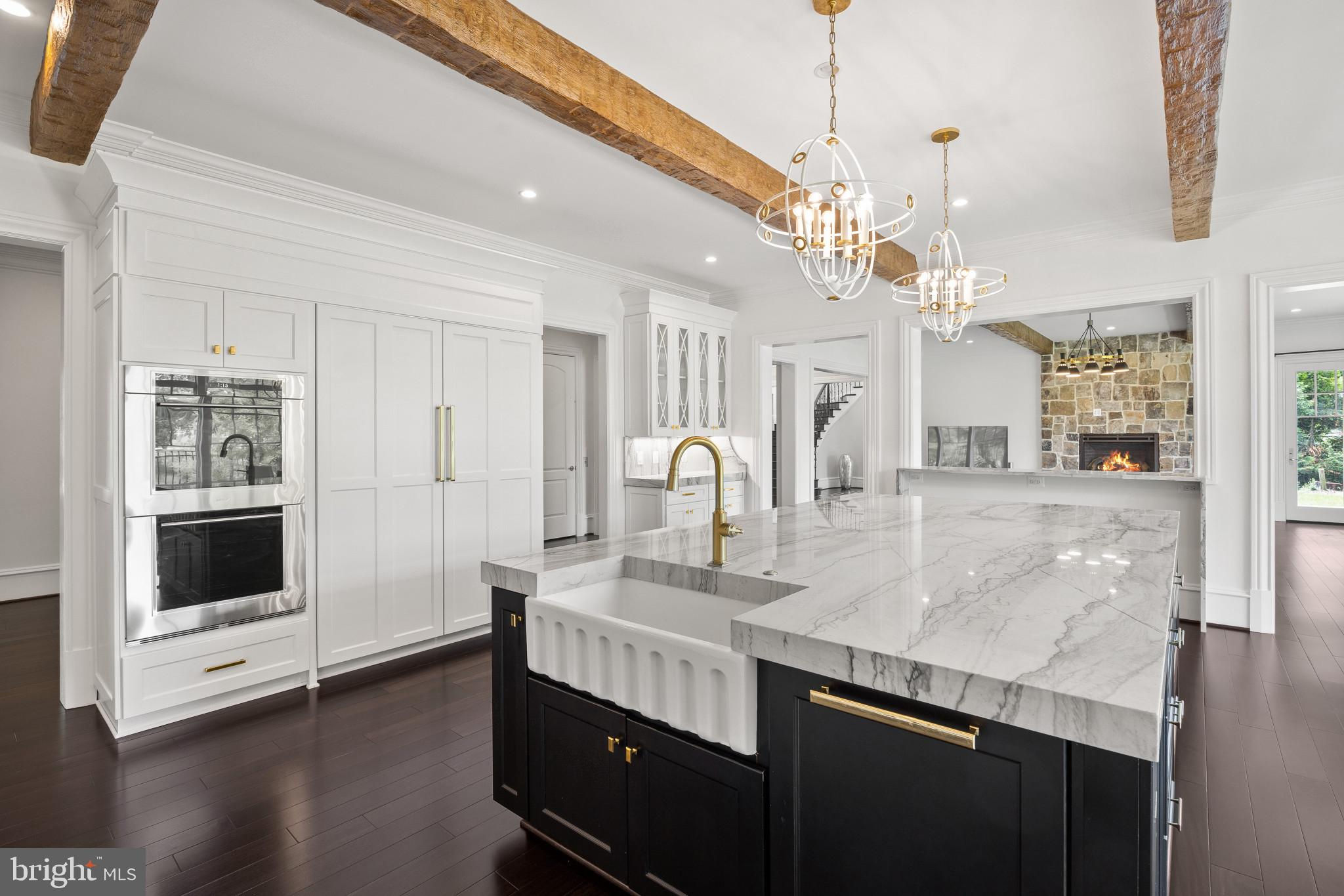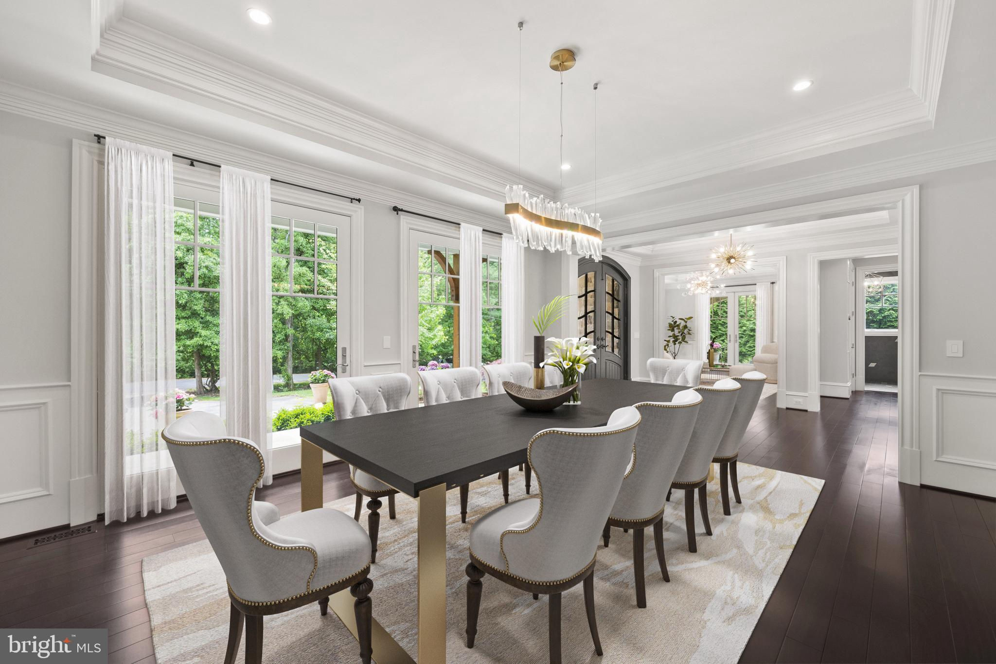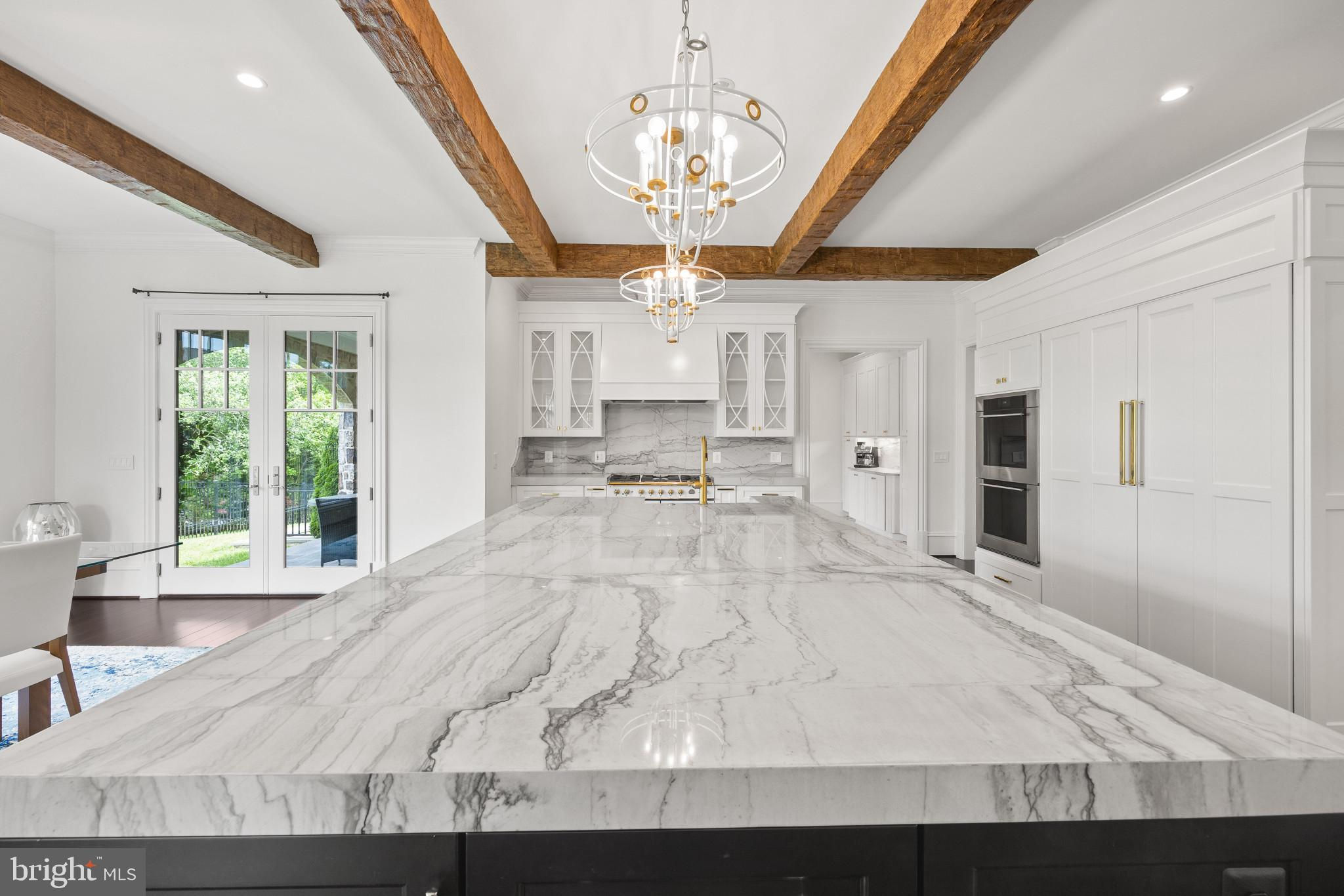 Presenting “Rosewood Estate” … magnificent in design and scale, this custom residence was built in 2022 by renowned builder American Majestic Construction and designed by the highly acclaimed award-winning architect James McDonald. This spectacular home spans an impressive 10,800 square feet, enveloping you in luxurious living adorned with the finest materials and bespoke designer finishes. As you arrive in the foyer through the beautiful custom French doors, you're greeted by a striking tray ceiling and stunning light fixtures, setting the tone for the grandeur within. The formal living and dining room offer access to the covered porch, perfect for outdoor entertaining. Adjacent to the dining room is a custom glass-enclosed wine showcase for your prized collection of over 300 bottles. The inviting family room exudes warmth with its stone fireplace, beamed ceiling, and open floorplan.. A chef's dream kitchen boasts custom cabinetry, a spacious center island with imported Italian marble countertops and backsplash along with top-of-the-line appliances including a dual Sub-Zero refrigerator and separate freezer, Wolf double oven, and beautiful La Cornue gas range. A cozy breakfast room leads to the covered terrace with a gas fireplace and access to the fenced yard overlooking lush rolling hills. Continuing on the main level reveals a convenient full-service catering kitchen, light-drenched study, an elevator accessing all 3 floors, and a generous main-level bedroom suite. Ascend to the upper level, where the owner's suite awaits, complete with a sitting room, balcony, gas fireplace, morning bar, and gorgeous luxurious bath with steam shower adorned with Italian marble and porcelain tile. Three additional ensuite bedrooms, a huge laundry room with extensive cabinetry, a cozy sitting room, and huge fitness room overlooking rolling hills complete this level. The lower level offers a stunning entertainment haven with a large media room featuring a projection system, quartz tiled accent wall with gas fireplace, a large wet bar with an exotic marble waterfall-edge countertop and a full-size Subzero refrigerator and microwave, a billiard room, a golf simulator, and additional bedroom with full bath! Outside, manicured grounds, flagstone patios, and walkways create a serene backdrop, while a three-car garage with pre-wiring for electric vehicles and a house generator add practicality to this exceptional home. Nestled in a prime location mere minutes from Tysons Corner, Great Falls Park, and major transportation routes including the Dulles Toll Road, I-495, I-66, and Leesburg Pike, this is where the utmost in convenience meets opulence.