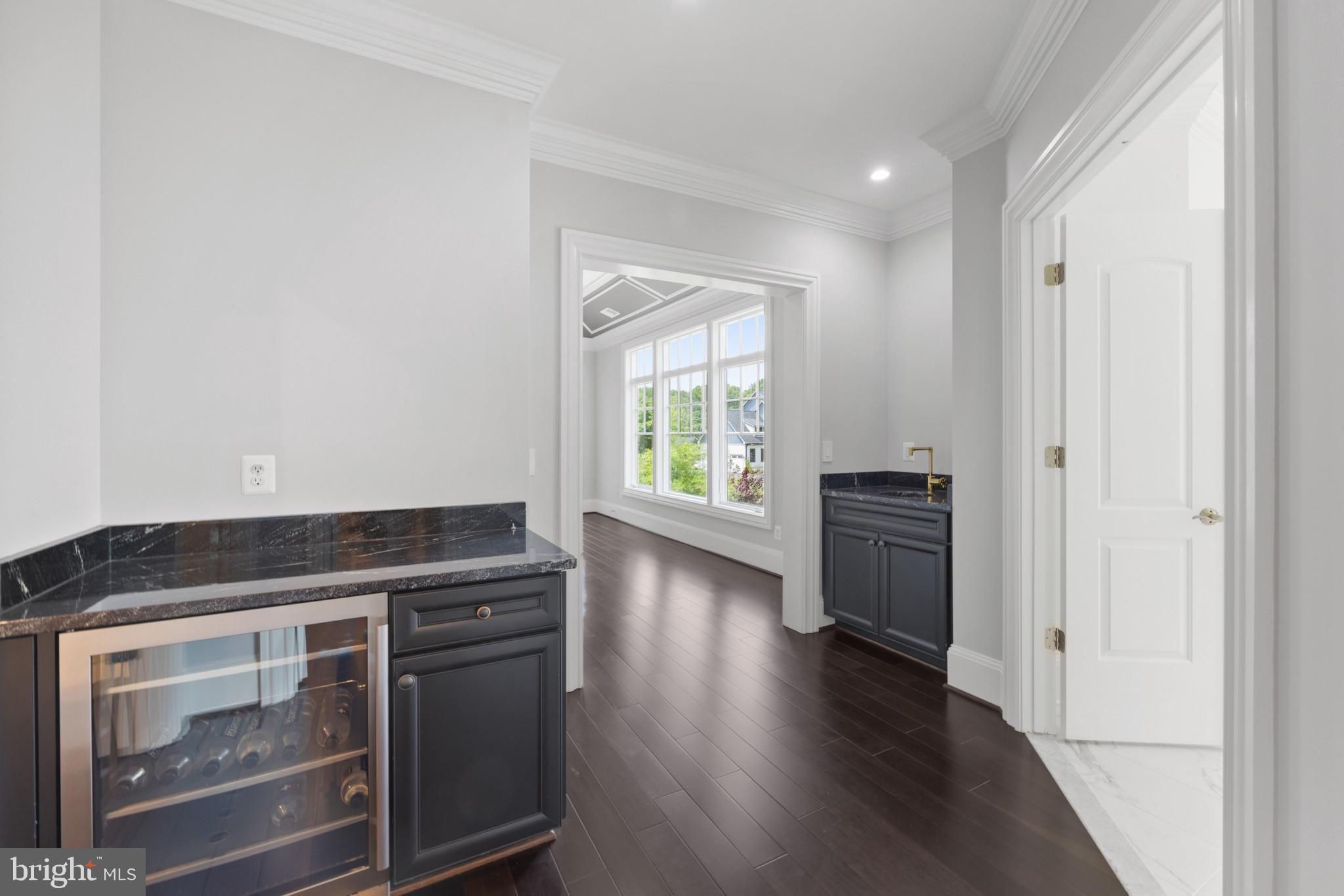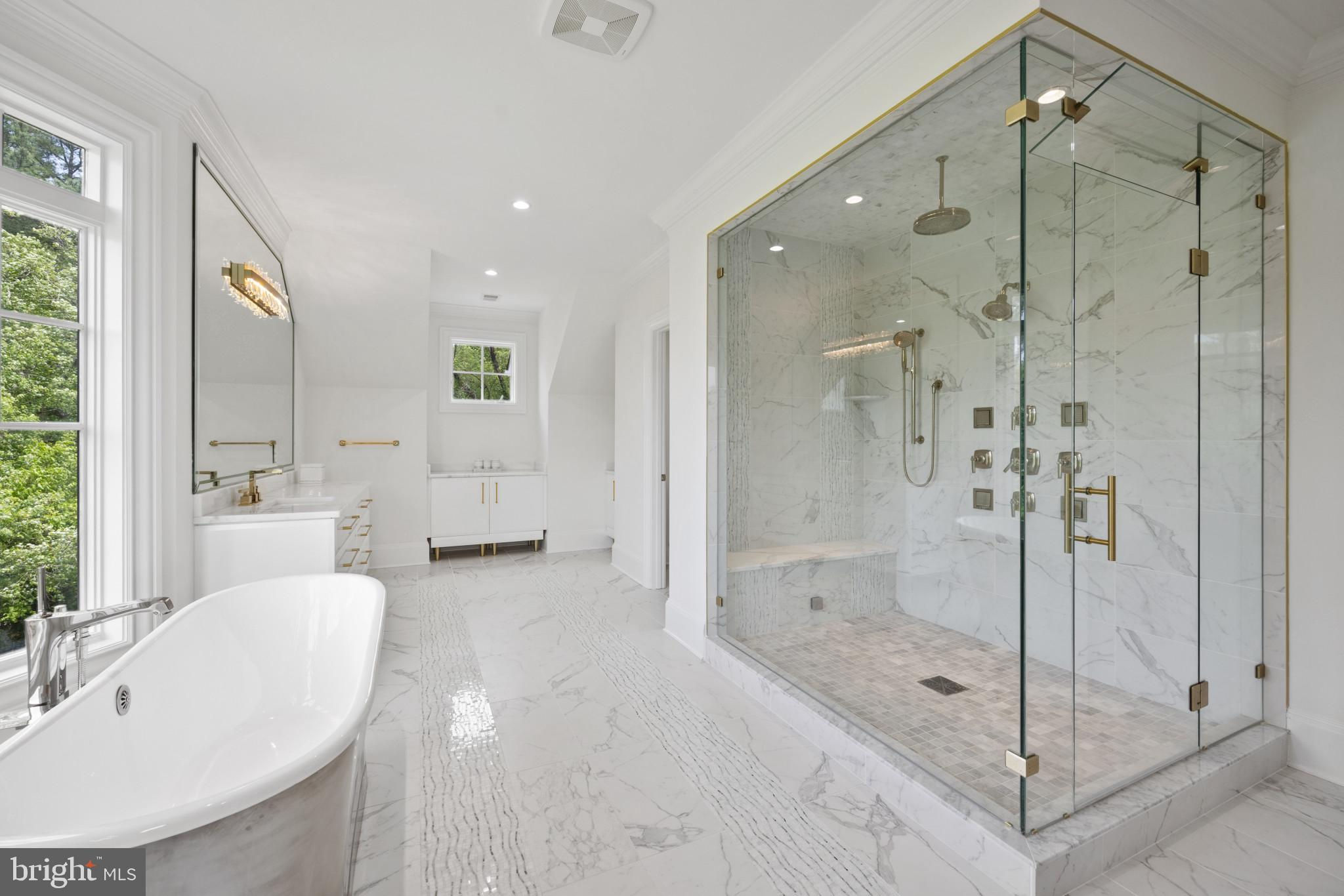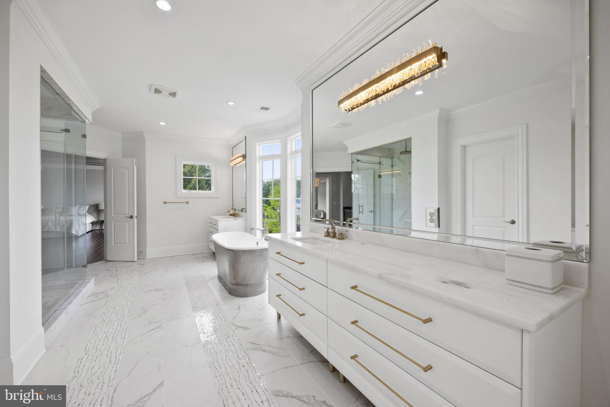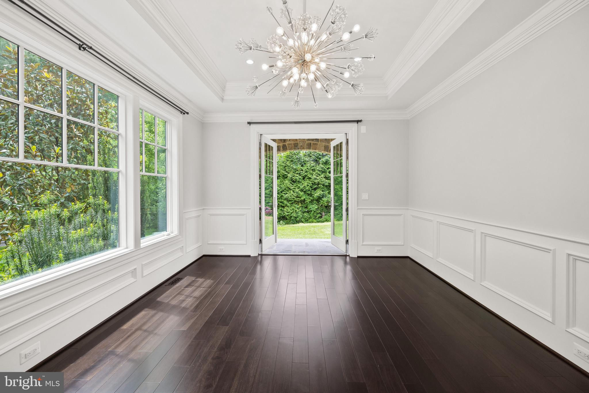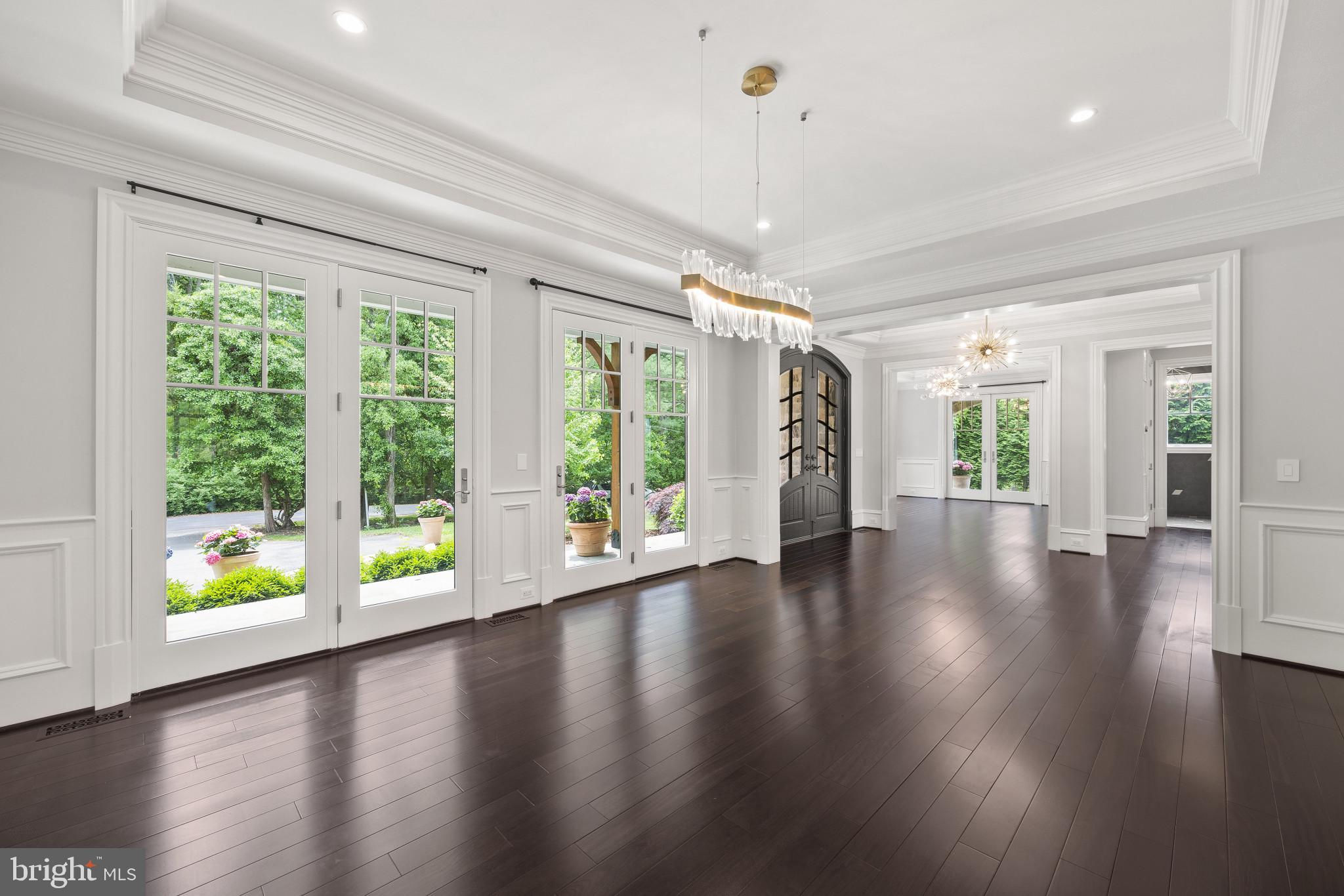 Presenting “Rosewood Estate” … magnificent in design and scale, this custom residence was built in 2022 by renowned builder American Majestic Construction and designed by the highly acclaimed award-winning architect James McDonald. This spectacular home spans an impressive 10,800 square feet, enveloping you in luxurious living adorned with the finest materials and bespoke designer finishes. As you arrive in the foyer through the beautiful custom French doors, you're greeted by a striking tray ceiling and stunning light fixtures, setting the tone for the grandeur within. The formal living and dining room offer access to the covered porch, perfect for outdoor entertaining. Adjacent to the dining room is a custom glass-enclosed wine showcase for your prized collection of over 300 bottles. The inviting family room exudes warmth with its stone fireplace, beamed ceiling, and open floorplan.. A chef's dream kitchen boasts custom cabinetry, a spacious center island with imported Italian marble countertops and backsplash along with top-of-the-line appliances including a dual Sub-Zero refrigerator and separate freezer, Wolf double oven, and beautiful La Cornue gas range. A cozy breakfast room leads to the covered terrace with a gas fireplace and access to the fenced yard overlooking lush rolling hills. Continuing on the main level reveals a convenient full-service catering kitchen, light-drenched study, an elevator accessing all 3 floors, and a generous main-level bedroom suite. Ascend to the upper level, where the owner's suite awaits, complete with a sitting room, balcony, gas fireplace, morning bar, and gorgeous luxurious bath with steam shower adorned with Italian marble and porcelain tile. Three additional ensuite bedrooms, a huge laundry room with extensive cabinetry, a cozy sitting room, and huge fitness room overlooking rolling hills complete this level. The lower level offers a stunning entertainment haven with a large media room featuring a projection system, quartz tiled accent wall with gas fireplace, a large wet bar with an exotic marble waterfall-edge countertop and a full-size Subzero refrigerator and microwave, a billiard room, a golf simulator, and additional bedroom with full bath! Outside, manicured grounds, flagstone patios, and walkways create a serene backdrop, while a three-car garage with pre-wiring for electric vehicles and a house generator add practicality to this exceptional home. Nestled in a prime location mere minutes from Tysons Corner, Great Falls Park, and major transportation routes including the Dulles Toll Road, I-495, I-66, and Leesburg Pike, this is where the utmost in convenience meets opulence.