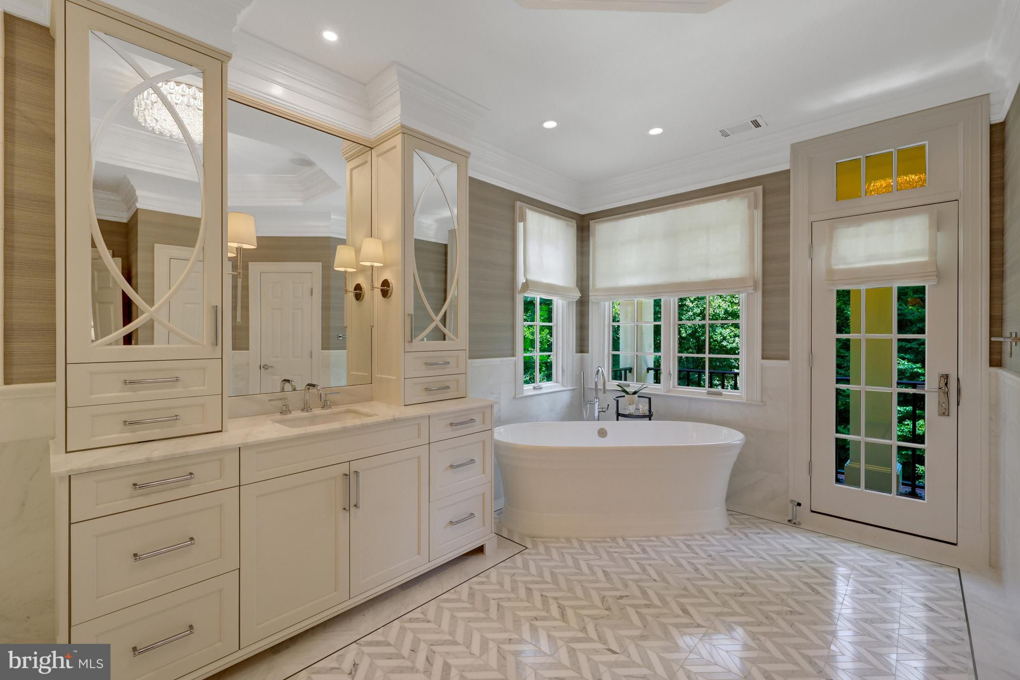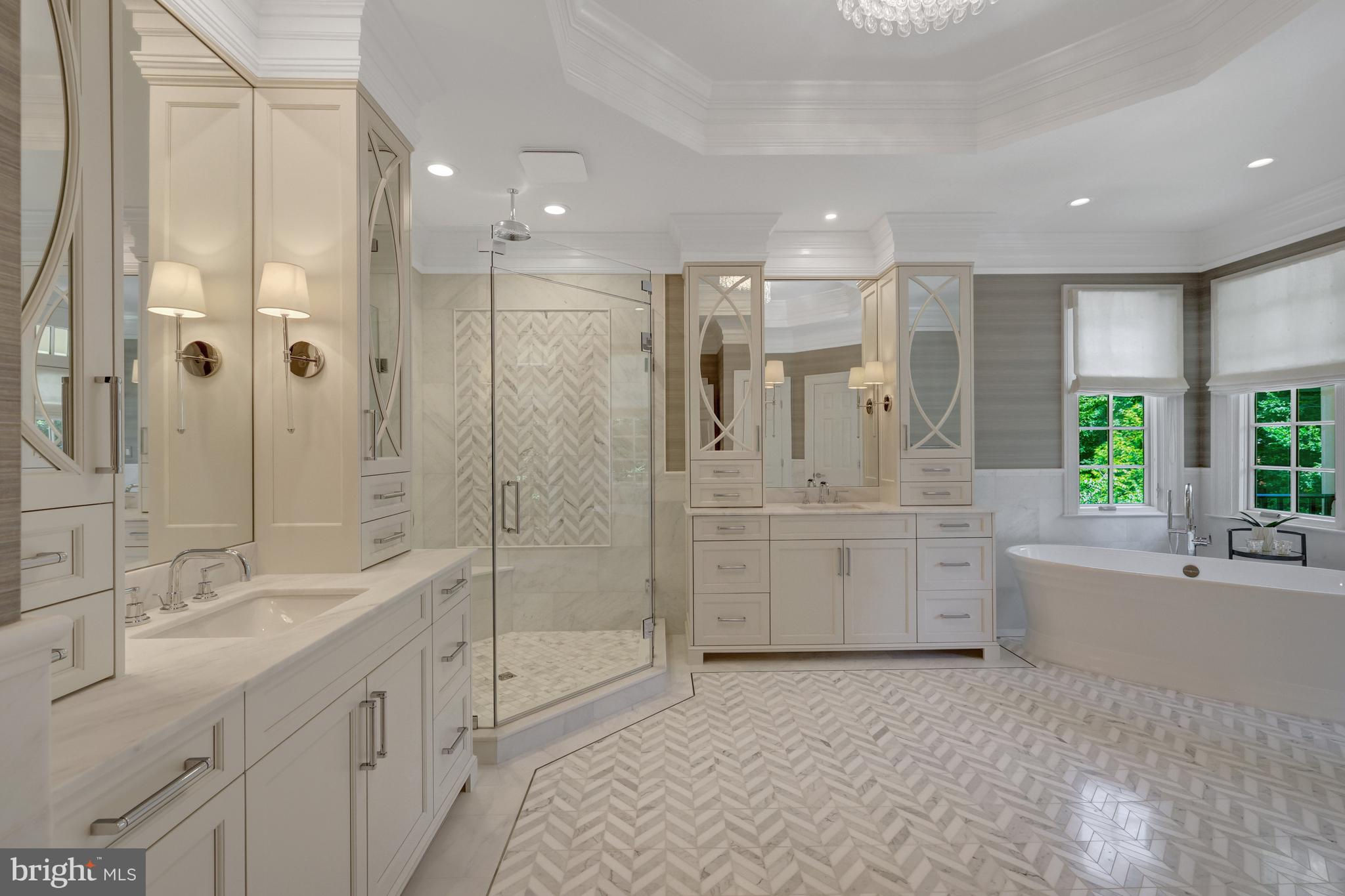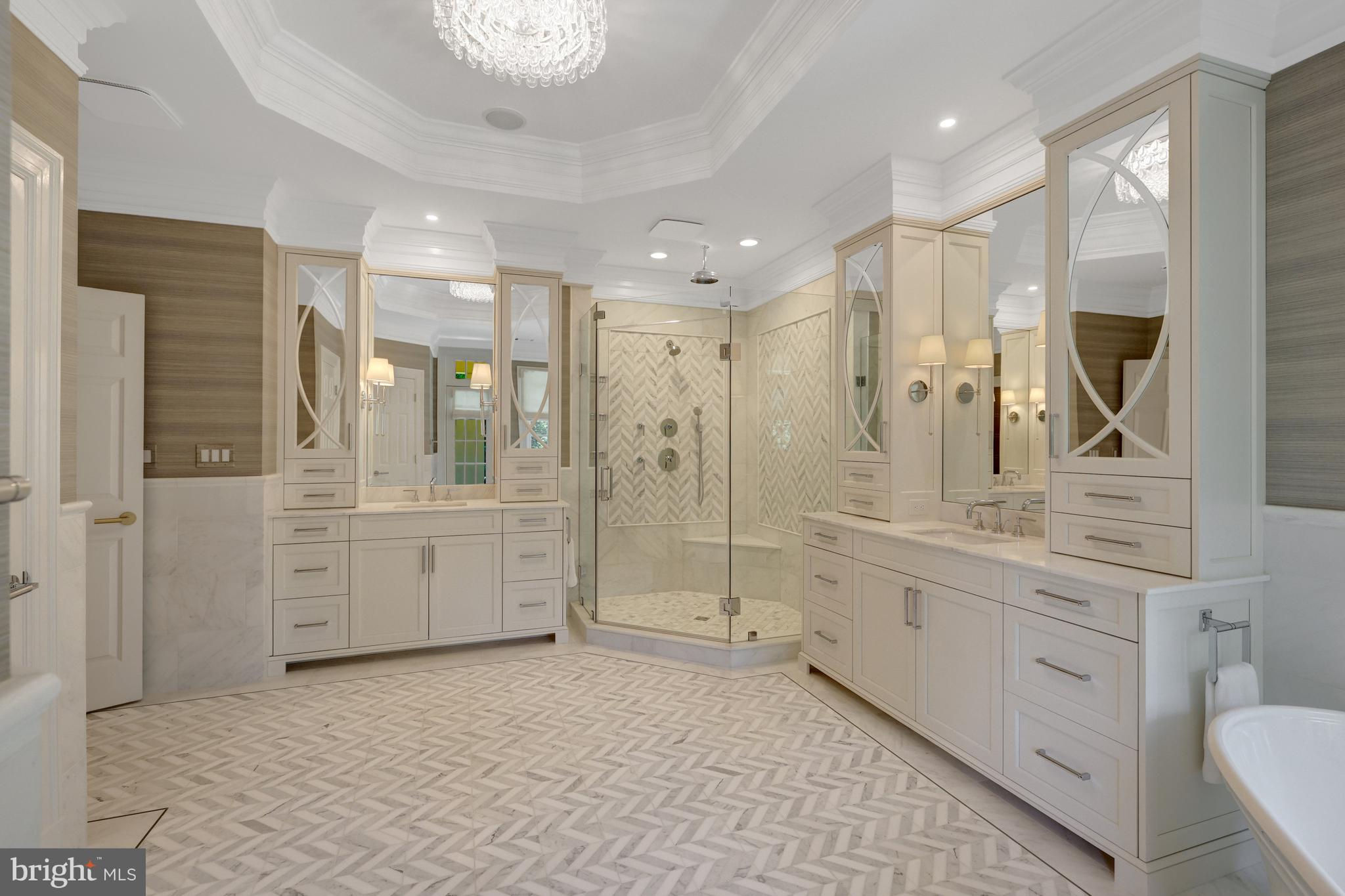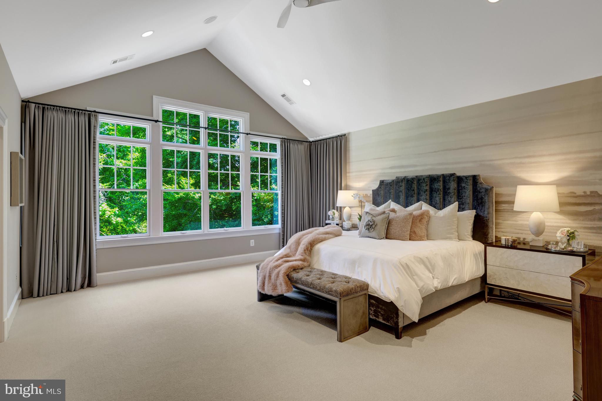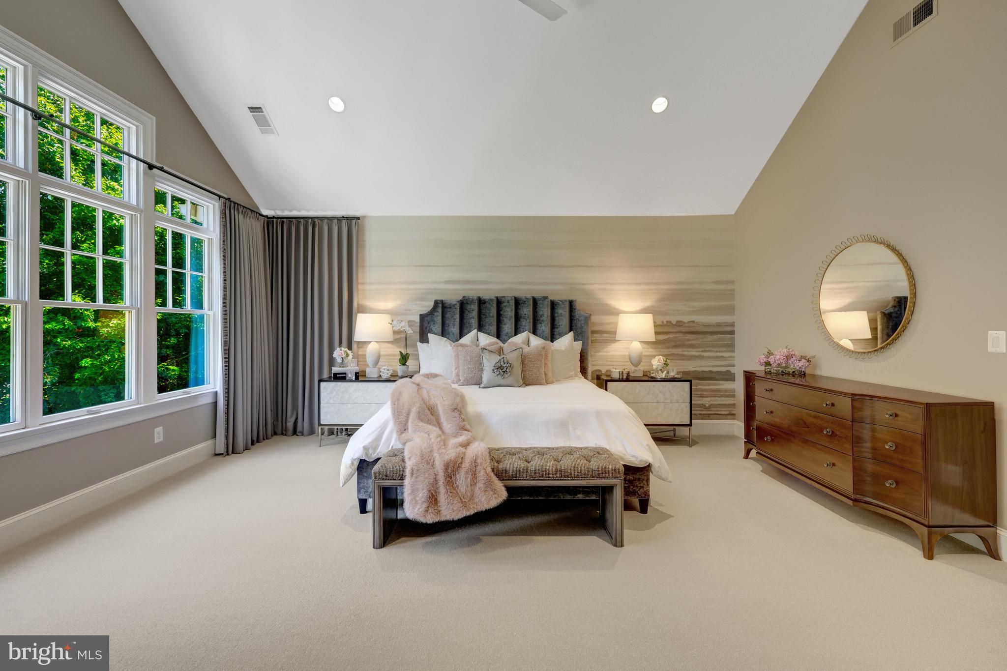 Welcome to 870 Alvermar Ridge Drive- Nestled within the prestigious, gated community of The Reserve, this extraordinary estate blends timeless architecture with modern sophistication. Custom-built by the renowned Ted Visnic, this one-of-a-kind home offers nearly 11,000 finished square feet of expertly crafted living space, loaded with high-end finishes and exquisite detailing throughout. Sited on just under an acre, the property enjoys expansive stone terraces, breathtaking views, and a private, wooded backdrop, creating a true sanctuary for both everyday living and grand entertaining. Interior Highlights: Step inside and experience remarkable attention to detail—from the rich walnut flooring to the custom millwork, arched doorways, and dramatic, light-filled windows. The main level offers a gourmet kitchen & breakfast room with a cozy stone fireplace, a handsome office, a private conservatory, a spacious family room with a coffered ceiling and a stone fireplace and a private main level bedroom/office and bath that lead to an inviting screened porch. French doors across the rear of the home lead to an expansive stone terrace overlooking the private rear yard. The upper level features a New Primary Suite with a private sitting room and fireplace, oversized closets and a new sumptuous bath. 5 additional bedrooms are on the upper level and 4 full baths. There is a fantastic, private guest suite & bath off the rear stairs. The walkout Lower Level is an entertainers dream. Features include a spacious recreation room, fully equipped media room/theatre, a new beautifully designed, 1,750 bottle, custom wine cellar, a full gym and a bonus room. French doors lead out to stone patios and the rear yard. This is a rare opportunity to own a custom Visnic estate in The Reserve—offering privacy, luxury, and exceptional design in one of McLean’s most sought-after communities.