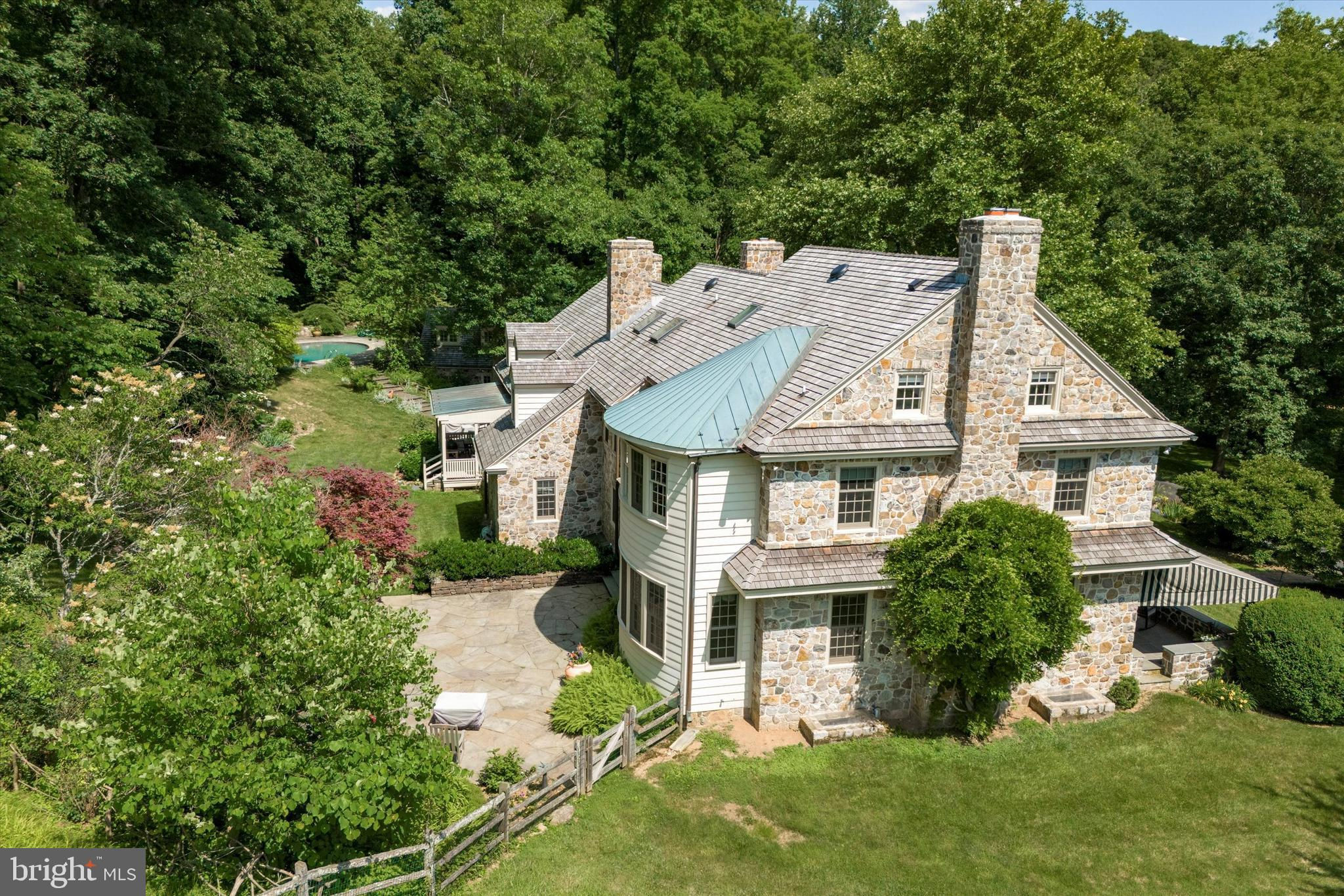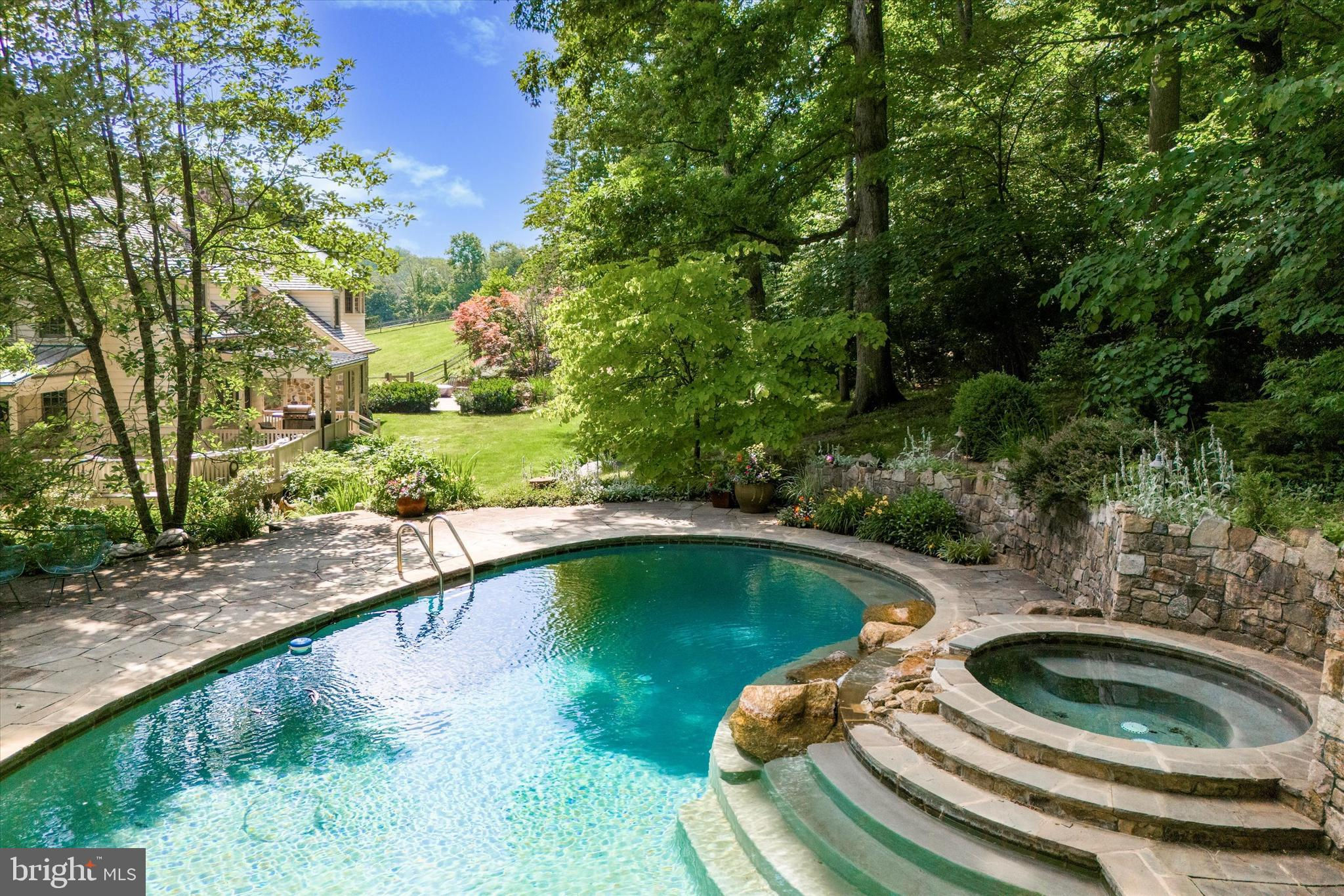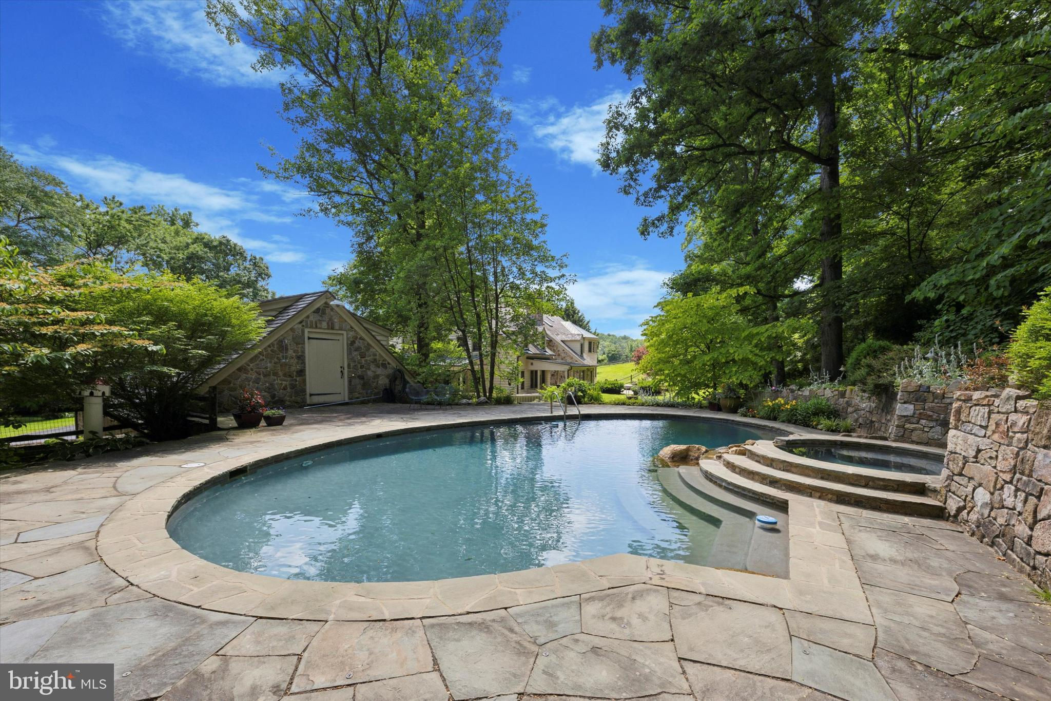 Turtle Rock Farm is a picturesque property spanning over 30 acres across 2 parcels. The centerpiece is the classic stone Colonial main house, designed by architect John Milner, and meticulously built in 1988 by Bob Legnini, the founder of RC Legnini Builders, as his primary residence. The grand first floor of this property showcases a formal living room perfect for entertaining, a formal dining room with wainscot and custom cabinetry, a spacious kitchen open to the family room, a pantry room suited for catered events, a dark wood-paneled office, and two powder rooms. Noteworthy features include a majestic center hall entrance, 6 wood burning Fireplaces, exquisite trim details, abundant closet space, Hardwood Floors, and seamless access to outdoor living areas. Moving to the second floor, you'll find a Master Bedroom with a luxurious en-suite Bathroom, 6 additional Bedrooms, and 2 full bathrooms, including a 2 Bedroom suite designed to pamper guests. The property boasts a pool with a spa, surrounded by beautiful stone walls, a flagstone patio, and a pool house/studio with a full bathroom and summer kitchen area. Outdoor entertaining spaces include a large front patio with an awning overlooking the pond and barn, a rear patio off the Center Hall Foyer, and a spacious wrap-around deck with roofed sections. Recent upgrades include a new cedar shake roof and windows throughout the main house. There are 5 garage spaces, with a 2-car detached garage next to the main house and 3 large garage bays in the barn building. The property features a stunning post-and-beam barn addition with a spectacular party room. The Barn building includes 5 horse stalls, a tack room, and a washroom. Multiple fenced pastures, turn-out sheds, a pond with a wood dock, and a scenic section of Ridley Creek winding through the lower section of the property further enhance the charm of this estate, which is under a conservation easement with the Brandywine Conservancy. Nestled among expansive farm properties within the conservancy, this property is situated in the sought-after Willistown Township and falls within the esteemed Great Valley School District. Just minutes away from the prestigious Radnor Hunt and the picturesque Willistown Rushton Farm and Preserve, this location offers a unique blend of convenience and tranquility. Additionally, it is adjacent to the scenic Willistown Okehocking Preserve, providing a serene natural setting for outdoor enthusiasts. Call today to schedule a private tour of this truly special property.