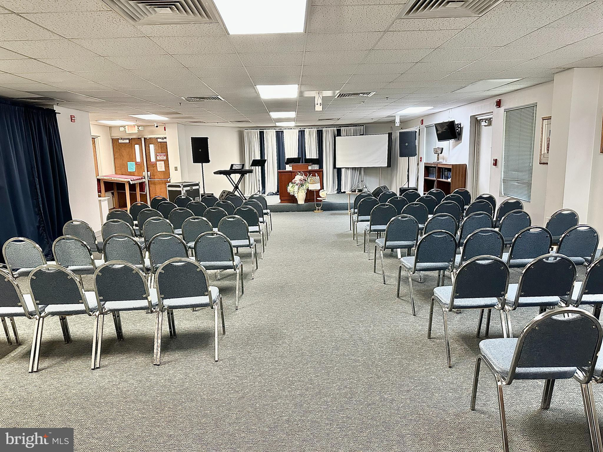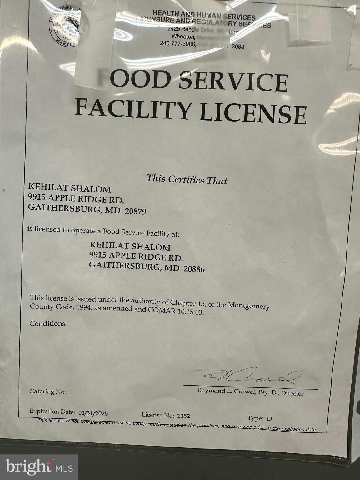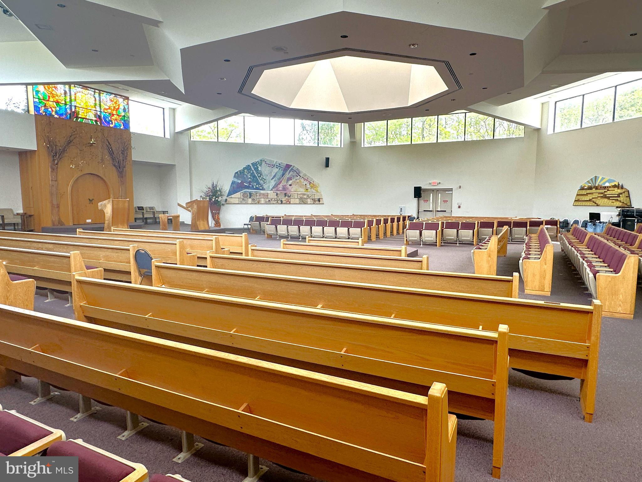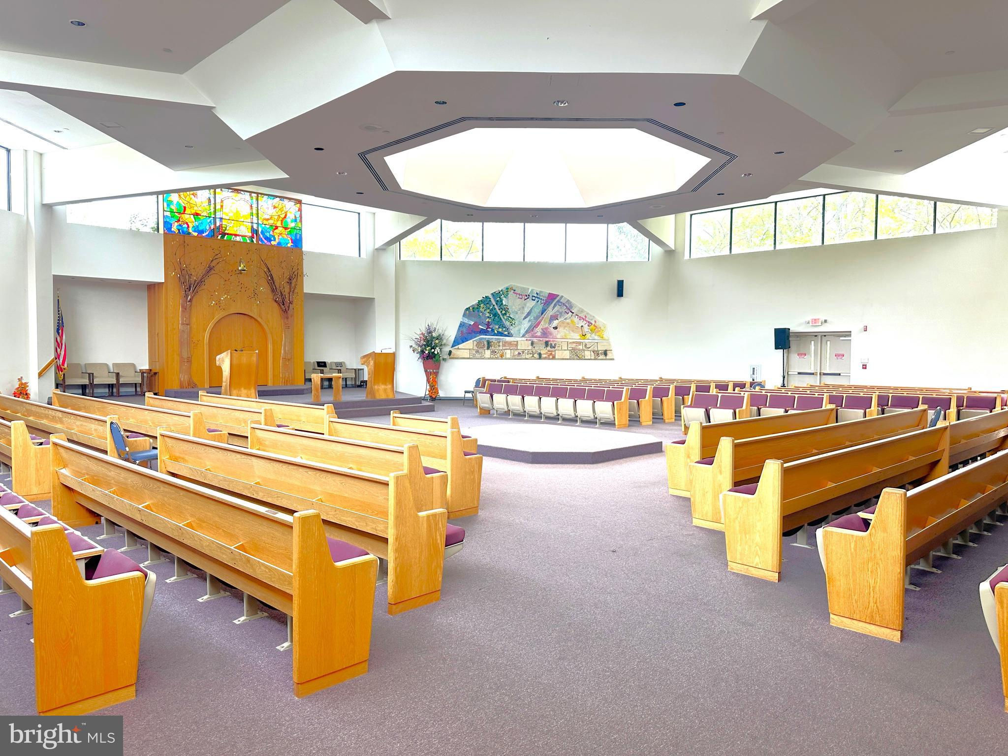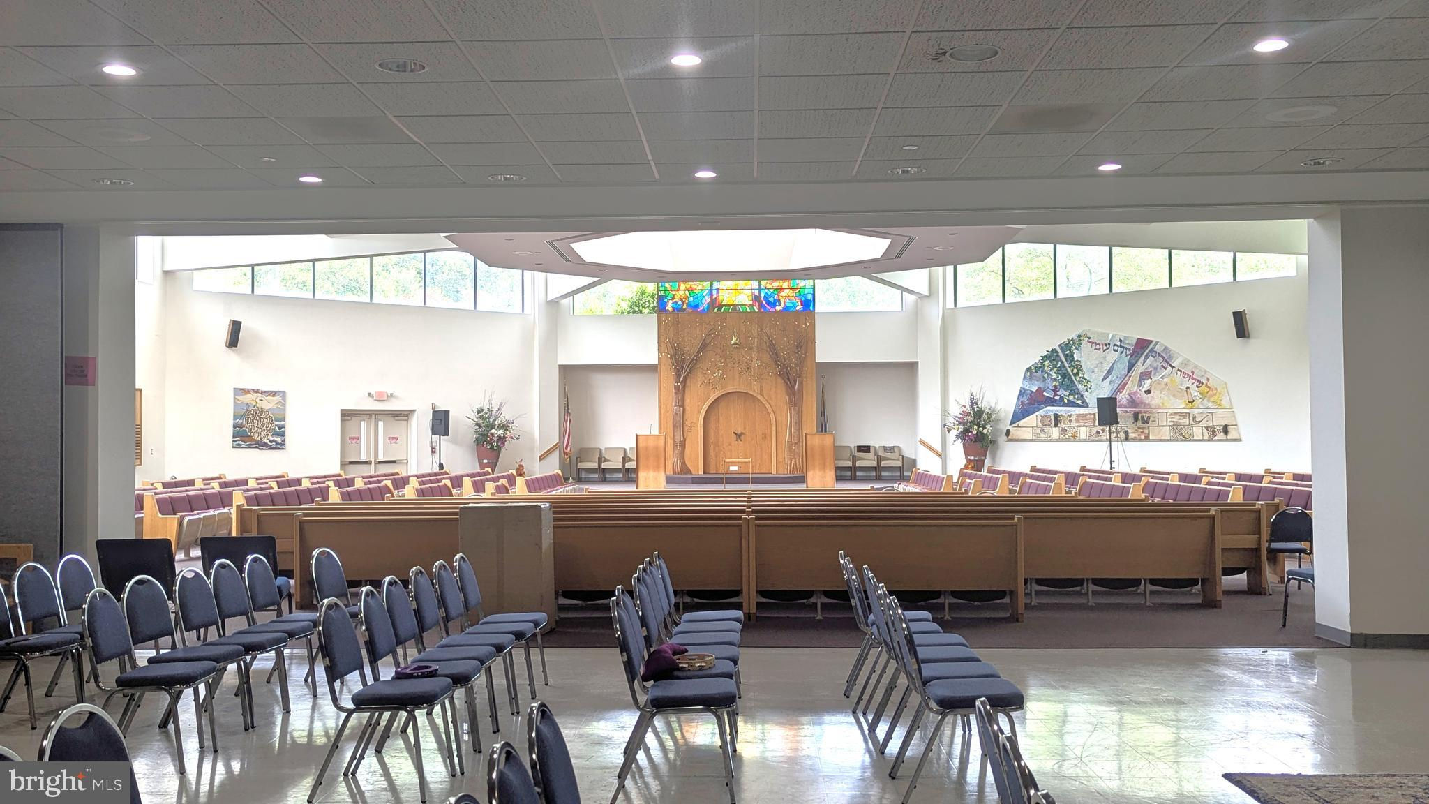 A rare opportunity to own a large religious complex in Montgomery County. The Kehilat Shalom synagogue is an ±18,423 SF complex, sitting on ±3 acres with 266 feet of frontage on Apple Ridge Rd. The complex was constructed in two phases. The first phase, 9153 SF, built in 1980, offers a porte cochere entrance, with security doors opening into a bright lobby, with decorative windows onto the reception desk and administrative offices. Also included is a spacious office ideal for leadership, and a large multi-purpose space with a room divider, currently configured as a chapel and conference room. Through the lobby is the social hall, kitchen, library, three classrooms, and restrooms. High ceilings and custom clerestory windows make the social hall a unique and attractive space for ministry and celebration. The fully-outfitted commercial kitchen can handle food prep for large functions, and includes a gas range, convection oven, plenty of preparation surface, and grease trap (the dishwasher requires repairs). There is also a loading dock with electrical hook-up for catering trucks. The roof has two elevated sections of architectural shingles that are in good condition, and the remaining lower areas were re-shingled in May, 2025. Phase two of the complex, built in 1991, comprises 9270 SF and offers a spacious sanctuary, entrance lobby, gift shop (currently used for storage), a multi-purpose space, and a large storage room. What makes this worship space extraordinary is its expandability. The sanctuary, as currently configured, seats 385 in stadium-style seating. To expand the sanctuary for another 183 seats, simply retract the room divider. To gain another 402 seats, retract the dividing wall to the social hall. At the height of its use, the sanctuary was regularly expanded to encompass the multi-purpose room and the social hall -- creating seating for nearly 1000. The complex includes a sprinkler system and a state-of-the-art system. The HVAC system is located on the roof and supplies electric central heat and air, along with supplemental window units (two of the roof units are not currently operational). The roof of phase two is a flat roof of 125 square TPO with recent repairs and a newer EPDM replacement over the entranceway. Electric comprises four 400-amp panels and one 225-amp panel. Parking is paved and striped for 98 vehicles, with several handicap-designated spots. (NB: there is a parking easement for the childcare facility next door.) The property is zoned R-200 (residential, with few commercial uses; house of worship permitted by right). The property is exempt religious; with water quality protection and solid waste taxes. Tenants are on a month-to-month basis. Some chattels will convey with the sale. The seller has its own LOI and closing agent. To be sold as is.