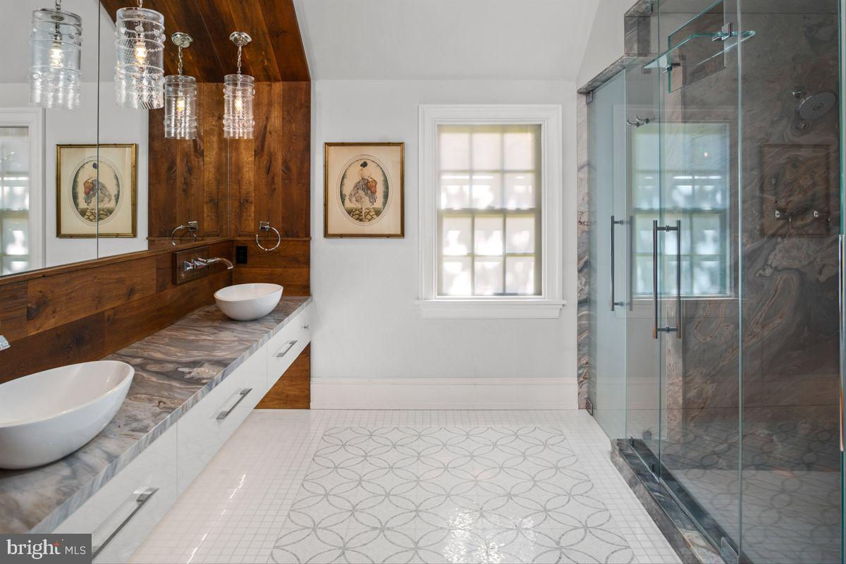 Exquisite 24 Acre Equestrian Estate – Ultimate Sanctuary of Luxury & Lifestyle. Discover serenity and prestige in this fully turnkey equestrian sanctuary nestled on 24 private acres adjacent to over 280 acres of permanently preserved land within Gwynedd Wildlife Preserve. With pond and arboretum vistas, lighted pickleball courts, spa amenities, and custom riding facilities, this bespoke property blends historic character with modern comfort—all just 45 minutes from Philadelphia and 90 minutes from New York City. Step through the doors of the 1742 main residence—meticulously restored and expanded with the finest craftsmanship. Here, rustic elegance meets luxury: exposed stone walls, original barn-beam ceilings, antique fireplaces, and deep-well windows anchor the historic charm, while a gourmet chef’s kitchen shines with quartzite countertops, built-in Thermador and Miele appliances, a zinc-topped bar, wine refrigeration, and electric appliance lifts. The master suite is your private retreat: a covered deck, dual walk-in closets, spa-style bath with soaking jacuzzi, Toto toilet, floating cabinetry, mosaic marble flooring, hand-blown light fixtures, and a Sunlighten far-infrared sauna. With Smart Glass windows, privacy is instantaneous. Three additional ensuite bedrooms include one with a private entrance and sitting room, ideal for extended family or staff. Interior comfort flows throughout via elevator or custom, iron staircase. A lower-level gym, powder room, and storage round out the luxurious layout. Equestrian excellence defines the grounds. The custom indoor arena (200′ x 86′) features Attwood dust-free footing, mirrored riding wall, heated wash stall, and 24 oversized, automated glass doors opening to the surrounding landscape. A climate-controlled tack/viewing room with kitchen and powder room adds convenience. The restored 200 year old bank barn with 6 large stalls, auxiliary ten-stall shed row, and four, fully fenced, expansive paddocks—including multiple run-in sheds, 150’ round pen, four 50 foot round pens, hayloft and storage—ensure your horses are housed in safety and style. Riding trails to nearly 300 preserved acres completes the equestrian experience. Additional structures enhance function and charm: a newly renovated guest cottage with 2 bedrooms and 2 baths, plus a caretaker’s home offering 3 bedrooms and 1.5 baths. Recreation includes two ultra-mat cushioned, lighted pickleball courts, a hot tub tucked beside a rustic spring house, stone patios and private deck with BBQ. Located moments from acclaimed public and private schools, country clubs, a private airport, and King of Prussia Mall, this estate enjoys low taxes and effortless access to major commuter routes. This is more than a home—it’s a curated lifestyle experience, combining an equestrian’s paradise, historical elegance, resort-style amenities, and cutting-edge smart home luxury in a setting of profound privacy. For the most discerning buyer who appreciates an offering with this caliber of design, location, and turnkey readiness.